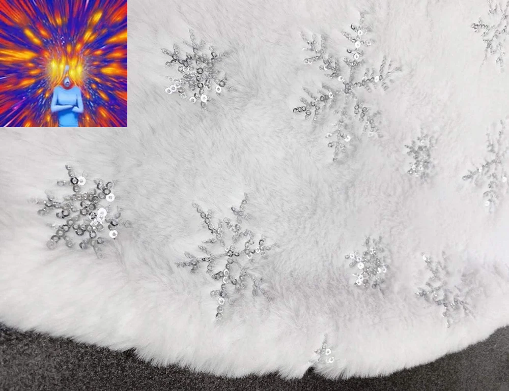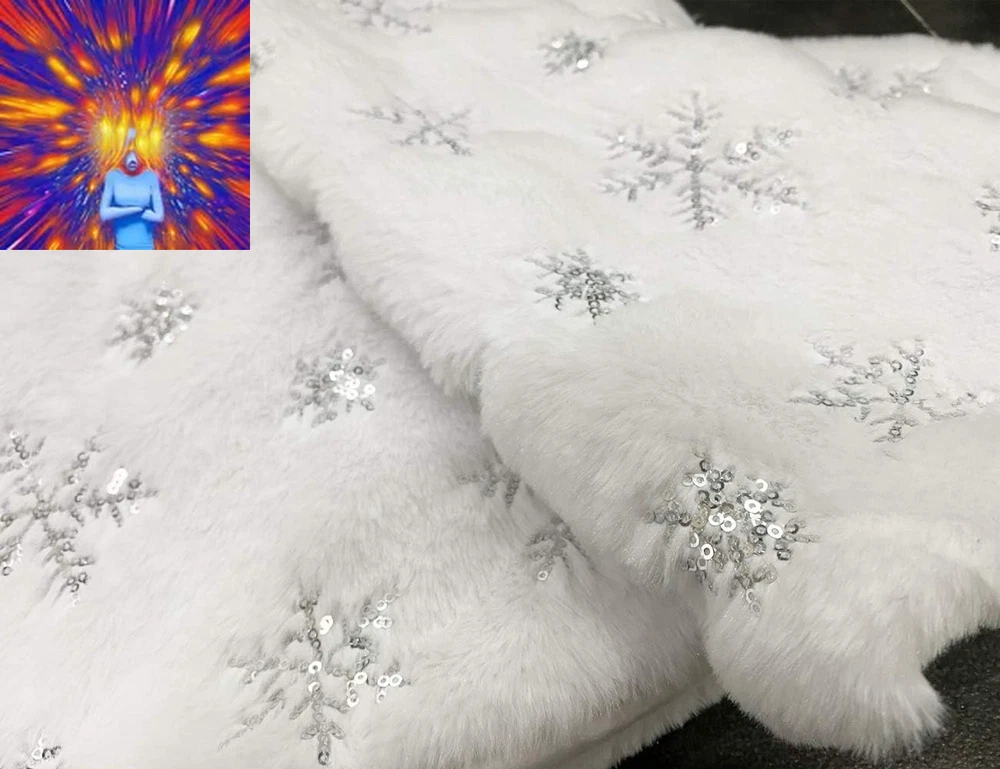 Fabric Type: Faux Fur,plush,sequin Pattern: Snowflakes Type: Does not apply Size: 48 Inch Item Diameter: 48 Inches Item Weight: 1.43 pounds Country of Origin: China Material: Faux Fur Closure Type: Hook And Loop Brand: Does not apply