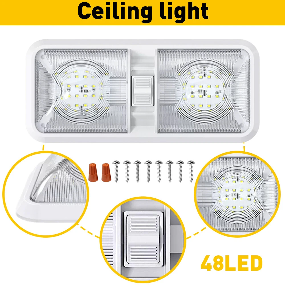 Specification: Material:PC LED: 48 LEDs(left+right) LED type:2835 SMD LED Voltage:11-18V Color temperature:4000-4500K Lumen:600LM Waterproof IP: IP67 Service life:50000h+ Features: *High-brightness and Comfortable Light Source The LED lighting lamp with three gears switch to control has built-in 48 high-quality LED chips, you can easily perform indoor work at night. *Simple installation Easy installation, Low power consumption. *IP67 waterproof Prevent from water, snow, moisture, rusting and dust, don't worry about leak inside problem. *Gears Control 48 LED RV Camper Ceiling WHITE Rounded Light Door Catch Compartment latch Holder Specification: Material:PC LED: 48 LEDs(left+right) LED type:2835 SMD LED Voltage:11-18V Color temperature:4000-4500K Lumen:600LM Waterproof IP: IP67 Service life:50000h+ Features: *High-brightness and Comfortable Light Source The LED lighting lamp with three gears switch to control has built-in 48 high-quality LED chips, you can easily perform indoor work at night. *Simple installation Easy installation, Low power consumption. *IP67 waterproof Prevent from water, snow, moisture, rusting and dust, don't worry about leak inside problem. *Gears Control Independent switch control can make it easy to open and close at any time. Gears description: Built in 3-way switch (to use one or both sides of light fixture) Gear 1:One side on Gear 2:light off Gear 3:Two sides on *Application It is widely used as perfect replacement light for Car/RV/Trailer/Camper/Motorhomes/Marine Boats.. Packaging include: Dome light *1 Item Specifics Quantity 1 California Prop 65 Warning High Quality Custom Bundle Yes Country/Region of Manufacture United States Material PC LEDS 48 Life 50000 h Led Type 2835 SMD LED Waterproof IP67 Manufacturer Part Number LLK-DRCTH-W5 Volt 11-18V Brand Unbranded Warranty 2 Year Part Type Accessories FAQ ♥ If you have a decoding problem or any other problems, please contact us first, we will help you with it. We will reply you within 24 hours in working days. I'm a new seller, thanks a lot for your trust and convince! I will serve you with all my heart. ♥ Q1: Will this bulb fit my vehicle? A: We can match almost any vehicle to one of our bulb sizes. eBay only lets us include some vehicle fitments per listing, but if your vehicle does not show up on the compatibility table at the top of our listings, welcome you to contact us for free consulation before purchasing a product. Q2: My item has not arrived, what's taking so long? A: Sometimes items take longer than expected, especially if it’s going far or to rural area. Check with your post office to see if your item has been held up. Sometimes Royal Mail will not update a tracking number until it has arrived at its destination. If your item still don't arrive after a few days, let us know so we can double check for you and help solve it asap. Q3: My bulbs won't fit, help! A: Special bulb holder may be required. See if you can take the holder from the stock bulb. If not, let us know. The bulb size may be wrong, double check the item you received with the item you ordered. Do you have an aftermarket lighting housing? These may not be perfectly fitted for aftermarket bulbs and will require some manual modifications. Q4: Neither side lighting up? Both sides flicker, hyper flash, or work inconsistantly. A:Check the light fuses, and then check the ballast plugs to insure correct installation. If this doesn't work, there may be a voltage problem with the vehicle. You probably just need a relay or capacitor. Even though some bulbs are builtin resistors, they may still need a decoder. Pay & Ship (1). We gladly accepts payment via PayPal, We will ship your item(s) within 24 hours. (2). Before payment, please keep the consistency of Paypal address and ebay address. (3). Quantity orders are welcome! Returns (1). We offer 60 days free return policy. Please contact us within 60 days from the date you receive your order if you have any issues with the product or want return. Refund will be send after we got your resend package. (2). All returned items should be in the original packaging , return tracking information should be provided . Contact Us (1).Negative feedback will not help resolve any problems you have, please contact us via eBay messages before leaving negative feedback , our customer service will make best effort to help you with the issues. (2).We maintain high standards of excellenceand strive for 100% customer satisfaction! Feedback is very important to us. We request that you contact us immediately before you give us neutral or negative feedback, so that we can satisfactorily address your concerns. About us We're professional in car and motorcycle accessories, especially in LED bulbs. We have our own factory and R&D team. Our belief is to sell top quality items that fit your car and serve you with our heart. Anything please feel free to contact us! Our customer service is very responsibility. Come and follow us! DESCRIPTION NEW ARRIVED HOT SALE CONTACT US SAVE US Store Category Store Home Other Hot Item 10'' 15 LED Red Trailer Sealed Truck RV Stop Tail Rear Brake Turn Light Bar CN USD 12.99 2x 12 Terminal Block Bus Bar & Cover 12V Distribution Bus Bar Auto Boat Power USD 37.19 2x 6" LED Sealed Tail Reverse Signal Running Lights for Trailer Truck Tractors USD 21.99 1X Black 9-Pins Switch Mirror For Chevrolet GMC Car Auto Accessories Perfect Fit USD 12.99 Master Switch Window Power Driver Side 12pin/21pin For Jeep Liberty Nitro Journe USD 26.99 New List Item 12V Terminal Block Bus Bar & 2x 12 Cover Distribution Bus Bar Auto Boat Power USD 17.99 RV LED 12v CEILING FIXTURE DOUBLE DOME LIGHT For CAMPER TRAILER RV MARINE Frost USD 15.99 42 LED Green 316 Stainless Steel Underwater Boat Marine Transom Lights Pontoon USD 21.99 RV 12v Interior light w/switch Frosted DOUBLE DOME Trailer Camper Marine IP67 USD 15.99 Upgraded Thetford Aqua Magic V Toilet Water Valve For Replacement RV Part# 31705 USD 16.99 Picture 48 LE