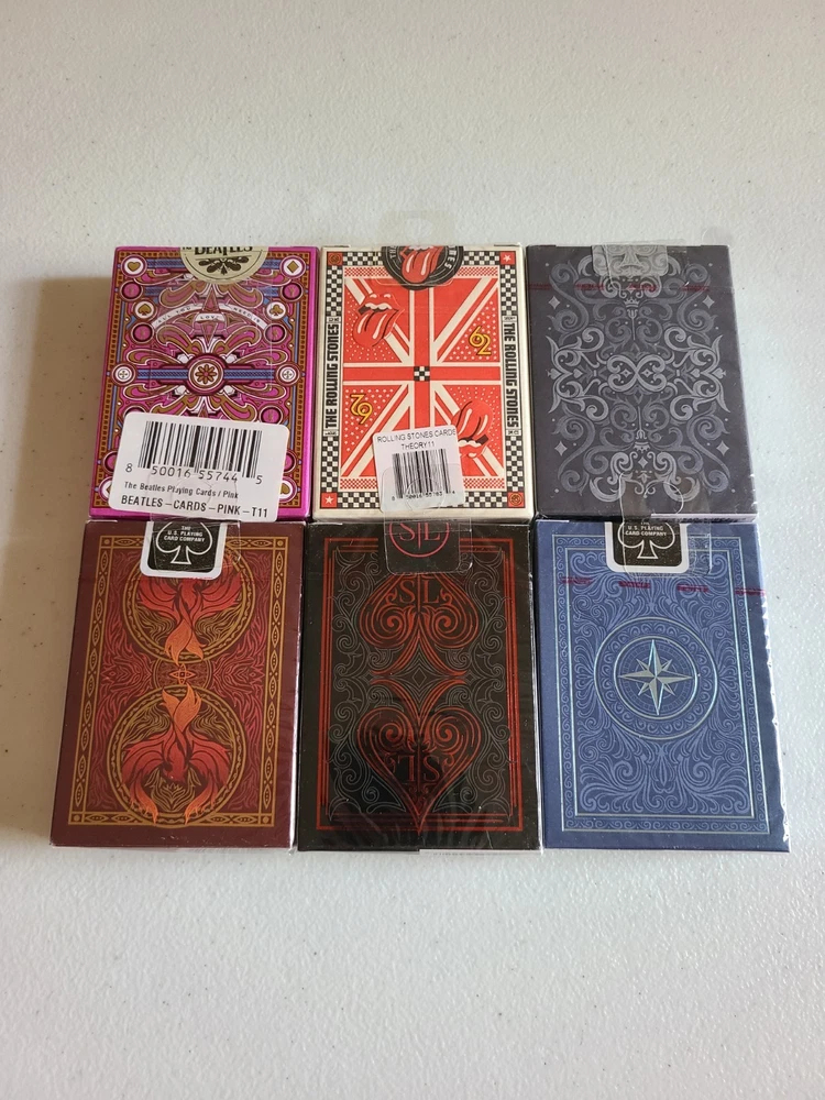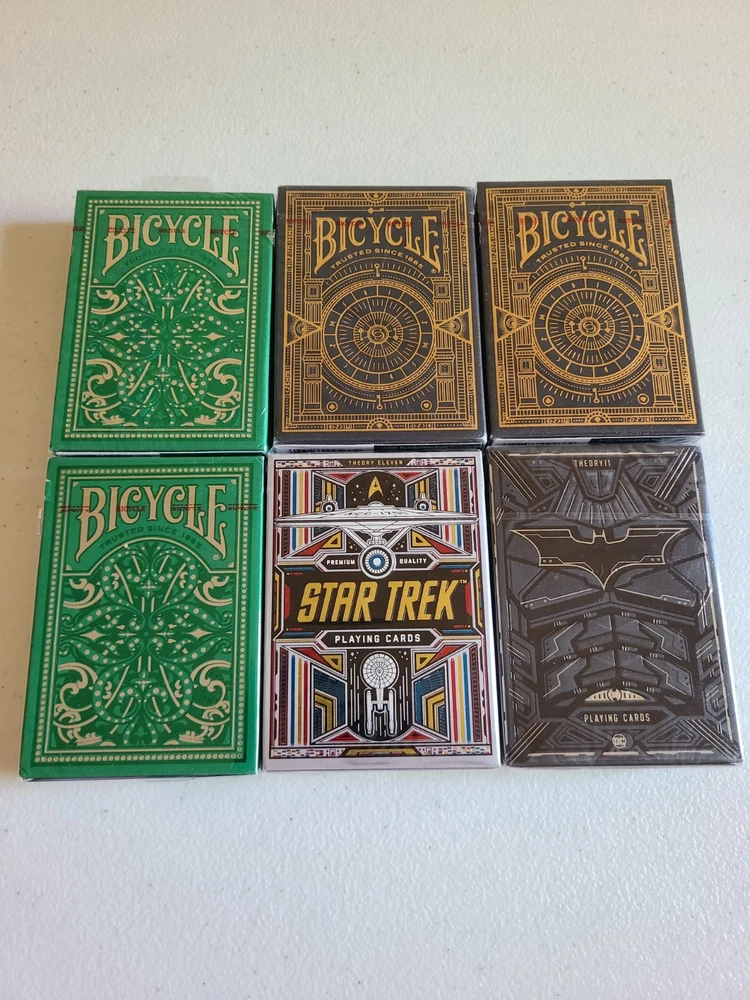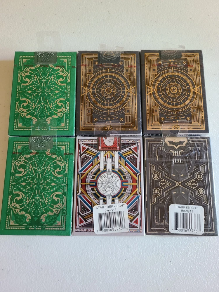 This product is a lot of 48 new and sealed playing cards from Bicycle and Theory11, as well as an extra pack. The cards are perfect for collectors or anyone looking to add some extra decks to their collection. The set includes high-quality playing cards that are ideal for card games and are sure to be a great addition to any card lover's collection. The seal is torn of a little on the Extra Pack, as shown in the pictures above.