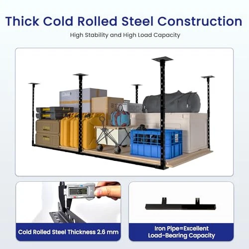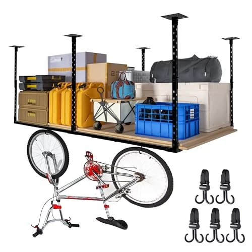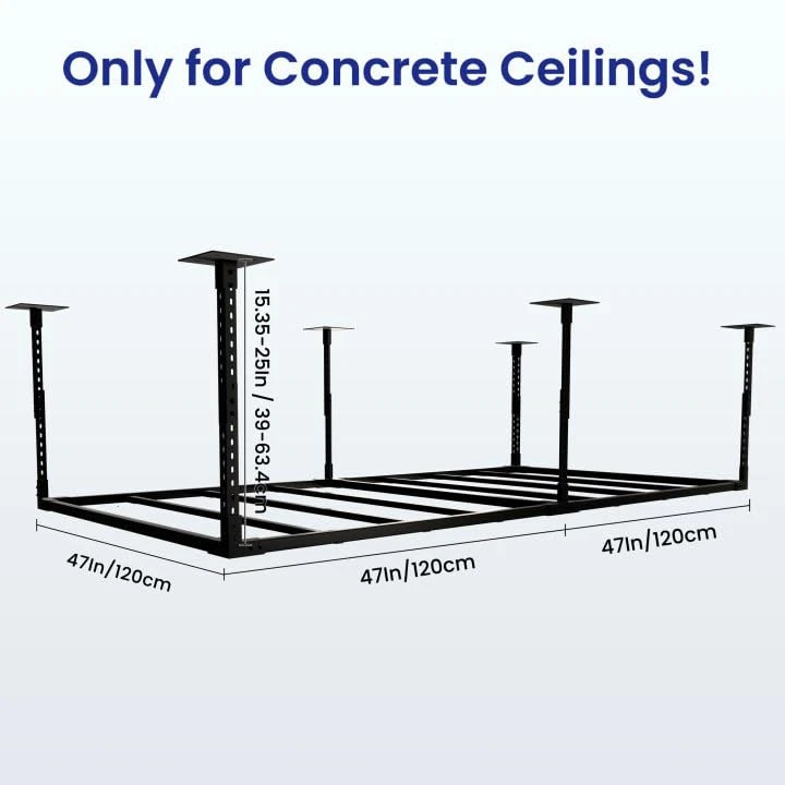 Return Policy Fast Delivery Trusted seller 4×8' Overhead Garage Storage Rack, Adjustable Garage Ceiling Storage Racks, Heavy Duty Garage Shelving, Garage Hanging Storage Racks with A Load Capacity of up to 1320 Lbs, Black. (Bottomless) Product Description Long-Term . LARGE SPACE FOR EASY ORGANISATION: Utilize overhead space to free up valuable floor area in your garage, creating more room for vehicles, workspaces, or additional storage.15"to 31"ceiling dropdown provides up to 81 cu.ft of storage. Dimensions: 94.4 in. L x 48.0 in. W x 15-31 in. H. (Five hooks for free) HIGH-STRENGTH AND HEAVY-DUTY: Built with industrial-grade steel and the connector features an innovative, patented design that provides a more stable frame structure than other products, with a maximum load capacity of 1,320 pounds. STRUCTURALLY SAFE AND RELIABLE: 2.6mm thick angle iron as the load bearing support, and the bottom frame uses 1.6mm square tubes. After testing, 5 fixed columns and internal reinforcing columns enhance stability, effectively preventing shaking and deformation. The exterior is sprayed with plastic, and the surface has excellent rust prevention and scratch resistance. EASY ASSEMBLY, BUILT FOR CONVENIENCE: Our hanging storage racks for garage has a simplified installation structure, perfect for storing cluttered items. Just finish drilling the holes after positioning the auxiliary paper and complete the assembly in sequence with the installation steps in the manual. NOTE: Only for Concrete Ceilings; Wooden ceilings please buy with caution! Shipping Returns Payment Shipping Shipping is FREE to all addresses other than APO/PO boxes in the lower 48 states. All our stock ships from US-based warehouses. Shipped via USPS or UPS (depending on location and package weight) Unless stated otherwise, all orders will ship within 24-72 hours of your payment being processed. Check our feedback to see the great reviews of FAST shipping we offer. Returns Seller does not accept returns Payment We currently accept payment via eBay managed payments only. Once payment is cleared, we will dispatch your shipment within 1-3 business days. Please refer to the "Shipping" tab for more information regarding shipping speed to your destination.