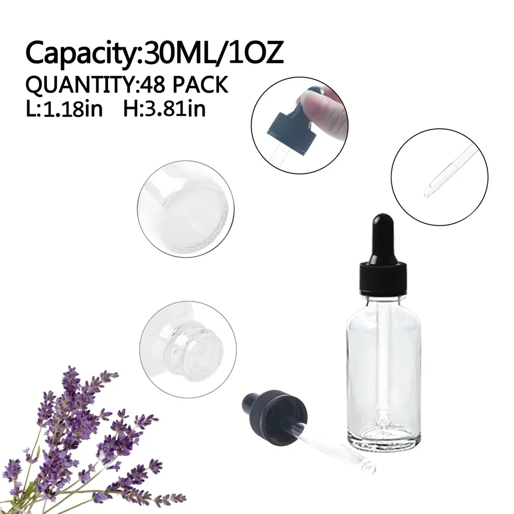 48 Pack 1oz Clear Glass Dropper Bottles, Eye Dropper Bottles with Glass Dropp...