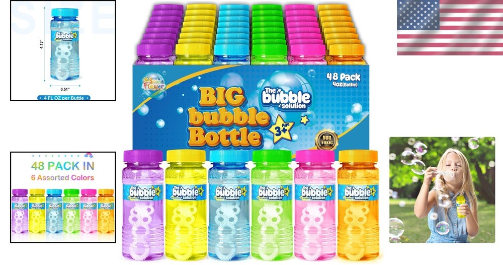 48 Pcs Bubble Bottles with Wands – Joyful Outdoor & Indoor Kids Activities ‹ › ‹ › ‹ › ‹ › ‹ › ‹ › ‹ › ‹ › ‹ › 48 Pcs Bubble Bottles with Wands Joyful Outdoor & Indoor Kids Activities Product Highlights: Super Value Bubble Bulk: Includes 48 bottles of bubble solution, each 4 oz, in 6 vibrant colors: orange, blue, purple, yellow, pink, and green. Wholesome Activity: Encourages kids to play while developing motor skills and hand-eye coordination as they chase bubbles. Unique Design: Features a protective film to prevent leaks and a double helix cap design for easy use. The bottle dimensions are 4.3 x 1.9 inches, perfectly sized for little hands. High Quality and Safe: Made with non-toxic soap lye that produces durable bubbles; completely safe for children's skin and face. Best Choice for Party Favor: Perfect for birthday parties, carnivals, family gatherings, and any themed celebrations, providing endless fun. Why Choose Our Bubble Bottles? Every child is captivated by the sheer magic of bubbles. Our 48 Pcs Bubble Bottles with Wands offer not just refreshments for the senses but an opportunity for growth through play. Each bottle bursts with vibrant color, enticing children to join in the fun of outdoor adventures or indoor festivities. With thoughtfully designed bottles that minimize leaks and are easy for little ones to handle, the joy of bubbles is always within . You can confidently gift these bubble solutions at any event, knowing they are crafted from safe, high-quality materials perfect for kids’ enjoyment. Add a sprinkle of joy and a touch of whimsy to your next celebration with our unique bubble bottles. Let the bubbles drift away, carrying with them the essence of childhood delight - order your set now! Shipping Free & Fast Shipping - We offer free shipping to most of the USA with a normal delivery time of 3-7 days. However, due to the current situation, additional delivery time (up to 3 weeks) may be required for some items. Alternative Carriers - We may use alternative carriers (e.g. USPS, FedEx, UPS, etc.) to ensure your package arrives safely and on time. Due to the use of multiple carriers, we are unable to provide a tracking number automatically. Handling Time - Orders are processed and shipped within 1-2 business days of receiving cleared payment. Shipping Restrictions - Shipping to Alaska, Hawaii, Puerto Rico, Guam, and other US territories may incur shipping charges or delivery restrictions. Please contact us before ordering, or your order can be refunded/cancelled. State Restrictions - There may be restrictions based on your state of purchase. For example, certain items may not be shipped to California due to state regulations. Contact for Tracking Updates - If you require tracking updates or have any concerns about the delivery of your order, please feel free to contact us, and we will be happy to assist you. Return 30-Day Hassle-Free Returns - We want you to be completely satisfied with your purchase. If you are not, you can return the item within 30 days of receiving it for a full refund or exchange. Easy Return Process - To start a return, simply contact us and we will provide you with a prepaid return shipping label and detailed instructions. Restocking Fee - There are no restocking fees for returns. However, the buyer is responsible for return shipping costs if the return is not due to a seller's error. Refund Processing Time - Refunds will be processed within 5 business days of receiving the returned item in its condition. Payment We accept all major credit cards, PayPal, and Apple Pay for your convenience. Your payment information is secure and encrypted to ensure a safe and seamless transaction. Please complete your payment within 3 days of purchase to avoid any delays in shipping. Feedback Your feedback is extremely important to us. We strive to provide the best products and customer service possible. If you are satisfied with your purchase, please take a moment to leave us a positive review. If you have any concerns or issues with your order, please contact us before leaving negative feedback. We are committed to resolving any problems and ensuring your satisfaction. Contact Us If you have any questions or concerns, please feel free to out to our customer support team. You can contact us through the eBay messaging system. We are available Monday to Friday, 9:00 am to 5:00 pm EST, and we will do our best to respond to your inquiry within 24 hours. Buy it now and enjoy a pleasant shopping experience! Unit Quantity: 48.0 count Material: Plastic,Soap Lye Character: Bubble Bottles Party Favors Features: Decorative,Bubble Solution,Wand Included,Non-toxic,Child Safe,Colorful Design,Portable,Easy to Hold,Protective Film,Double Helix Cap,Durable Bubbles Type: Bubbles Occasion: Birthday Theme: Bubble Color: Multicolor Style: 48 pack Origin: Not Specified