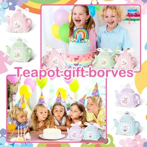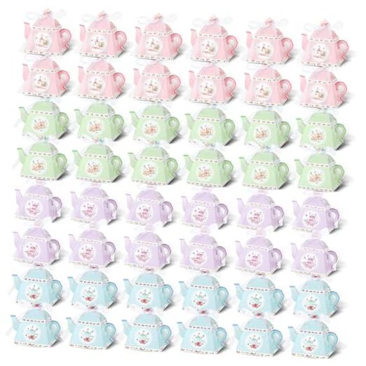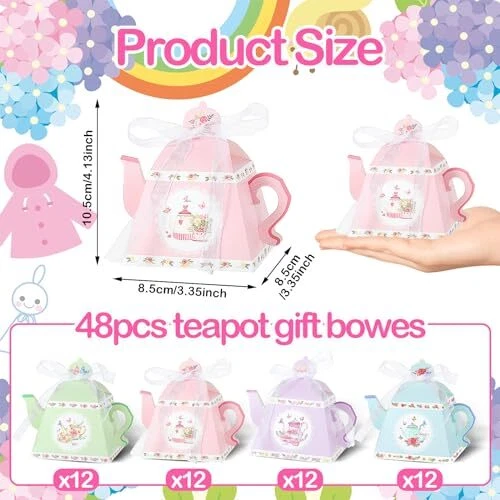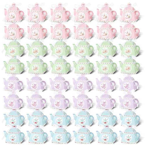 Return Policy Fast Delivery Trusted seller 48 Pcs Tea Party Favor Boxes Vintage Floral Teapot Box Flower Tea Party Gift Boxes Teapot Candy Box Tea Party Decorations for Tea Time Garden Wedding Product Description Package content: you will receive 48 pieces of tea party gift box, t are four colors light blue, pink , purple, green, 12 pieces of each color, enough to decorate your party; the box is a lovely teapot shape with red flowers, green leaves and gold patterns, elegant and stylish Proper Size: the paper floral teapot is about 4.1 x 3.35 x 3.35 inches, cute and small; Tea Time floral themed party gift boxes can be matched with party favors or small gifts such as chocolates, cookies, sweets, snacks, cupcakes and more Reliable Material: our paper teapots for tea parties are made of quality white paper board, innoxious and safe to use, strong and reliable, not easy to break, fade or deform; The box is printed with pretty vintage flowers, bright and cheerful in colors, adding a lot of color to your party Easy Assembly: our tea party favors are foldable and can be easily assembled, press the side, then flat pack for easy storage when not in use, reusable; Simply fold and attach the prefolded label to assemble Widely Applied: these teapot shaped party favors boxes are good for most of your parties, including girls' birthdays, birthday parties, festivals, flower tea themed parties, afternoon tea parties, bridal showers, weddings, family gatherings, baby showers, anniversaries; Distinctive and exquisite design will make your gift stand out Shipping Returns Payment Shipping Shipping is FREE to all addresses other than APO/PO boxes in the lower 48 states. All our stock ships from US-based warehouses. Shipped via USPS or UPS (depending on location and package weight) Unless stated otherwise, all orders will ship within 24-72 hours of your payment being processed. Check our feedback to see the great reviews of FAST shipping we offer. Returns Seller does not accept returns Payment We currently accept payment via eBay managed payments only. Once payment is cleared, we will dispatch your shipment within 1-3 business days. Please refer to the "Shipping" tab for more information regarding shipping speed to your destination.
