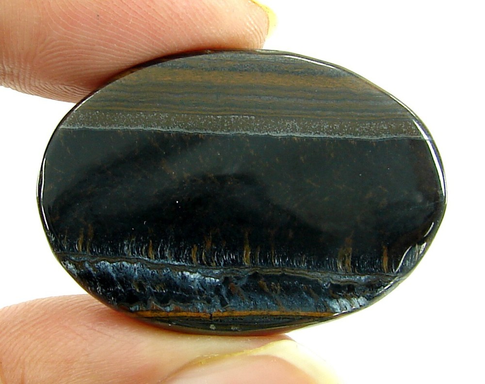 This stunning 48.25 ct black tiger eye cabochon is absolutely mesmerizing! The deep, rich bands of gold and black create a hypnotic effect, perfect for wire-wrapping or jewelry-making. While lighting may slightly alter its appearance, the stone’s natural luster and smooth polish shine through beautifully. Shipping was fast, and the quality matches the photos—definitely worth adding to any gem collection!