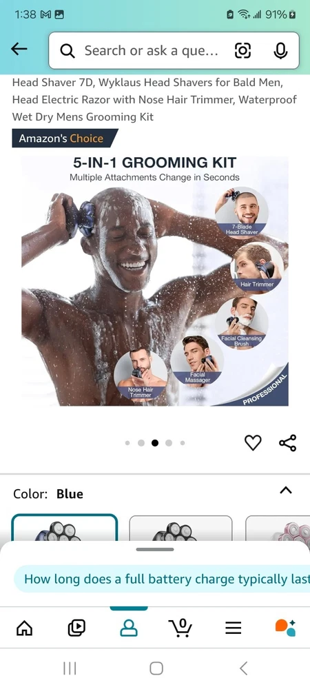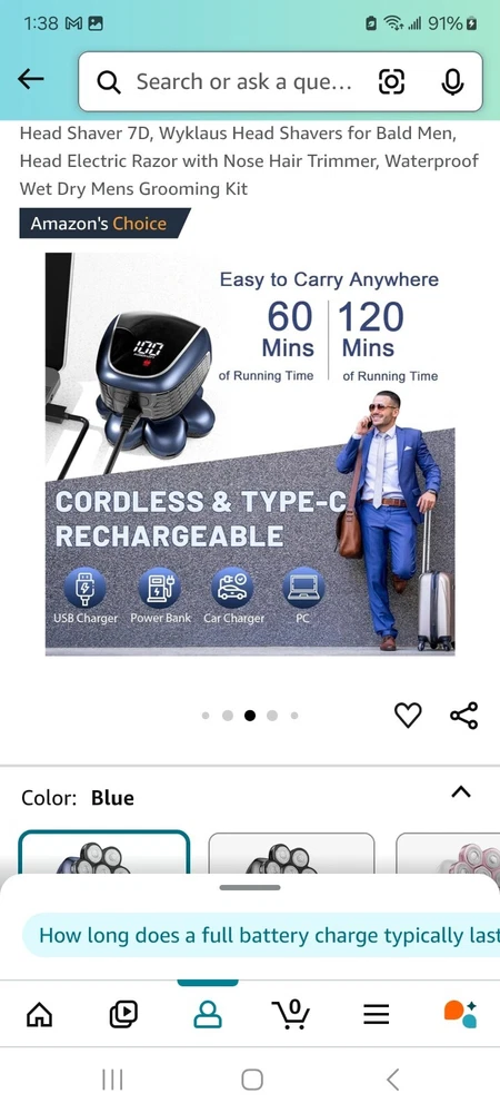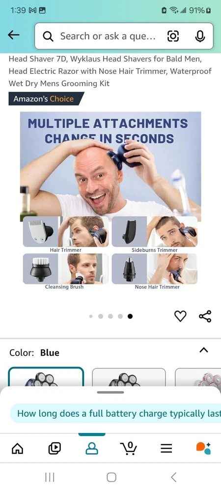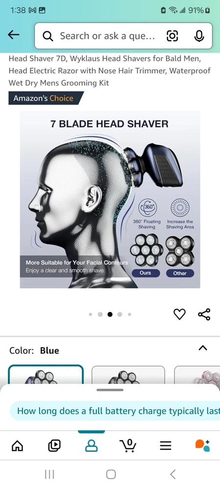 Head Type:5 Head RotaryModel:7DBrand:HEADType:Multi-Function ShaverNumber of Heads:7Department:MenFeatures:Waterproof, Rechargeable, CordlessColor:Blue