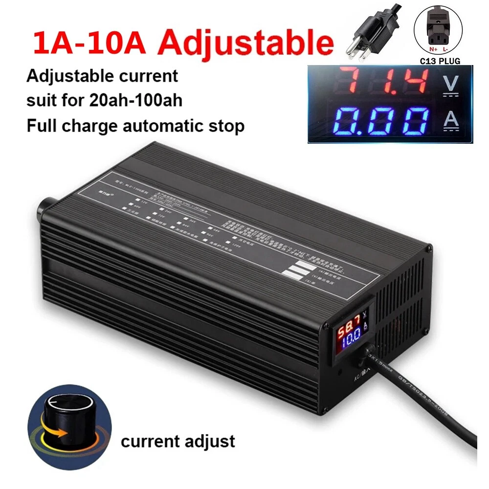 48/60/72V Li-ion Lifepo4 Lithium Battery Fast Charger Current Adjustable 1A-10A