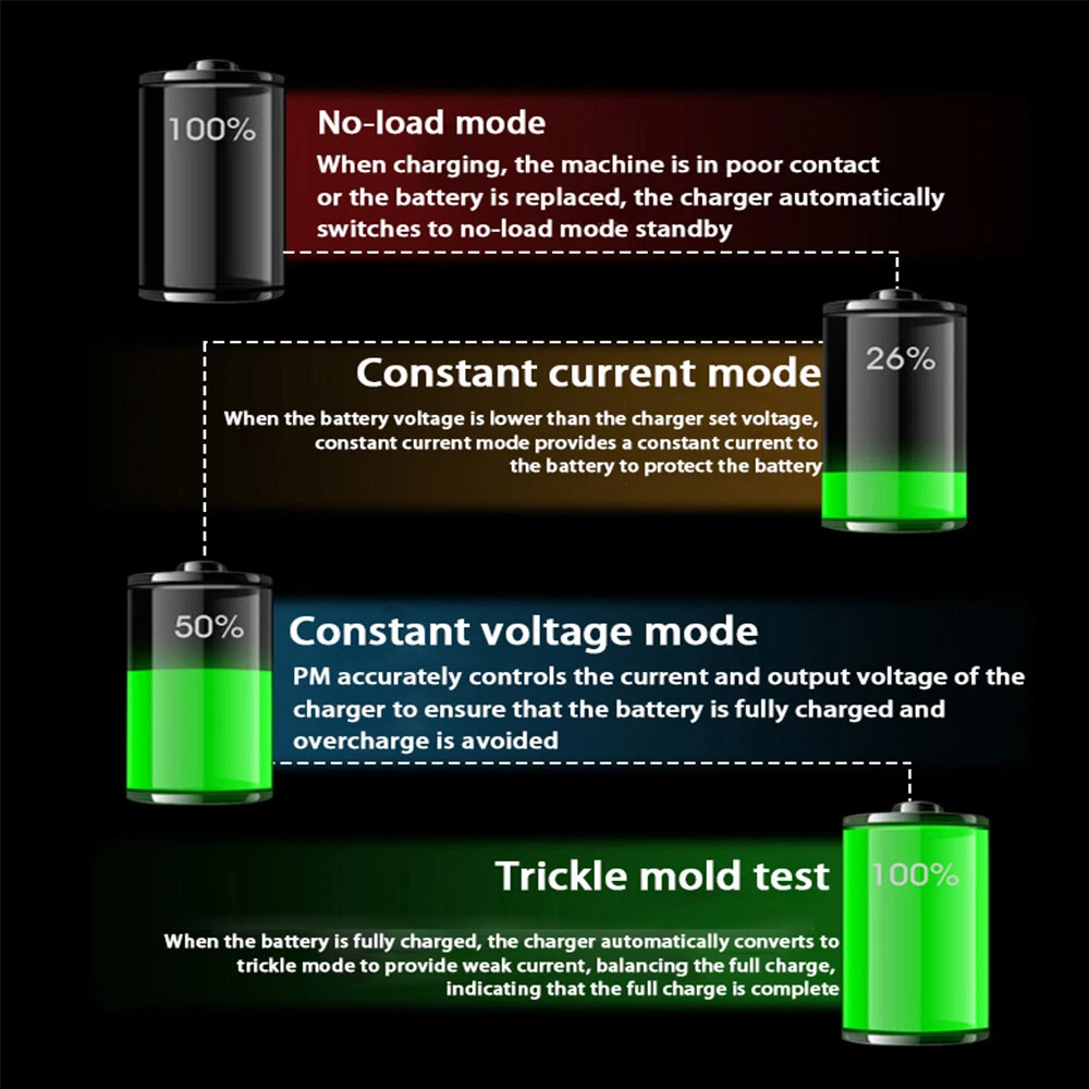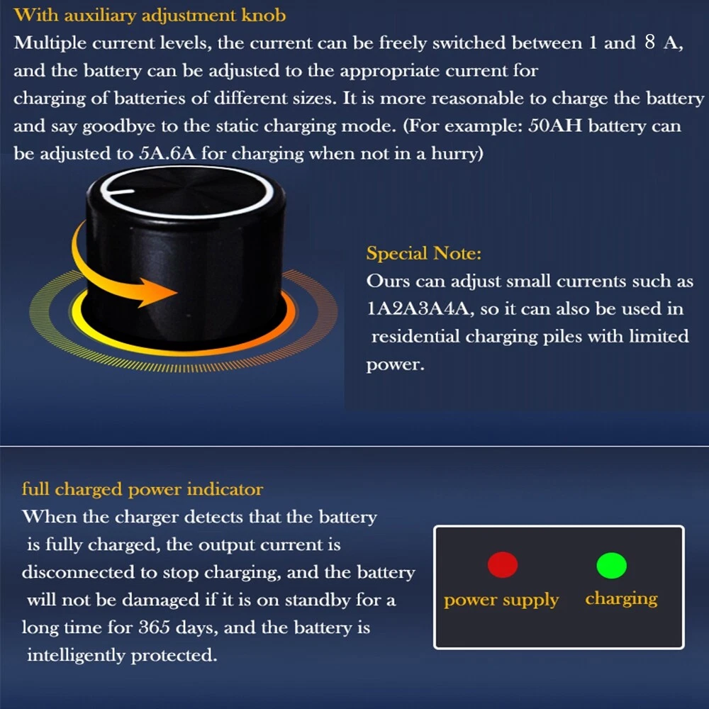Product Description 48/60/72V Li-ion Lifepo4 Lithium Battery Fast Charger Current Adjustable 1A-10A Specification: Item model number: MLC-1300-6 Input cable length: 1.5 meters Output cable length: 0.75 meters Input voltage: AC/110V/120V Peak Power: 1000W Output current: The current can be adjusted between 1 and 10A Applicable battery: ternary lithium battery or lithium iron phosphate battery Applicable battery capacity: capacity between 10ah-100ah Aluminum shell size: 225*125*68mm Some of the above parameters are manual surveying and mapping, there will be certain errors, and the actual product shall prevail Built-in 8 independent protection functions to fully protect the charger and battery: Extremely fast charging, overvoltage protection, overcurrent protection, overcharge protection, full self-stop, anti-reverse protection, short circuit protection, balance function note : if you need other voltage or current , contact us ~ 200V-240V country can't use this charger. Package includes: 1*10A Lithium Battery Charger About Us Payment Shipping Returns Contact Us We are a professional chinese wholesale company. We supply many products including Consumer Electronics, Home & Garden, Health & Beauty, Apple accessories, Computers accessories, Car accessories, Clothing accessories, Sports & Outdoor Accessories. We have competitive prices and fast delivery. We accept Credit Card, Debit Card and eCheck payments through PayPal. Payment should be done within 7 days after the end of the Auction. Otherwise Unpaid Item Dispute will be filed with eBay. eCheck payments take 3 to 7 business days to clear through PayPal. International Buyers Please Note: a) Import duties, taxes and charges are not included in the item price or shipping charges. These charges are the buyer's responsibility. b) Please check with your country's customs office to determine what these additional costs will be prior to bidding/buying. Please list your special requests (color, packages, etc.) in the PAYPAL NOTES SECTION when you make payment. We ship items to your PayPal confirmed address only. Please make sure your address in PayPal is matched with your shipping address before you pay. We are unable to take any responsibility for wrong address, any custom delay or tax. Transit time is highly depended and provided by Postal Service. All items will be dispatched within 10 business day after receipt of payment. Please notice that orders placed on weekends and public holidays will be dispatched on the next working day. It may take longer to other countries or remote areas. If you have not received your shipment within 30 days from payment, please contact us. We will track the shipment and get back to you. We back our products with a 30-DAY Return GUARANTEE. Customers should inspect item(s) and notify us within 30 days of any problems. If you have a problem with your item, please contact us before leaving feedback. All items being returned must be issued an RMA number BEFORE they are returned. 12 months Warranty from the date of purchase covering manufacturing defects. This warranty excludes any damage caused by the user. Return shipping is to be paid by the Buyer. If you have any questions, please feel free to contact us via eBay message, we will reply within 24 hours on weekdays. f you can not find the model you need in our listings, please contact us, maybe we can help you! If you are satisfied with our product, please give us a positive feedback. About Us We are a professional chinese wholesale company. We supply many products including Consumer Electronics, Home & Garden, Health & Beauty, Apple accessories, Computers accessories, Car accessories, Clothing accessories, Sports & Outdoor Accessories. We have competitive prices and fast delivery. Payment We accept Credit Card, Debit Card and eCheck payments through PayPal. Payment should be done within 7 days after the end of the Auction. Otherwise Unpaid Item Dispute will be filed with eBay. eCheck payments take 3 to 7 business days to clear through PayPal. International Buyers Please Note: a) Import duties, taxes and charges are not included in the item price or shipping charges. These charges are the buyer's responsibility. b) Please check with your country's customs office to determine what these additional costs will be prior to bidding/buying. Please list your special requests (color, packages, etc.) in the PAYPAL NOTES SECTION when you make payment. Shipping We ship items to your PayPal confirmed address only. Please make sure your address in PayPal is matched with your shipping address before you pay. We are unable to take any responsibility for wrong address, any custom delay or tax. Transit time is highly depended and provided by Postal Service. All items will be dispatched within 10 business day after receipt of payment. Please notice that orders placed on weekends and public holidays will be dispatched on the next working day. It may take longer to other countries or remote areas. If you have not received your shipment within 30 days from payment, please contact us. We will track the shipment and get back to you. Returns We back our products with a 30-DAY Return GUARANTEE. Customers should inspect item(s) and notify us within 30 days of any problems. If you have a problem with your item, please contact us before leaving feedback. All items being returned must be issued an RMA number BEFORE they are returned. 12 months Warranty from the date of purchase covering manufacturing defects. This warranty excludes any damage caused by the user. Return shipping is to be paid by the Buyer. Contact Us If you have any questions, please feel free to contact us via eBay message, we will reply within 24 hours on weekdays. f you can not find the model you need in our listings, please contact us, maybe we can help you! If you are satisfied with our product, please give us a positive feedback. powered by You may also like 12V 3S 7P 40A Li-ion Battery Pack DIY Kits Case Holder for 18650 Pow