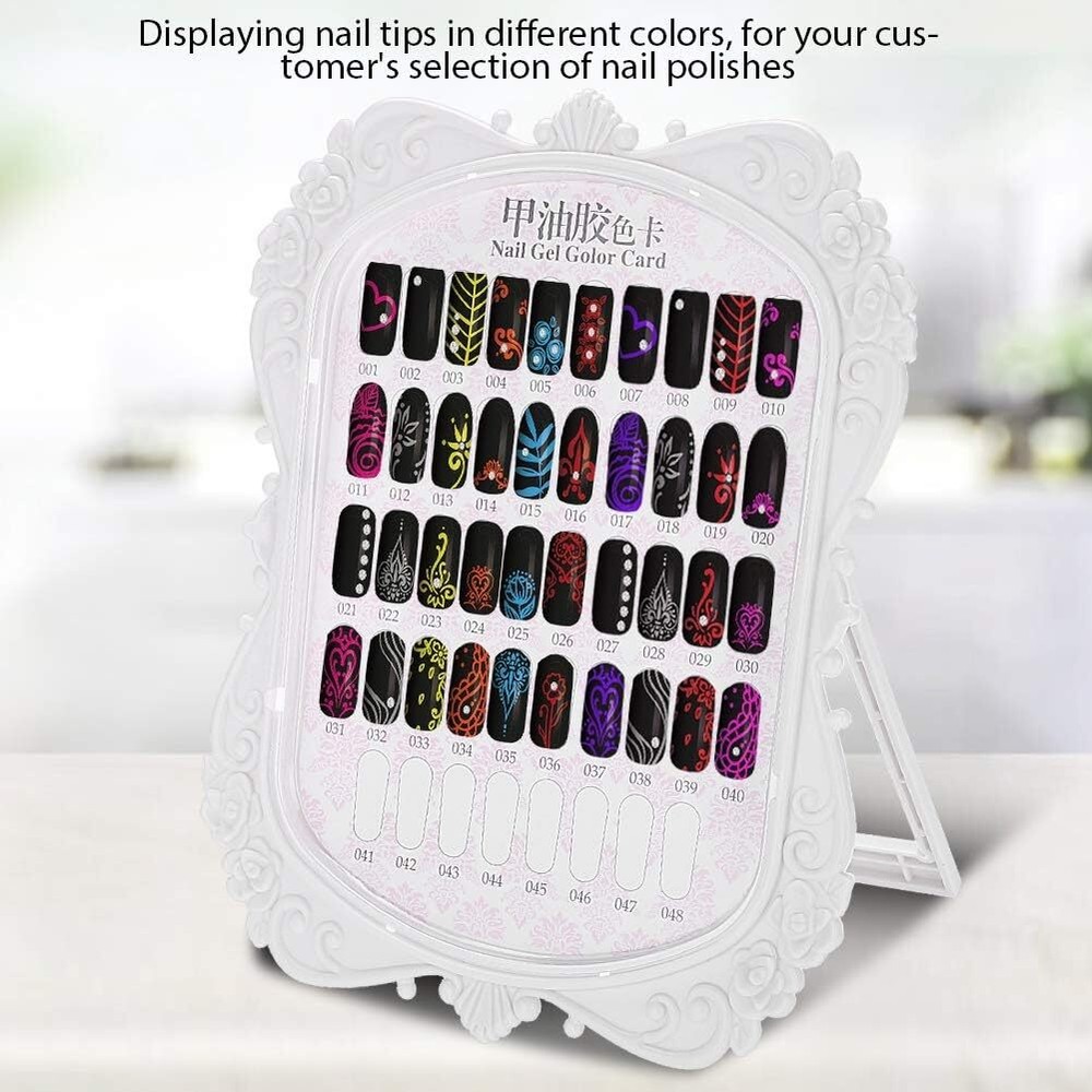 Nail Art Display Stand Flower Design 48 Colors Nail Polish Gel Card Nail Practice Manicure Tool, Nail Art Tips Chart Display Rack Polish Palette Stand Showing DIY