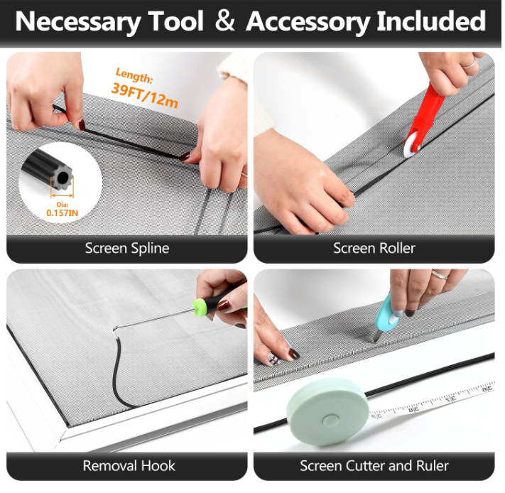 Window Screens Replacement Repair Kit, 48IN X 177IN Screen Door Mesh Replacement Kit, Durable Fiberglass Mesh Screen Roll with Tools for Windows Doors Patio and Porch Screens, Black Extra Large Screen Mesh: The window screen mesh measures 48 inch x 177 inch, which is sufficient to replace multiple standard-sized windows. Made of durable fiberglass material, it can be easily cut and is wear-resistant, allowing you to DIY as desired Easy To Install: Secopad window screen repair kit includes necessary tools and accessories: screen spline, screen roller, removal hook, screen cutter and ruler. These make it easier and faster to replace while helping you save money and time Pet and Kids Friendly: Window screen replacement helps to ventilation and protect your kids and pets at the same time. The screen material is waterproof, you can ventilate the room whenever you want, rain or shine outside Long service life: The service time of the window screen door repair kit is at least 5 years. This screen for windows is well-lighted and can be used for kinds of screen windows, sliding screen doors, patio screen mesh, porch screen and so on . We offer FREE shipping on all orders! . We ship within Five business days of payment, usually sooner. . We use a selection of shipping services such as UPS, FedEx, USPS etc. . We only ship to the lower 48 states, no APO/FPO addresses or PO Boxes allowed. . Local pickups and combined shipping options are not provided at this time. . Your satisfaction is a wonderful reward for our efforts. Please assist us by leaving a positive review if you feel pleased with our service. . In the event that you encounter any difficulties related to your order, please do not hesitate to reach out to us directly through the Messaging system on the Ebay platform. Kindly consider opening a COMPLAINT or a RETURN REQUEST as a last resort, only after all other possible measures have been attempted and we have been unable to provide you with assistance. . We will get in touch with you within 24 hours and make every effort to ensure your satisfaction. . Please rest assured of our service quality.