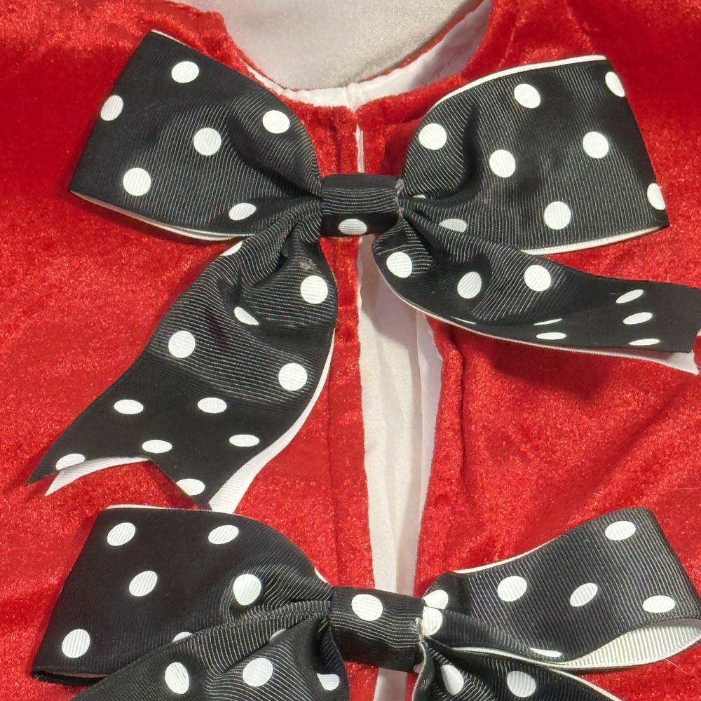Add a fun and festive touch to your Christmas tree with this 48" red, white, and black polka dot tree skirt. Made from a combination of cotton and faux fur, this large round tree skirt features cute bow ties and a playful polka dot pattern. Perfect for any Christmas occasion, this tree skirt will add a touch of whimsy to your holiday decor. Never used