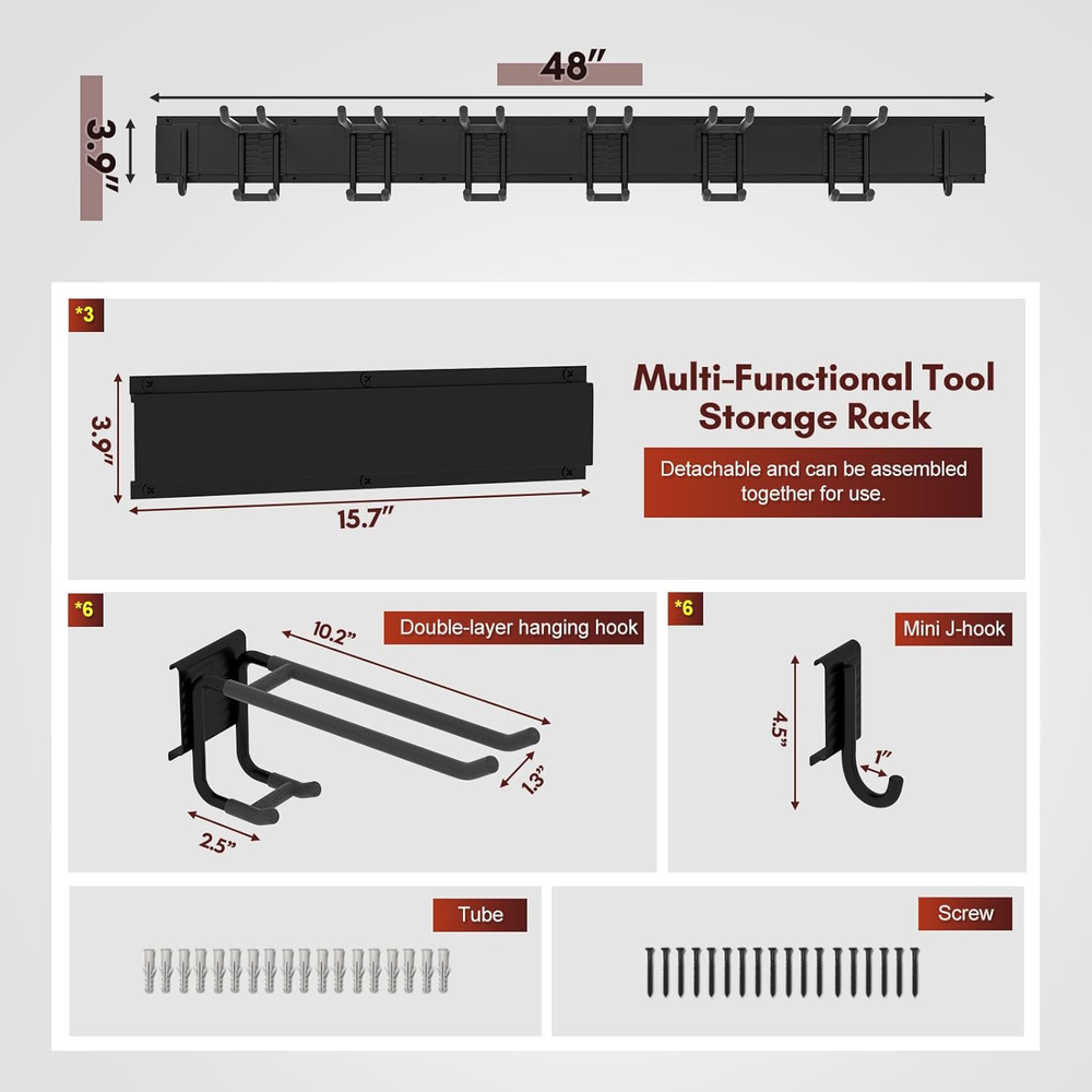 Store New Arrivals Add to Favorite View Feedback Contact Fast deliveries to the customer's home Quality customer service John Make the customers happy! Garage Tool Organizer Wall Mount,Garden Tools Rack,48 Inch Storage Hanger with Removable Heavy Duty Hooks Description Multi-Functional Storage Rack: This garage tool organizer can hold a variety of tools, including shovels, brooms, rakes, power tools, folding chairs and more. It can also accommodate tools of different sizes and shapes, ensuring versatility of storage options Improves efficiency: An ideal wall mount garage tool storage rack for organizing a variety of equipment in your garage, a tool holder improves your efficiency and productivity.You can spend less time searching for tools and more time actually working on projects Customizable Tool Organizer: It provides a customizable modular system that allows you to customize and expand storage capacity according to your needs. You can add or remove tools, tracks, hooks, on the garage tool organizer as needed Easy to Install: Our garage tool organizer require just a few simple steps to install, and they come with mounting hardware and instructions that make the installation process straightforward. This allows users to effectively organize their garage or storage space without the need for complex tools or extensive DIY knowledge Safety protection: Well-organized tool storage rack securely store your tools, reducing the risk of accidents and injuries that can result from scattered tools. It also protects your tools from damage or rust caused by improper storage Product Description Vilaxing Garage Tool Organizer The adjustable tool storage rack is a heavy-duty wall-mounted rack that can accommodate all tools and organize your garage. It comes with 8 adjustable attachments and is designed to be used with our adjustable storage rack series, providing a customizable storage solution to fit your tools. Single Hooks This single hook can easily attach to slatwall panels, allowing you to hang and organize various items such as tools, accessories, and equipment Double-layer Hooks Double-layer design,allowing you to hang multiple items .This maximizes vertical storage space and helps to keep your garage or workspace organized Easy to Snap With the snap-in design, you can easily insert or remove the hooks from the slatwall, making it convenient to rearrange or organize display areas Easy to Adjustable The hooks on the slatwall can be adjusted to fit different sizes and shapes of items needs. This versatility meets your personalized requirements. Good Garage Tool Organizer Item model number UT029-UT031 Style Garden Country of Origin China Batteries Included? No Room Type Garage Finish Powder Coated Assembly Required Yes Product Dimensions 32"D x 5.2"W x 4.4"H Material Metal Finish Type Powder Coated Included Components Hardware Batteries Required? No Item Weight 9.97 pounds Number of Shelves 2 Special Features Detachable, Expandable Special Feature Detachable, Expandable Shelf Type Bracket Shelf Mounting Type Wall Mount Color Black Recommended Uses For Product Tools Size 48 inch ABOUT US We offer the best prices around on high quality products. Our E-store includes media such as books, movies, music and games while offering electronics, toys, sporting apparel, clothing, tools, general home, garden items and more. SHIPPING We are always working hard to ensure your package arrives as soon as possible. Please understand that some factors like weather, high postal traffic, and the performance of shipping companies are outside of our control. We offer free shipping to the lower 48 states and ship within 2 business days of payment, usually sooner. We do not accept P.O. Boxes. Please provide a physical address. For shipping outside of the continental USA, we only use eBay's Global Shipping Program. The item is shipped to KY and then sent to the rest of the world. International customers are responsible for all duties and taxes. Continue to 'check out' to calculate costs for shipping the item to your country. Messages regarding eBay's Global Shipping Program MUST be directed at eBay EXCLUSIVELY. RETURNS We offer a 30-Day Return Policy on items in which you are not completely satisfied with. You have the option of a full-refund or an exchange of the item. No returns are available on items shipped outside of the USA PAYMENT We accept PayPal. CONTACT US This page content is yet to come Please ad us to your favorite seller and visit again later Thank You CUSTOMER SATISFACTION We try our very best to make sure every customer is completely satisfied. If there's a problem, message us! We're happy to help. WE ACCEPT