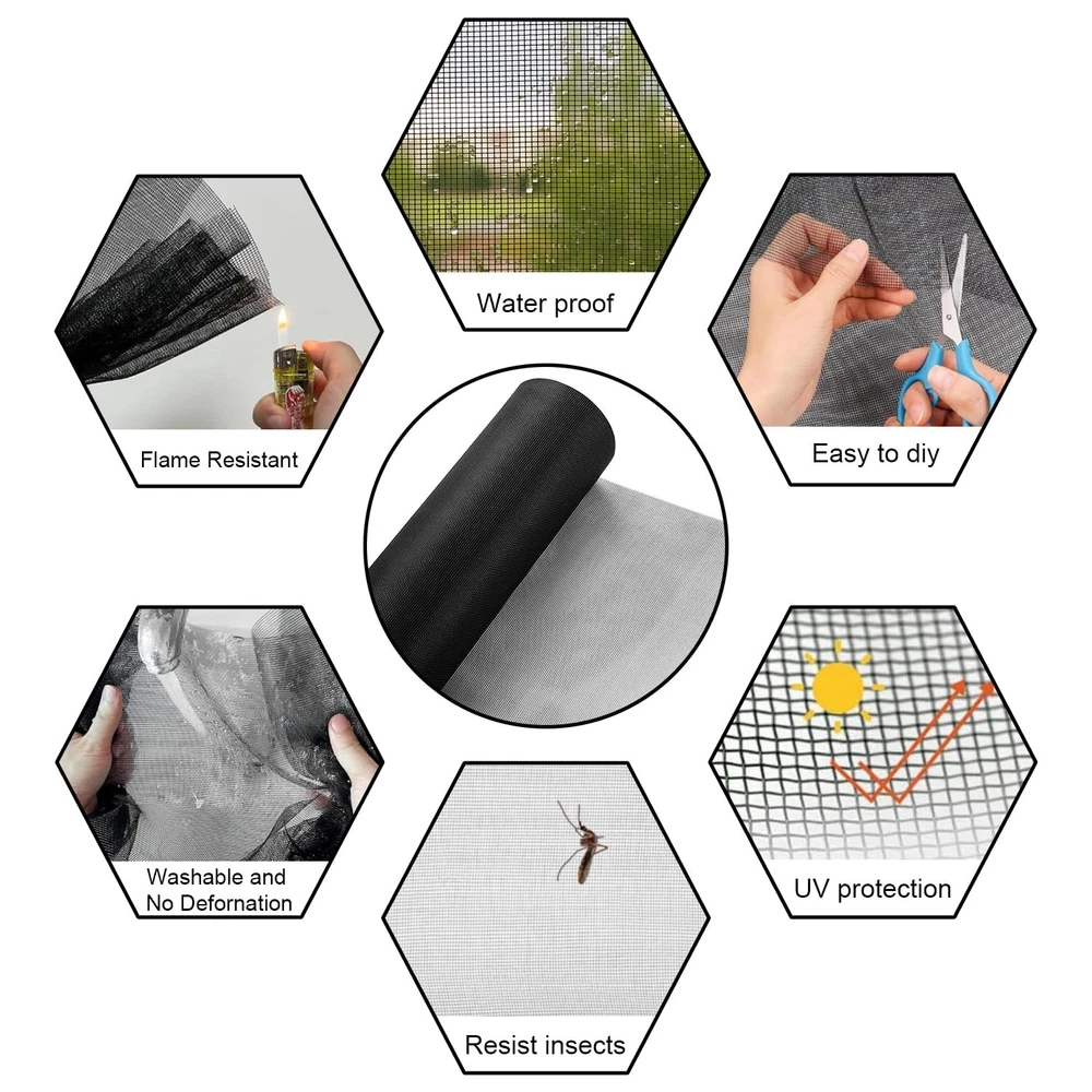 Window Screen Replacement, Window Screen Mesh, 48 in x 100 ft DIY Adjustable Window Screen Durable Fiberglass Mesh Roll Screen Door Mesh for Window, Patio Screen, Porch Screen, or Door - Black Durable Construction: The screen door mesh is made of upgraded fiberglass,ensuring durability and resistance to wear and tear. Patio screen mesh effectively keeps out insects while allowing fresh air to flow through. Enjoy peace of mind knowing your family is protected from bugs without compromising ventilation. Weather-Resistant: Our pet proof window screen is built to withstand extreme weather, this cat proof window screen resists rust, corrosion, and UV damage. Whether it’s rain, wind, or sun, window screen repair kit remains intact and functional. Protect your home year-round with a screen that stands up to the elements. Simple Installation: This window screen mesh is designed for easy installation, making it perfect for DIY enthusiasts. Screen for windows flexible yet sturdy structure fits most window frames seamlessly. Say goodbye to complicated setups and give your windows a new look! Enhanced Airflow and Clarity: Our fine mesh window screen offers superior airflow while maintaining clear visibility. The tightly woven design keeps even the smallest insects out, ensuring a comfortable indoor environment. Experience the perfect balance of fresh air and unobstructed views. Versatile Use: These fiberglass mesh are ideal for a variety of applications, including patio screens, porch screens, pool enclosures, garden barriers, sliding doors, entry doors, front doors, pet enclosures, French doors, and greenhouse doors. Window screen roll is also perfect for DIY projects, offering flexibility for any screening need.