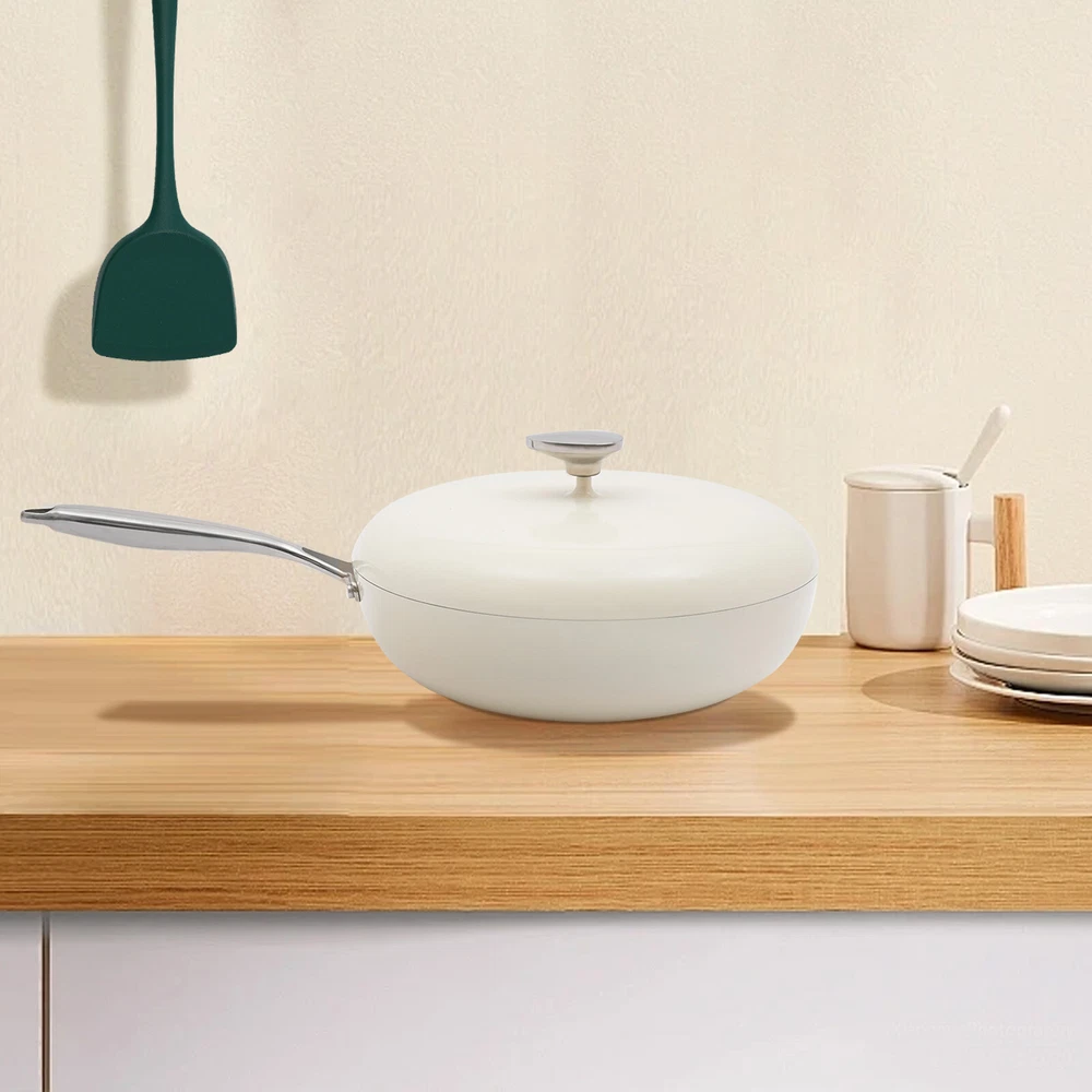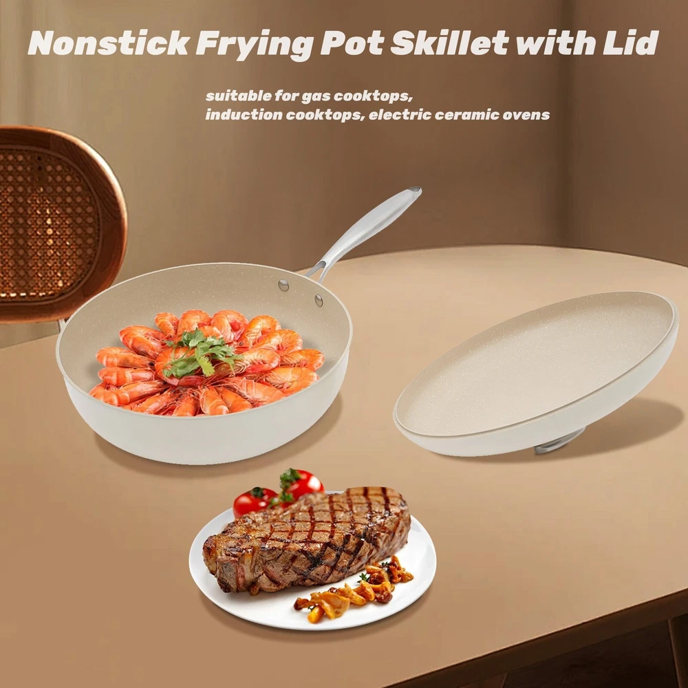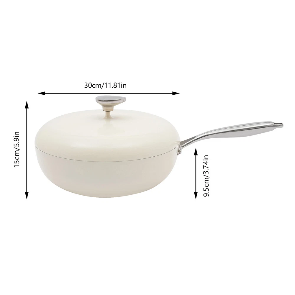 Specification Material: Aluminum, Stainless Steel, Silicone Color: Milky White Process: Medical Stone Coating Style: Modern Assembly Required: No Mounting Type: Tabletop Capacity: 4.8L/162.33oz Mouth Diameter: 30cm/11.81in Depth: 9.5cm/3.74in Lid Height: 15cm/5.9in Applicable Number of People: 4-6 Package Size: 54*37*14cm/21.26*14.57*5.51in Gross Weight: 2.6kg/5.73lbs Net Weight: 2.4kg/5.29lbs Package Included 1* Frying Pot with Lid 1* Spatula Notes 1.Please do not allow the oil temperature to rise above 392℉. 2.Please do not use hard materials such as steel wire balls to clean the cookware. 3.The pot is dry in the first stage, it is recommended not to cook noodles or starchy food, and the operation will be better in the later stage. It is recommended that you control the fire when 4.8L Nonstick Frying Pot Skillet With Lid Healthy Chef Pot Efficient Cooking Description Traditional iron or stainless steel frying pots can cause your food to stick to the pots, but our non-stick pot is a good solution to this problem. It is an efficient cooking tool that combines natural medical stone coating with modern non-stick technology, combining natural beauty and practicality, aiming to bring you a healthy and relaxing cooking experience, whether it's sauteing, stir-frying, or stewing. Key Features Made to Last: Our product consists of a high-quality aluminum pot with a stainless steel handle, treated with a medical stone coating that is sturdy and heat-resistant, non-stick and stain-resistant, ensuring long-term beauty and practicality. Excellent Performance: This product uses a high-fold heat circulation layer, a heat-conducting alloy layer, a sturdy wear-resistant base layer, and pebble-suspended microparticles to make it heat up quickly, and it also achieves a double non-stick effect inside and out. Efficient Cooking: Without the steam outlet on the lid of this product, this product makes a stronger seal between the lid and the pot, forming a good seal and internal circulation mechanism for steam, which can cook food evenly and quickly while also maintaining the temperature of the food and preserving its flavor. Large Capacity: The 3.74-inch deepening pot and large capacity of 162.33oz can cook enough food for 4-6 people at one time, thus satisfying you and your family's eating needs. Safe & Healthy to Use: This product is PFOA-free to reduce the hazards of grease and smoke, making it convenient for you to prepare safe and healthy food while maintaining its non-stick properties. Exquisite Appearance: The smooth milky white surface and smooth lines with silver handles and a pebble-shaped cover bead make it elegant and classy, adding a bright landscape to your kitchen as well. Effortless Cleaning: Its smooth surface and non-stick coating make it less likely to accumulate grease, making it easy for you to clean and maintain. Ideal Gift: With good performance and a modern appearance, it can be used as an ideal housewarming gift for parents, friends, and lovers so that they can also enjoy more delicious and healthy food. Good Customer Service: We aim to provide quality products and services. If you have problems, please feel free to contact us. We will reply and solve the problem for you as soon as possible. Details Anti-scald Handle: The stainless steel handle has good insulation and heat resistance to improve your safety. Threaded Bottom: This design makes it more wear-resistant and non-slip, enhancing its practicality. Application This product is suitable for gas cooktops, induction cooktops, electric ceramic ovens, etc. This pot can be used for sauteing, stir-frying, braising, and boiling. Specification Material: Aluminum, Stainless Steel, Silicone Color: Milky White Process: Medical Stone Coating Style: Modern Assembly Required: No Mounting Type: Tabletop Capacity: 4.8L/162.33oz Mouth Diameter: 30cm/11.81in Depth: 9.5cm/3.74in Lid Height: 15cm/5.9in Applicable Number of People: 4-6 Package Size: 54*37*14cm/21.26*14.57*5.51in Gross Weight: 2.6kg/5.73lbs Net Weight: 2.4kg/5.29lbs Package Included 1* Frying Pot with Lid 1* Spatula Notes 1.Please do not allow the oil temperature to rise above 392℉. 2.Please do not use hard materials such as steel wire balls to clean the cookware. 3.The pot is dry in the first stage, it is recommended not to cook noodles or starchy food, and the operation will be better in the later stage. It is recommended that you control the fire when you use it, use medium fire for stir-frying vegetables, and use low fire for frying meat and sautéing things. 4.products support the use of a new induction cooker, the old induction cooker may not be recognized, the general stir-fry heat acceptance range of 1200w ~ 1800w. Due to the bottom of the pot's heat capacity, it is recommended that no more than 2000w. 5.The gas cooking stove is recommended to be used with low to medium heat. Please note that the gas stove itself has a floating fire extinguished situation, it is recommended to do dishes in a timely manner after cleaning the pot and pot surface, to avoid leaving stains in the second fire extinguished caused by adsorption to strengthen the stains caused by the difficult to clean the phenomenon. (Normal circumstances can be avoided) 6.Please put a little oil when using it to avoid empty and dry burning. Please allow the slight color difference caused by the shooting light and 1-3cm error due to manual measurement, and make sure you do not mind before ordering. Payment Delivery details Terms of sales About us Contact us Payment We accept ebay payment 。 Fees such as import duties, taxes are not included in the item price or shipping costs. These charges are the buyer's responsibility. Delivery details Shipping: 2-9 working days to: USA Terms of sales We maintain high standards of excellence and strive for hundred percent customer satisfaction. Feedback is very important to us. We hope that you contact us immediately before you give neutral or negative feedback, so that we can