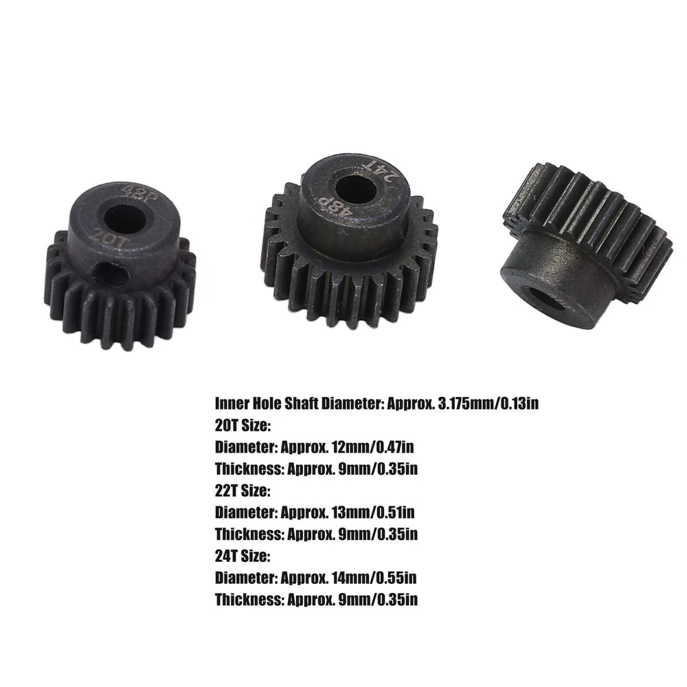 48P Pinion Gear Set 20T 22T 24T 3.175mm RC Motor Pinion Gear for 1/10 RC