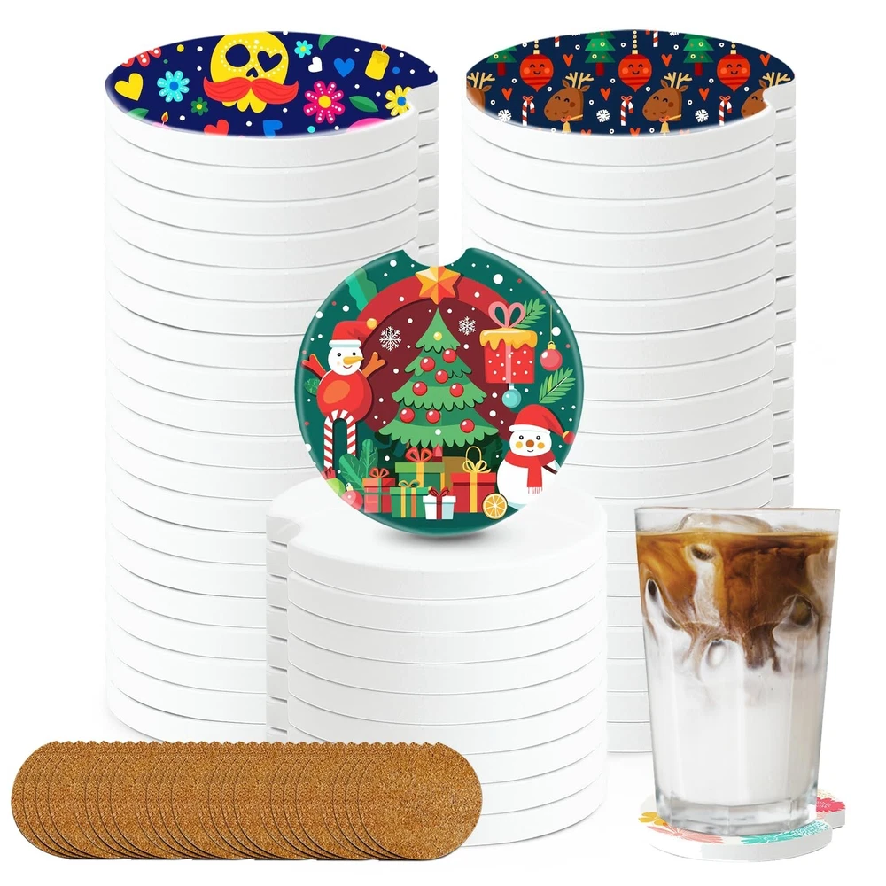 48PCS Sublimation Blanks Car Coasters, Blank Coasters for Sublimation Ceramic Cupholder Circular Opening for Heat Transfer DIY Crafts Car Accessories Interior Personalized Christmas Decor Product Details Number of Items: 48 Brand: VPJ MPN: cc UPC: Does not apply EAN: Does not apply Color: White Material: Ceramic Brand: VPJ Shape: Round Product Care Instructions: Hand Wash Only Color: White Material: Ceramic Brand: VPJ Shape: Round Product Care Instructions: Hand Wash Only Is Dishwasher Safe: No Product Dimensions: 2.6"L x 2.6"W Manufacturer: VPJ Number of Items: 48 Item Weight: 4.22 pounds Country of Origin: China Item model number: cc Date First Available: March 6, 2024 Christmas Car Decorations -- You will receive 48 pieces of car coasters sublimation blanks and matching cork pad. The ceramic car coasters measure approximately 6.6x6.6cm/2.6"x2.6" (L x W), 6mm/0.24" thick. Sublimation Blanks Bulk -- The coasters for car are made of high-quality ceramic raw embryos with uniform shapes. The sublimation coasters can withstand the temperature of the transfer machine from 356 f/ 180 C to 428 f/ 220C for about 25 seconds to 60 seconds. Personalized Birthday Gifts -- You can design sublimation decorations, which are perfect as unique custom gifts for friends and family. You can design many personalized patterns to give to your family and friends according to your hobbies. DIY Car Decorations -- The sublimation coasters blanks is suitable for many occasions,can be used in car,office,kitchen,bedroom,living room,cafes,hotels,etc,to hold coffee tea cups,glasses,bottles. Unique Gifts for Women -- The sublimation coasters blanks ceramic can custom ceramic coasters gifts or wedding gifts for your family, friends, neighbors, church members and grandparents. In addition, the sublimation ceramic blanks can print office slogans, greetings, brand logos and other content you want, and are widely used in shops, offices, hotels, restaurants, bars and other places.