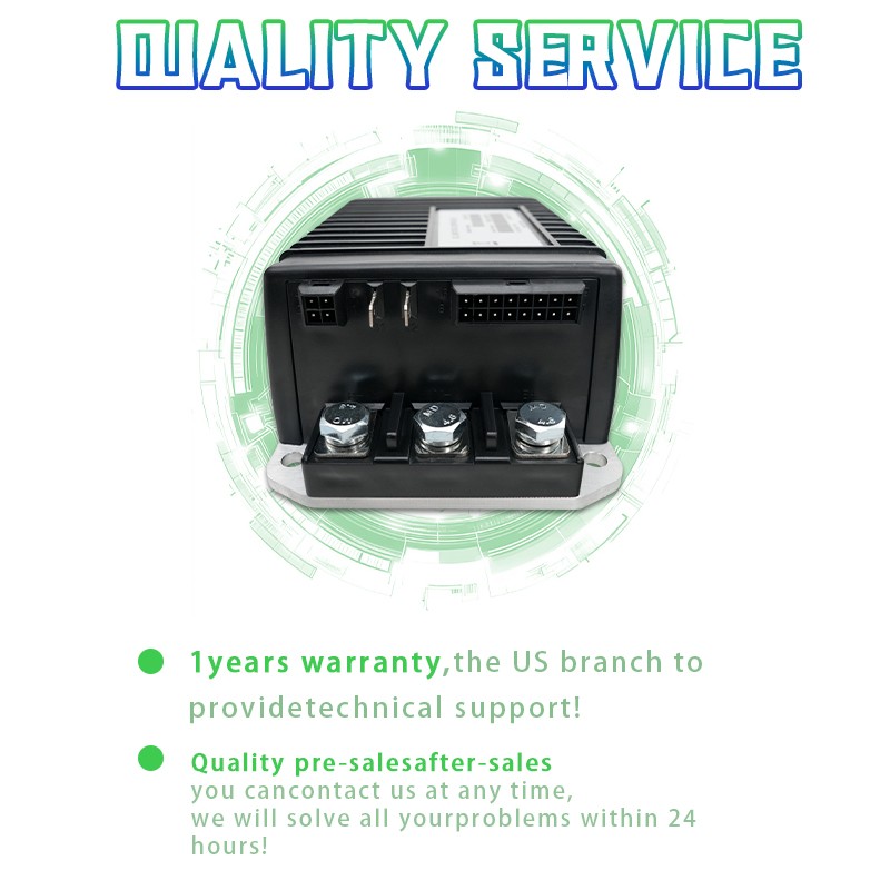 Store Categories Store Categories Auto Parts Golf Car Parts Other 48V 275A Motor Controller 102806201 Fits Curtis Club Car DS Precedent 1510A-5251 Product Description Features I n clude : Regenerative braking, providing longer operation on a single battery charge and reducing motor brush wear and motor heating Vehicle speed control is enhanced through feedback from a 3-wire potentiometer (MCOR) speed sensor Anti-stall function helps prevent motor commutator damage Splash resistant plastic cover Meets or exceeds EEC fault detect requirements Overv i ew : Rated for 48V / 275A, working with MCOR 3-wire potentiometer throttle, 1510A-5201 is an IQ electrical system DC SepEx (SX, separately excited) motor speed controller. On Club Car golf cart models DS & Precedent, starting year 2000, the IQ speed controllers are used for better speed and torque performance. Key Fe atu res : Model: 1510A-5201 Norminal Battery Voltage (Volts): 48V Amature 2 minute current rating (amps): 275A Field 2 minute current rating (amps): 20A KSI input current (typical): 160 mA without programmer 200 mA with programmer Logic enable and logic power input voltage (minimum): 16.8 V Logic enable and logic power input current (no contactors engaged): 160 mA without programmer; 200 mA with programmer Logic input voltage: 20.0 V High; 7.5 V Low Logic input current 10 mA Throttle Type: MCOR 3-wire 0-5K potentiometer throttle Ambient operating temperature range: -40°C to 50°C Heatsink overtemperature cutback: starts at 85°C; cutoff at 95°C Heatsink undertemperature cutback: 50% armature current at -25°C Package environmental rating: IP5X Dimensions: L198 × W114 × H68 mm Net Weight: 1.9 kg SPECIFIC ATIONS: NOMINAL VOLTAGE 48 V CURRENT RATING 275 A THROTTLE TYPE MCOR MAKE Club Car Precedent IQ System Shipping Policy Returns Policy Contact Us Shipping Policy Free shipping is available to all addresses except APO/PO Boxes in the lower 48 states. All items are shipped quickly from our US warehouse. We ship via USPS, UPS, DHL, and FedEx (depending on location and package weight). Unless otherwise stated, all orders will ship within 24-72 hours after payment is processed. Check out our feedback to see how much we love our fast shipping service. Returns Policy 1 .Support return within 30 days for a replacement or money back. 2.Damage or Missing Part : Please send clear photos about damaged part to us as attachment Customer must contact us within 30 days of receiving shipment for approval of any return or exchange. 3.Item Bought by Mistake, no longer needed, doesn't fit,found a better price,change mind : Customers need to cover return shipping fee. 4.Cancel the order : You can cancel order for free before item shipped out,if the item shipped out already, you can return it for a refund after it arrives. 5.Warranty:The product purchased will include a 1 year limited warranty,If there is any problem within one year, please contact us in time, and we will provide you with a solution.(The buyer is responsible for any return shipping.) 6.Return Refund:Once we receive the package, it should take 2 business days to process and inspect your return.If you do not see your credit applied to account after 5 business days after the return is received,please contact us. Contact Us Welcome to Our eBay Store! Discover industry-leading solutions for your vehicle needs. We specialize in high-performance components including Motor Controllers, DC Contactors, Battery Connectors, Electronic Parts, Handles & Throttles, Switches, and Multi-function HD Displays, designed for Forklifts and Golf Carts. Backed by our own state-of-the-art manufacturing facility, every product undergoes stringent quality assurance checks to ensure superior performance and durability. Rest assured, each item comes with a full 12-month warranty for your peace of mind. Have questions or need support? Our dedicated customer service team is here to assist you every step of the way. Reach out today—we’re committed to your satisfaction! Copyright © 2023 Dianxiaomi
