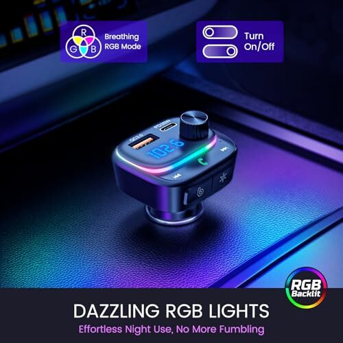 VR Car FM Transmitter with Bluetooth 5.0 RGB Ambient Light & USB Charging