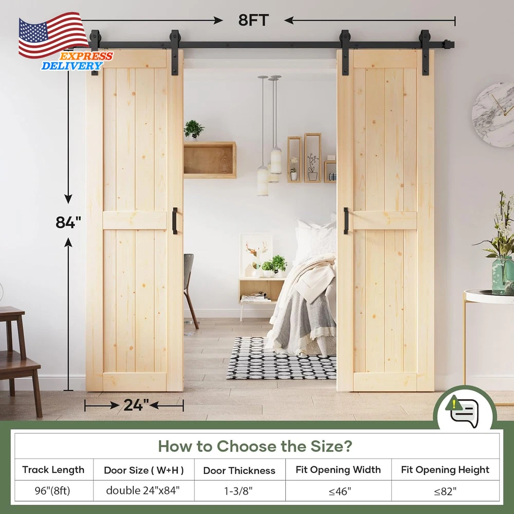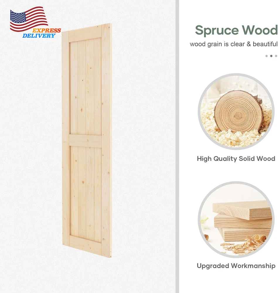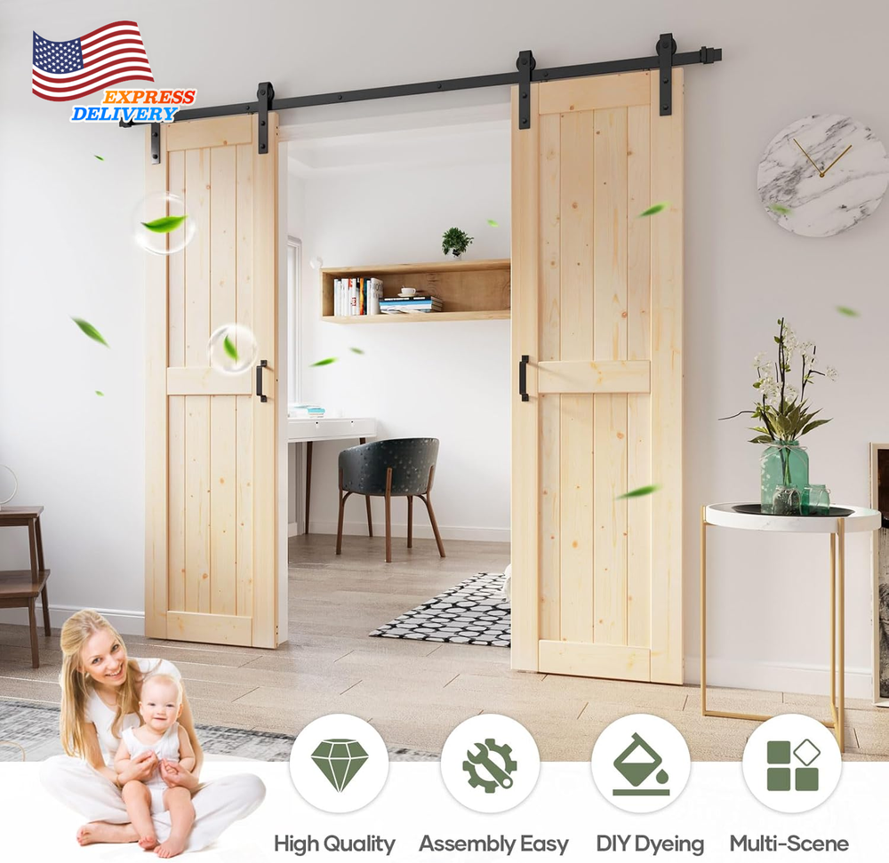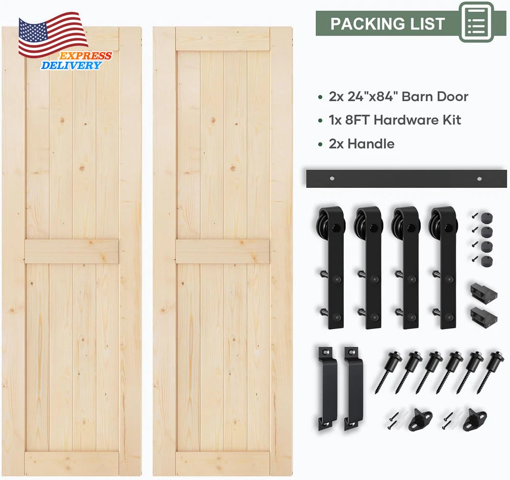 Store New Arrivals Add to Favorite View Feedback Contact 48X84 Inch Sliding Barn Wood Door Slab with 8Ft Hardware Kit Simple DIY Assembly Description Item model number SH-WD-01H-24H-X2 Part Number SH-WD-01H-24H-X2 Style Rustic Assembly Required Yes Item Package Quantity 1 Color White Material Wood Country of Origin China Batteries Required? No Item Weight 76 Pounds Batteries Included? No Is Discontinued By Manufacturer No Product Dimensions 1.38 x 24 x 84 inches Size Double 24"x84" Doors with Hardware SPRUCE SOLID WOOD: Using spruce wood as raw material, it is strong and durable, and not easy to crack. The surface wood grain is clear, beautiful, and the smell is fresh. PARTS LIST: 2x Door: Width: 24", Height: 84", Thickness: 1-3/8"; 1x Hardware Track Kit: (2)4ft Track,(4)Hanger,(6)Spacer,(2)Door Stops,(2)Floor Guide,(2)Handle,(1)Track connector. DIY REQUIREMENT: Package includes separated wood boards, barn door hardware kit, necessary screws and detailed instructions. All wood boards have been pre-cuted and pre-drilled for assemble. Assemble a door like building blocks. WIDELY USED: The solid wood barn door can be painted with favorite color to fit your home environment. Great for warehouse, bedrooms, bathrooms, storeroom, pantries, walk-in closets and so on. 24 HOUR STAND BY: If any package parts are missing or damaged, and if you have any questions about the installation and specifications, please let us know and we are whole day online to help you. Product Description If I have a doorway trim, do I need to a headboard? You need a headboard when "door depth'' plus "trim depth'' is greater than 2''. Does the headboard included? No. The headboard is not included. Does the door need to be assembled? Yes, door will come in pieces with instruction. You can install it easily. How to choose the barn door with hardware kit for my opening? Usually the length of track should be twice of the width of door panel. A bit longer will be better. What's in the parts list? 2 x Door: Width: 24", Height: 84"; 1 x Hardware Track Kit: (2)4ft Track,(4)Hanger,(6)Spacer,(2)Door Stops,(2)Floor Guide,(2)Handle. ABOUT US We offer the best prices around on high quality products. Our E-store includes media such as books, movies, music and games while offering electronics, toys, sporting apparel, clothing, tools, general home, garden items and more. SHIPPING We are always working hard to ensure your package arrives as soon as possible. Please understand that some factors like weather, high postal traffic, and the performance of shipping companies are outside of our control. We offer free shipping to the lower 48 states and ship within 2 business days of payment, usually sooner. We do not accept P.O. Boxes. Please provide a physical address. For shipping outside of the continental USA, we only use eBay's Global Shipping Program.The item is shipped to KY and then sent to the rest of the world. International customers are responsible for all duties and taxes. Continue to check out in order to calculate costs for shipping the item to your country. Messages regarding eBay's Global Shipping Program MUST be directed at eBay EXCLUSIVELY. RETURNS We offer a 30-Day Return Policy on items which you are not completely satisfied with. You have the option for a full-refund or an exchange of the item. No returns are available on items shipped outside of the USA. PAYMENT We accept PayPal. CONTACT US This page content is yet to come Please ad us to your favorite seller and visit again later Thank You CUSTOMER SATISFACTION We try our very best to make sure every customer is completely satisfied. If there's a problem, message us! We're happy to help. WE ACCEPT Copyright © 2021 AutoDS. | All Rights Reserved