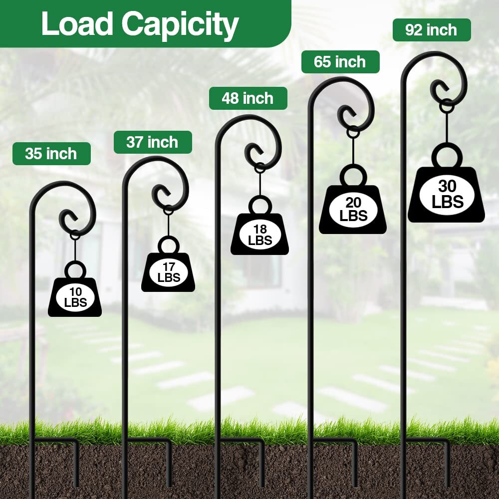 Shepherd Hook 48 Inch 5 Pack One Piece Structure No Assembly Required 2/5 Inch Heavy Duty Solid Metal Shepards for Garden Outdoor Plants Lantern Mason Jar Wind Chimes Wedding Small SH48 Durable and Heavy Duty : This black heavy duty garden shepherds hook is made of 48 inch tall and 2/5 inch diameter one piece wrought iron solid metal garden hanging hooks, much heavy duty than other brand garden shepherds hooks, makes you have the confidence you have the strongest and most heavy duty garden shepherd hook for hanging bird feeder pole or garden plant stakes, just bring your heaviest flower pot basket or bird feeders pole. No Assembly Required: shepherds hook is one piece structure, it will come ready to use and there is no tools or complex assembly required, no section screws together, simply stake the garden shepards hook in the ground with your foot and you are ready to go! Anti-Rust : Our shepherds hook glossy powder paint makes it rustproof and the black color remains lovely. Stake the tall shepherds hook directly into the ground for a humming bird feeder pole stand hanging solar lanterns, and begin enjoying a beautiful garden immediately. Multi-Purpose : Beautify your outdoor living space by hanging Plants, flower pots,bird feeder poles,lanterns,candle holders,garden lights,mason jars,holiday decorations,string lights,wind chimes,ornaments,flower balls, bird baths,shooting targets,solar Lanterns lights,isle markers,buckets of sand for ashtrays and more!Enhance garden look and place these shepherd hooks around pathways,flower beds in around bushes in your garden or yard for outside decoration. Stylish and Beautiful : The heavy duty shepherds hook great for outdoor wedding aisle hook crook stake hanging flower balls and mason jars,tall shepherds hook for bird feeders and poles,outdoor plant hangers and garden decor hangings,hang your flying ghost and solar lantern.shepard hooks for wedding and yard hooks for lanterns and garden stake.Powder coated not only resistant rust but also providing stylish shiny black looking which adds special scenic views to your lawn and garden. Shipping We offer FREE shipping on all orders! We ship within Three business days of payment, usually sooner. We use a selection of shipping services such as UPS, FedEx, USPS etc. We only ship to the lower 48 states, no APO/FPO addresses or PO Boxes allowed. Local pickups and combined shipping options are not provided at this time. Return You can return a product for up to 30 days from the date you purchased it. Any product you return must be in the same condition you received it and in the original packaging. Please keep the receipt. Payment We accept payment by any of the following methods: PayPal Please pay as soon as possible after winning an auction, as that will allow us to post your item to you sooner! Feedback Customer satisfaction is very important to us. If you have any problem with your order, please contact us and we will do our best to make you satisfied. Contact Us If you have any queries, please contact us via ebay. We usually respond within 24 hours on weekdays. Please visit our eBay store to check out other items for sale! Thank you for shopping at our store.
