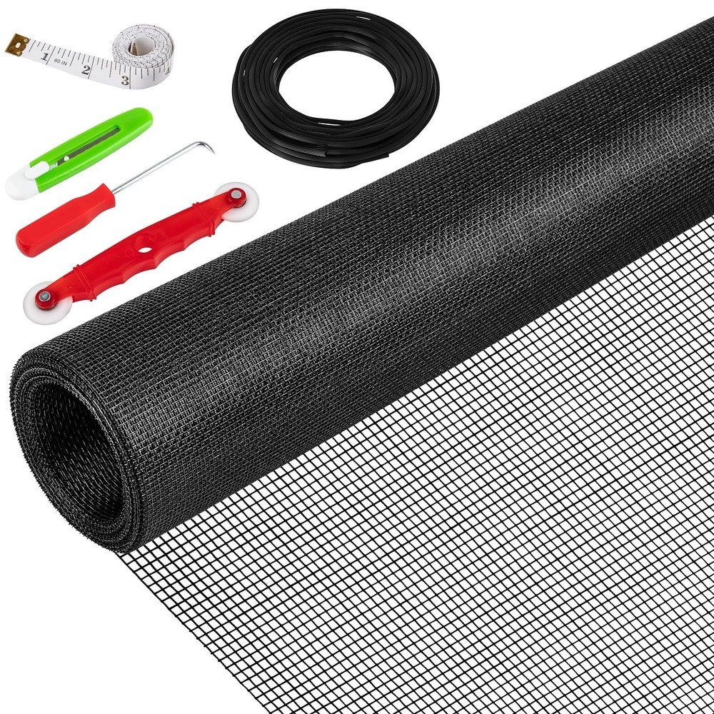 $ 30.3548"x118" Black Fiberglass Screen Door Repair Kit with 0.161" Spline
