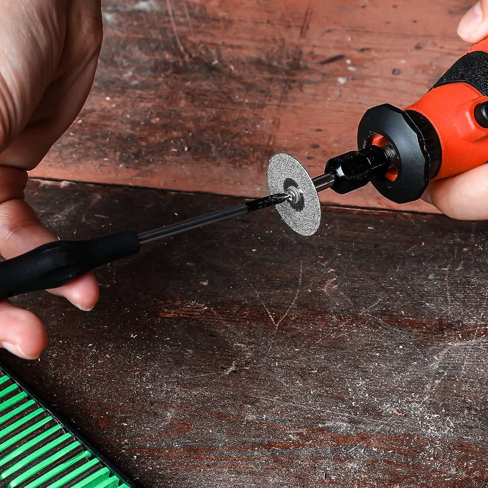48x Diamond Cutting Wheels For Dremel Rotary Tool Die Grinder Metal Cut Off Disc Features: Durable: the diamond cut off discs are thin, completely coated with fine diamond particles, breathing holes for reducing heat and removing debris, great for making slots and slit Wide range of usage: This diamond cutting wheel are suitable for doing DIY, cutting, sawing, carving, sharpening and filing hard materials including all kinds of precious , jade, marble concrete, brick, porcelain, ceramics, epoxy and other hard woods, but not recommended for metal. Compatibility: the diamond cut off wheels are compatible with the majority of rotary and air tools, electric grinder Notice: For your safety, please must wear gloves and goggles and be care around spark when using mandrel diamond cutting tools. It may become very hot when cutting, so add some water to keep it cool. Specification: Type:Diamond cut off discs Geynutaly Disc diameter: 0.87 inch/ 22 mm Disc thickness: 0.02 inch/ 0.6mm Mandrel length: 1.50 inch/ 38 mm Mandrel diameter: 0.12 inch/ 3.0 mm colour:Silver Material:diamond Package Contents: 48 * Diamond cutting wheel 8 * Mandrel Only the above package content, other products are not included. Note: Light and different displays may cause the color of the item in the picture a little different from the real thing. The measurement allowed error is +/- 1-3cm. Payment Delivery details Terms of sales Feedback Contact us Payment Immediate payment is required. Shipping will be arranged within 1 business day once payment is cleared. To uphold a shipping speed, your order will be processed almost immediately. If you change your mind after your payment is confirmed, we will do our best to cancel the order, however, we CANNOT guarantee the cancellation. Delivery details FREE SAME BUSINESS DAY MONDAY- FRIDAY SHIPPING FROM USA. No shipping on Weekends or US Public Holidays. No responsibility for any custom duty. We will ship your order to your Ebay Verified address provided. Please verify your address and make sure that it is your current address before making your payment. Any address change requests after your payment CANNOT be guaranteed. Shipping information will be updated when available. All of our products can be shipped internationally. To confirm the shipping rates to your country please refer to eBay's Shipping Tab above. Any brokerage, customs, and duty fees associated with international shipments are the customer's responsibility and are not included in our shipping fee. A phone number is required for the customs documents. Failure to provide one will result in delays. We do not include an invoice or any advertising materials with our shipments. Terms of sales We stand behind our items and offer 60 days warranty. All items are in new and working condition unless specified otherwise elsewhere in the description. All Returns - defective or otherwise - MUST BE PREAUTHORIZED to guarantee refund or exchange. Please contact us to get an authorization and return address. Buyer agrees to pay for the cost of re-shipment for undeliverable or wrong addresses. Buyer is responsible for Return Postage if return/replacement is not a result of our mistake such as wrong item. Replacement or Refund will be made upon receipt of the returned item. Please include tracking number so we can process ASAP. If you do not wish to wait for a replacement, please repurchase the item. Feedback We strive to provide the best products and services. Your positive feedback 5 stars DSR help us do better. If anything about your transaction did not meet expectations, please CONTACT US and give us the opportunity to make things right. We are always here to help. Contact us Please do not hesitate to CONTACT US . You can message 24/7 on eBay for all questions and inquiries. We will get back to you within one business days at the latest from Monday- Friday.