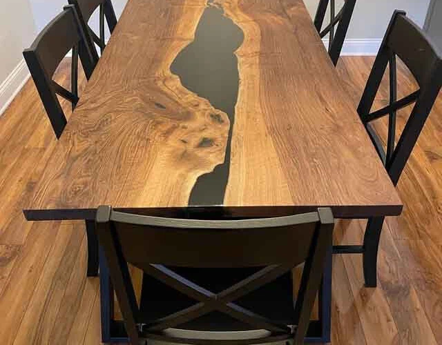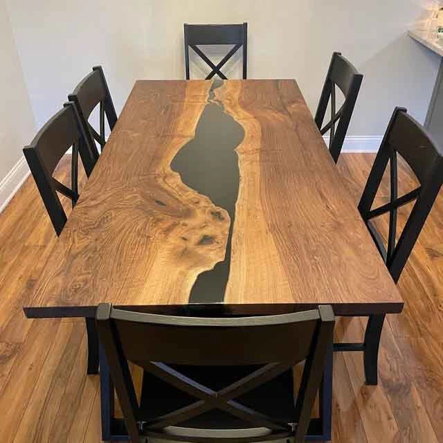 48x24 Black Epoxy Dining Table, Wooden Modern Furniture Table, Home Patio Decor