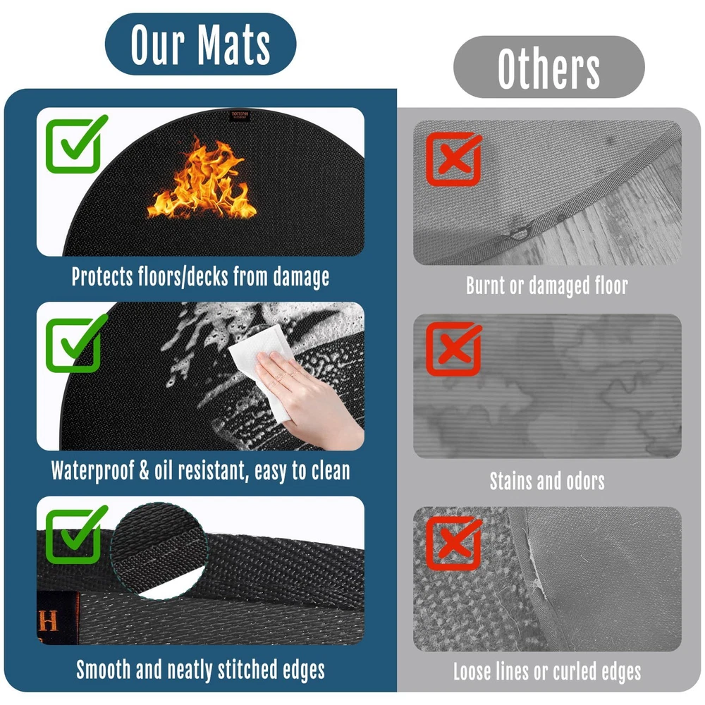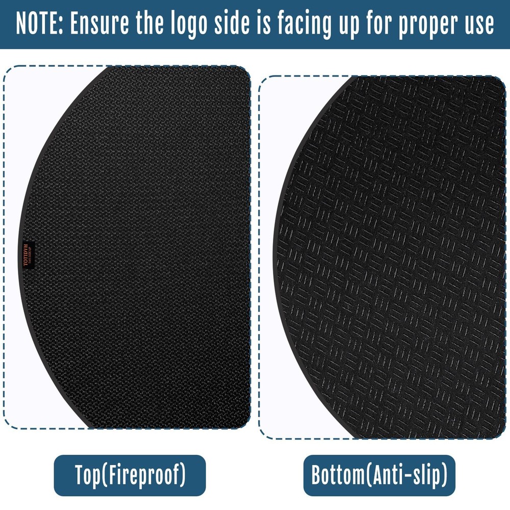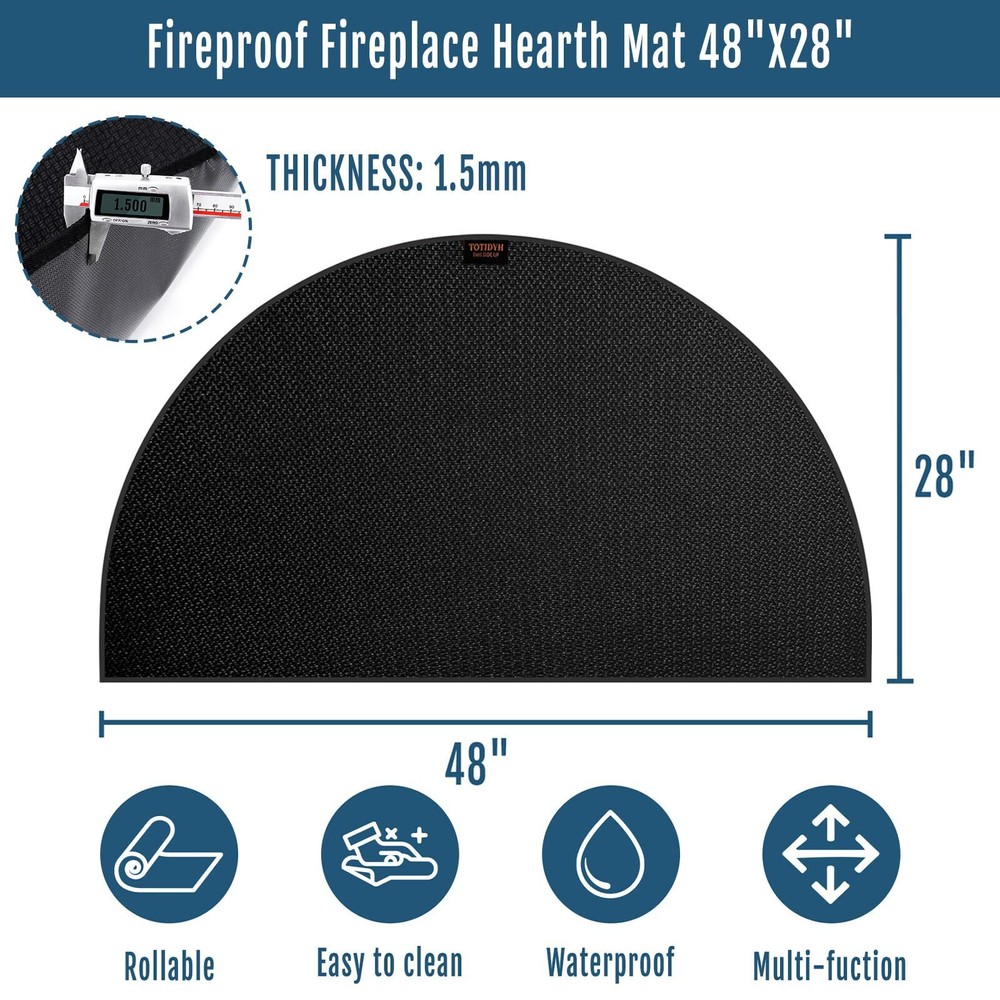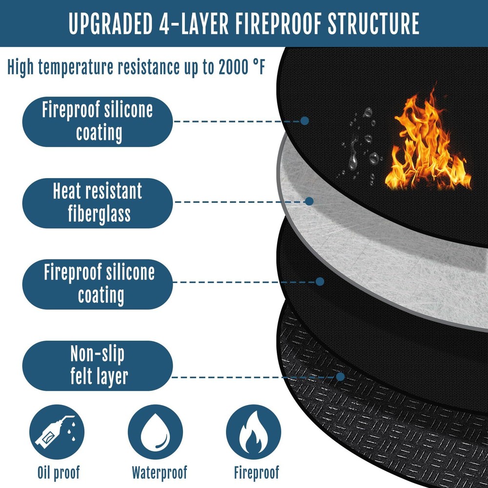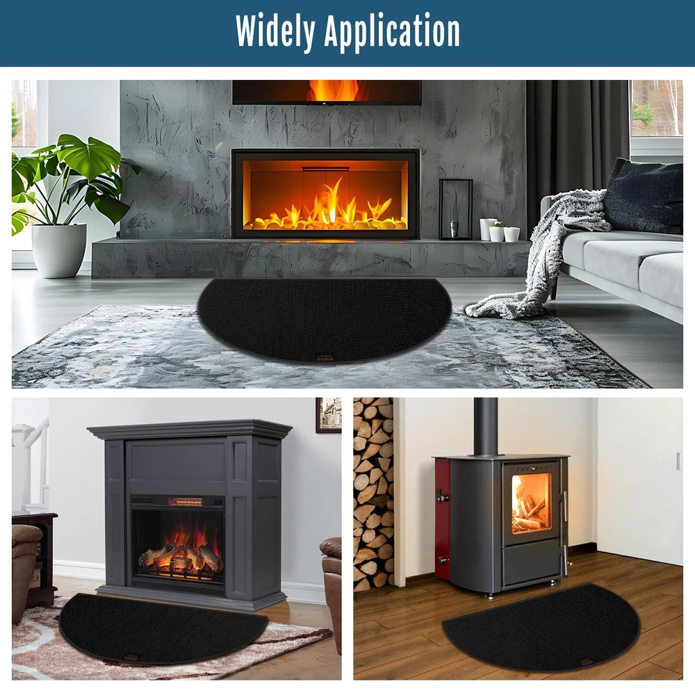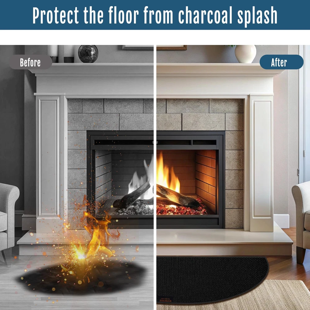 2000°F High Temperature Resistance: Our fireproof hearth rug is made of fiberglass with double-sided high-temperature resistant silicone coating and silicone anti slip pads, allowing withstand temperature up to 2000 °F. The fireplace mat has finely stitched edges that won't stick, tear, curl, or crack from the heat, ensuring durable protection for your floors Non-slip Fireplace Mat: The fire retardant hearth mat is 42 x 24 inches, which is made of non-slip silicone cloth on front and back surfaces. it can firmly grasp the ground, not easy to slide. NOTE: The top of our fireplace mat has the brand logo (). Please ensure the side with the logo is facing up during use, the surface with the anti-slip touching the ground directly Protect Floors from Damage: We designed this fireplace mat to protect the floor from charcoal splash when the fireplace is burning. The mat is large enough well crafted, can be used indoors and outdoors to prevent the bottom from burning, protects environmental hygiene and reduces cleaning burden Easy to Clean and Storage: Both sides of the fireproof pad are covered with non-slip, fireproof and waterproof silicone coating. You can directly use a vacuum cleaner, a broom, or shaking to clean the fireplace floor protector mat, wipe with a damp towel or rinse with a water hose. Plus, it can be easily folded or rolled up for convenient storage when not in use Widely Used: Our fiberglass fire-resistant fireplace mat is highly versatile, offering excellent protection for a floors, carpets, decks, garage floors, and patios. It’s ideal for use under fireplaces, outdoor grills, fire pits, stoves, chimineas.