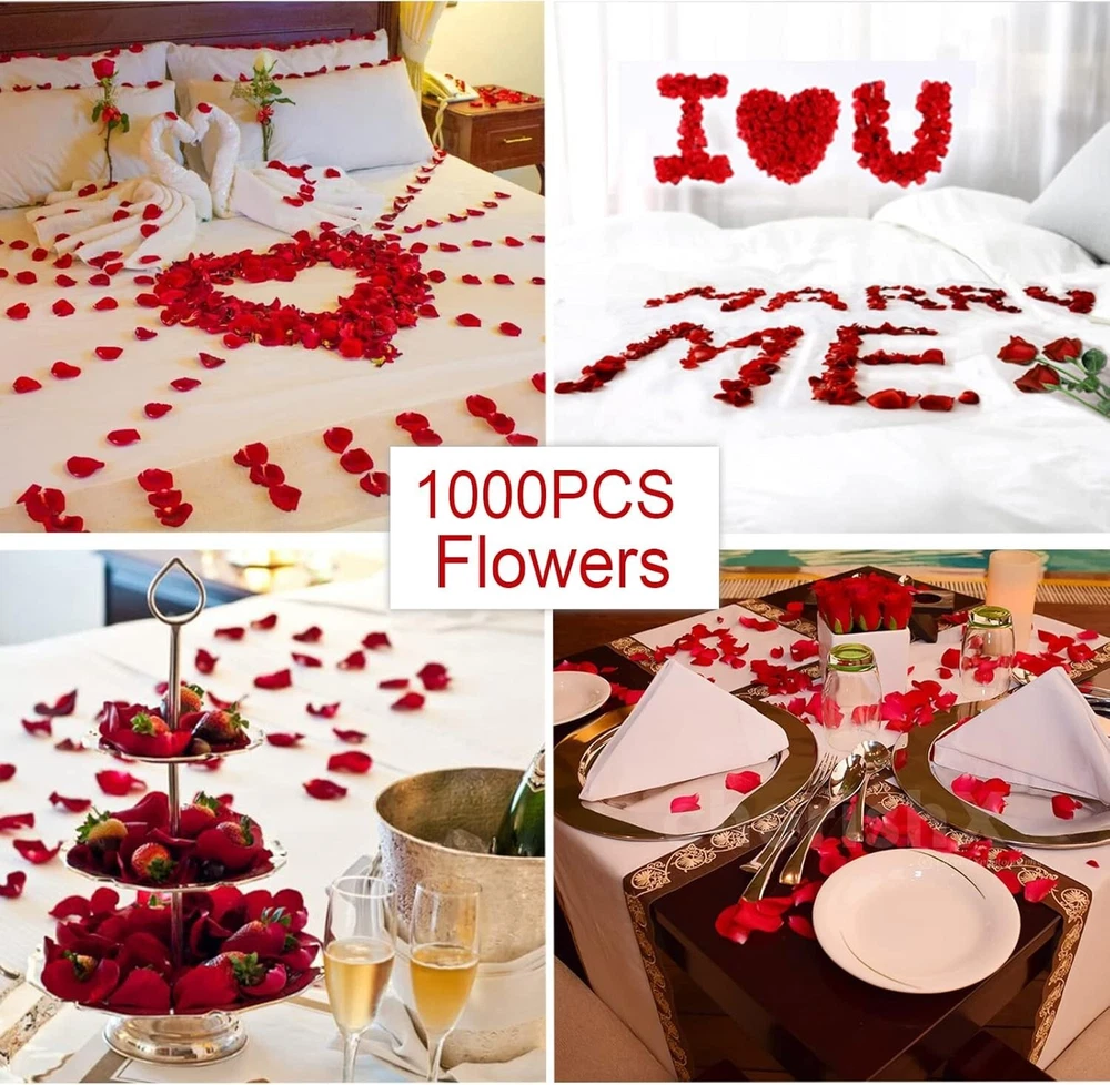 The product is a set of 49 Valentine's Day balloons and a teddy bear, featuring a romantic theme perfect for decorating for the occasion. The balloons are made of aluminum, latex, and polyester in a red color, measuring 8.9 x 7.68 x 2.2 inches. The set also includes a teddy bear character, adding an adorable touch to the decorations. This item is lightweight at 8.4 ounces, making it easy to set up and display in your home for a romantic Valentine's Day celebration. Romantic Decorations for Special Night - Do you want to organize a surprise party on Valentines Day to show your love to her/him? Light up the event with this I love you balloons and heart balloons set! Create a romantic moment for your lover enjoy a sweet anniversary! Valentines Day Balloons Set - Include I LOVE YOU Letter Foil Balloons, 1PCS 23’’ Big Teddy Bear Balloon, 6PCS 18’’ Red Foil Heart Balloons, 2PCS 36’’ I Love U Foil Balloons, 20PCS 10’’ Red Heart Balloons, 6PCS 12’’ Red Balloons, 6PCS 12’’ White Balloons, 4 Rolls Red Ribbons and 1000PCS Silk Rose Petals. Meet your romantic decor needs and start a deluxe Valentine's Day party. 1000 PCS Silk Rose Petals - Made of high quality polyester silk material. Petal measure is 2'', Durable and not fade. Realistic Rose Petals is important supplement to your Valentine's Day, anniversary, wedding, and romantic special night, enhancing the romantic atmosphere even more. High Quality Balloons - These Valentines Day balloons are made of reliable aluminum film or latex material that will not leak easily. All balloons support helium gas filling. Red ribbon is used to tie the balloons, Heart-shaped balloons float on the ceiling to create an unforgettable romantic special night for you. I Love You Balloons and Heart Balloon Set perfect for Valentines Day, romantic special night, wedding, anniversary or proposal decoration. With heart balloon and petals to realize your planned romantic party space to surprise her/him.