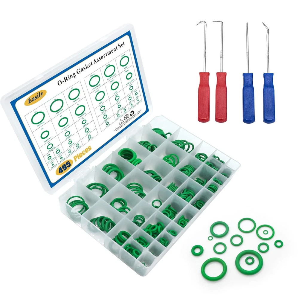 495 PCS SAE Metric & Inch O Ring Kit with 4 PCS O Ring Pick & Installation Remo