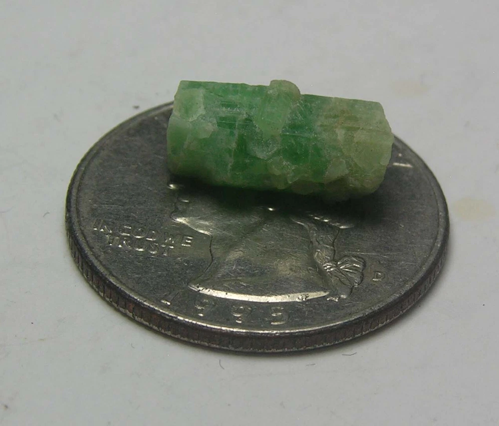 Natural, there is ONLY ONE ( 1 ) stone in this listing, photos show different angles of the stones , you are bidding on exactly what seen in the photos, PHOTOS SHOW THE ACTUAL STONE, NOT ACTUAL SIZES, please READ AND UNDERSTAND SIZES, bid accordingly and refer to the size and weight of the stone . We put a QUARTER in a photo for comparing the sizes of the specimen. Quantity : 1 Gem Type : Emerald Maximum Size : 14.00mm X 7.00mm X 6.00mm or 9/16 in X 5/16 in X 1/4 in - Note 1 inch = 25.40mm Clarity : Opaque to Semi-Translucent Shape : as seen Treatment : None Color : Green as seen Total Weight : 4.95ct or 0.95g Original : Ha Giang Province - Vietnam Shipping & Handling : $5.00 in the US, all other countries $18.00 (TRACKING WITHIN THE US ONLY), combine shipping with highest shipping + $1.00 for EACH next winning item. ATTENTION : if you are bidding on multiple auctions, please DO NOT pay until you have finished with the last listing. I will allow 7 days between purchases or up to 40 items per invoice, after that you will have to start a new shipment and if you pay for each item or invoice separately, I will not combine shipping after paying, please ask for an invoice before paying Payment : Accept credit cards through Paypal, will wait 7 days for payment or re list the item. Thank you for viewing & bidding from Vietrocks