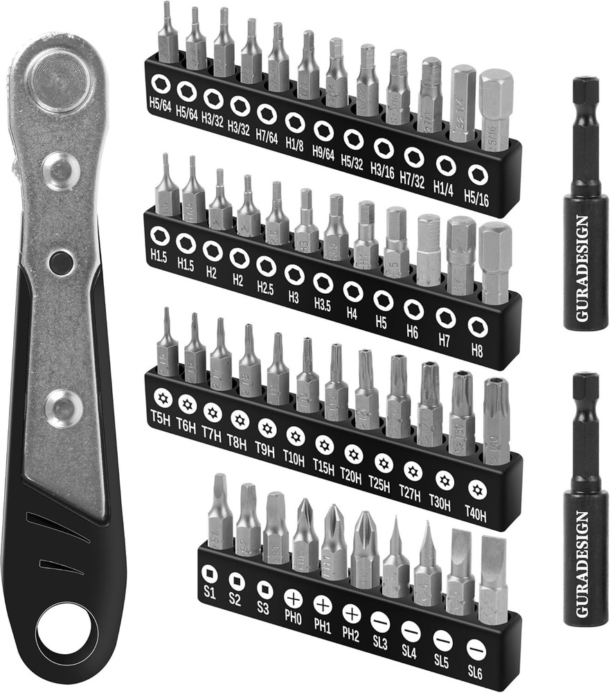 49-Pack Screwdriver Bit Set Hex Head Allen Wrench Drill Bit Set Torx Square USA Item Length: 4.3 Inches Material: S2 Steel Drive System: Hex, Square Number of Pieces: 49 Durable S2 Steel Bits:The screwdriver bits are made of high-quality S2 steel with excellent hardness. Dual-Purpose Ratchet Wrench:The 4.3"long ratchet wrench is assembled with a 36-teeth reversible ratchet system which provide high torque and precise adjustment,working in both directions. Both sides of the wrench are magnetized strongly for holding the bits. Universal 1/4" Extension Bit Holder:This magnetic bit holder is super magnetic with good adsorption, grab bits and fasteners securely,not easy to fall off during the process. Daily Need Bits Set:Hexagon SAE(5/64*2,3/32*2,7/64,1/8,9/64,5/32,3/16,7/32,1/4,5/16),Hexagon Metric(H1.5*2,H2*2,H2.5,H3,H3.5,H4,H5,H6,H7,H8),Temper-Proof Torx(T5,T6,T7,T8,T9,T10,T15,T20,T25,T27,T30,T40),Phillips(PH0,PH1,PH2),Slotted(SL3,SL4,SL5,SL6),Square (S1, S2, S3). Widely Application:Suitable for automotive, furniture, industrial use, electronics installation/repairing ,DIY home improvement ,can be used with electric screwdrivers, hand screwdrivers and different drills. Return Policy: We offer a 30 day return policy from the receiving date. Please contact us for a Free Return Label. Please use our return label so it will go back to our supplier and we can do a refund or replacement afterwards. Feedback: Your satisfaction is very important to us! If you have any problem with your order, please contact us and we will do our very best to make you satisfied. As long as you are happy with your purchase, please leave a positive feedback for us. We will always leave you a positive feedback in return. If you have any problem with your purchase, please do not leave a negative feedback. Please Contact us ... and your issue will be solved quickly and positively We are a small family-owned business trying to make a living, not a huge company that does not care ... We will ALWAYS do our best for you!