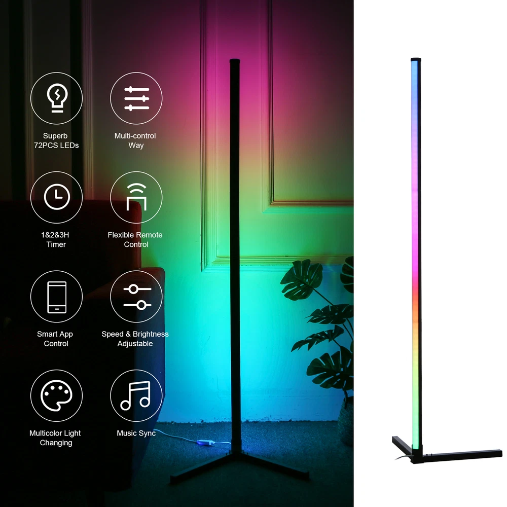 49inch RGB LED Corner Floor Lamp Ambient Light App DIY Dimmable Music Sync Z1D9