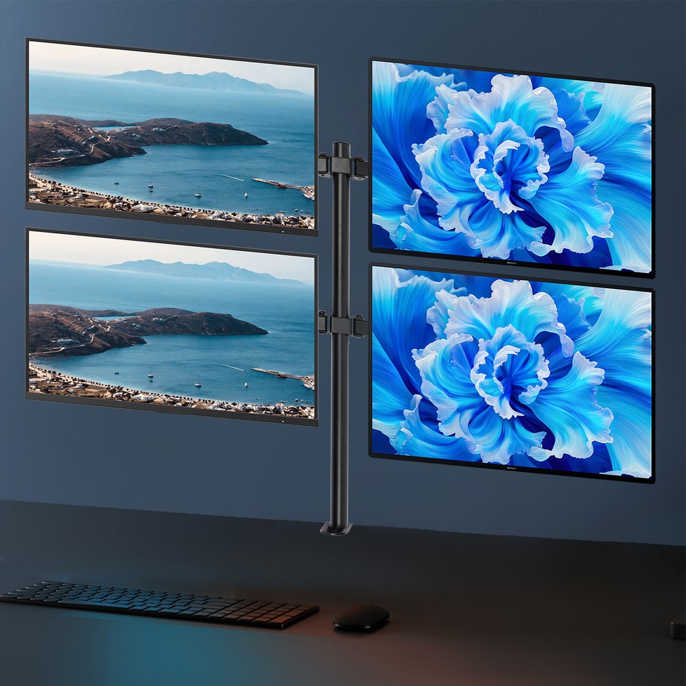 4-arm Heavy Load Screen Bracket 10-27 inch Screen Display Monitor Stand Mount Description Are you still struggling with neck pain caused by long hours of computer-watching at work? Our display bracket can solve your troubles. The combination of high-quality material and exquisite craftsmanship makes it sturdy and durable. Its height and tilt angle can be adjusted, making it comfortable for you to work. It can install 4 displays and allows you to freely choose multiple screen combinations, allowing you to work efficiently. The powerful load-bearing capacity allows you to use it with confidence. Anyway, it's your office assistant! Key Features Sturdy and Durable: Made of cold-rolled steel with an electrostatic spraying process, this product is corrosion-resistant, wear-resistant , and sturdy, ensuring your long-term use. Comfortable User Experience: The height is adjustable from 0 to 15.75 inches, the horizontal and vertical screens can rotate 360°, and the tilt angle can be adjusted up to ± 90°, allowing you to find a comfortable sitting position and relieve neck pain and eye fatigue. Multiple Combination Methods: You can choose multiple screen combination methods (vertical+vertical, horizontal+horizontal, vertical+horizontal, both inside and outside). It can install 4 display s (not included), allowing you to type code, read documents, check data, and work efficiently at the same time. Strong Load-bearing Capacity: The thickened steel pipe and reinforced joint head enable each arm to firmly support 19.84 lbs without shaking, allowing you to use it with confidence. Assembly in a Breeze: The simple structure and complete accessories allow you to easily and quickly assemble this product, which is easy. Easy to Clean: It has a smooth surface and a simple structure, so you only need to wipe the dust with a towel after use. Protective Packaging: The sponge provides comprehensive protection for products to ensure that it is fully delivered to you to the greatest extent possible. Nice Gift: This practical product is a great holiday or housewarming gift for family, friends, and lovers so that they can enjoy more convenient work. Details Small Clamp: It supports the stability of the product and effectively saves desktop space. Smooth Edge: The rounded and smooth edges not only add to the aesthetics of the product but also improve the safety of use. Application It is suitable for fixing displays in offices. It is suitable for 10-27-inch displays with 75x75mm and 100x100mm mounting holes. It is suitable for children, women, men, office workers, students, etc. Specification Style: Modern Color: Black Material: Cold-rolled Steel Process: Electrostatic Spraying Assembly Required: Yes Mounting Tyрe: Tabletop Mount Compatible Devices: Monitor Fit Number of Monitors: Four Adjustable Angle(Up and Down): ±90° Horizontal and Vertical Display Rotation Angle: 360° Each Arm Load-bearing Capacity: 9kg/19.84lbs Adjustable Height: 0-40cm/0-15.75in Applicable Display Size: 25.4-68.58cm/10-27in Applicable Maximum Desktop Thickness: 12cm/4.72in Display Installation Hole Spacing : 7.5*7.5cm/2.95*2.95in, 10*10cm/3.94*3.94in Table Clamp Size(L*H): 5*7cm/1.96*2.76in Middle Pole Size(D*H): 3.5*80cm/1.38*31.5in Package Size: 84*14.7*8cm/33.07*5.79*3.15in Gross Weight: 4.8kg/10.58lbs Net Weight: 4.5kg/9.92lbs Package Included 1* Display Bracket 2* Allen Keys Other Accessories for Installation Notes The product can rotate 360° when unloaded, but due to differences in display size and weight specifications, the rotation angle may vary. About the desk, we recommend wooden desktops. Please do not pull monitors too far forward or backward unless the stand is bolted down, as this will cause stability issues. The product design angle is 90°, but due to factors such as display size and installation environment, the actual adjustable angle is less than 90°. Please note that this product does not include a display. Please note that the applicable standards for flat/curved displays depend on whether there ia standard hole spacing on the back of the displays (75x75mm and 100x100mm mounting holes). Please allow the slight color difference caused by the shooting light and 1-3cm error due to manual measurement, and make sure you do not mind before you order. Payment Delivery details Terms of sales About us Contact us Payment We accept ebay payment 。 Fees such as import duties, taxes are not included in the item price or shipping costs. These charges are the buyer's responsibility. Delivery details Shipping: 2-9 working days to: USA Terms of sales We maintain high standards of excellence and strive for hundred percent customer satisfaction. Feedback is very important to us. We hope that you contact us immediately before you give neutral or negative feedback, so that we can address your concerns. It is impossible to address issues if we do not know about them! About us Your satis faction is our ultimate goal. We work hard to earn your trust and future business. Our certified technicians have tested each item before shipping. The unit comes with 1 year limited warranty on all manufacturing defects. a) If you receive a defective item, you may return it or ask for a discount. Please contact us within 14 days after you receive the package. b) What you returned must be intact and in its original packaging as re? u. Customer is responsible for shipping costs of the returned item. c) We will cover the cost of shipping back t with the shipping rate indicated in the registration page. We will send you a new unit or refund the full payment you paid. Thank you. Contact us Business Hour Business Hour: Monday To Friday: 8:30 AM to 5:00 PM (Beijing China time) Due to time zones, our reply to your questions may not be immediately. But within above working time, we will reply your email within 24 hours. If it's non-workdays, please kindly be patient and wait till Monday. Please contact us with ebay message. Please feel free to contact us if you