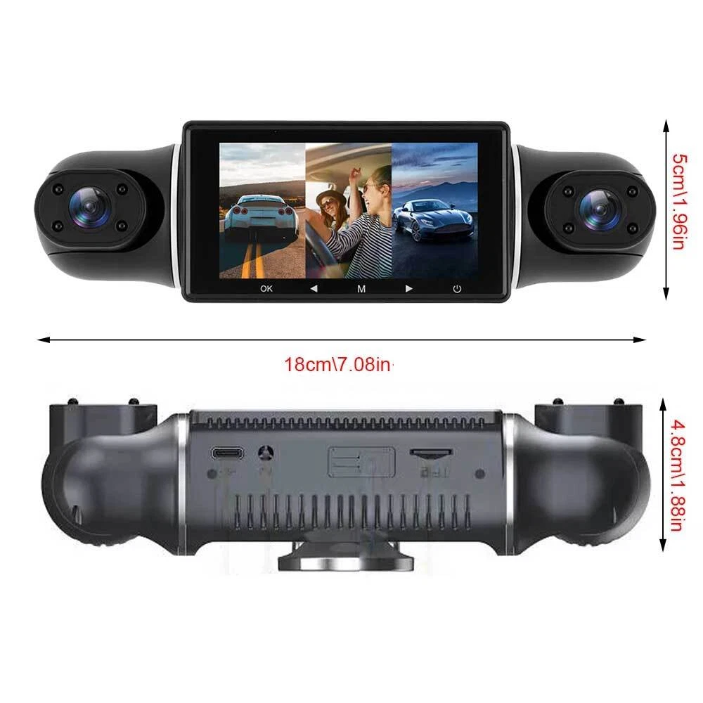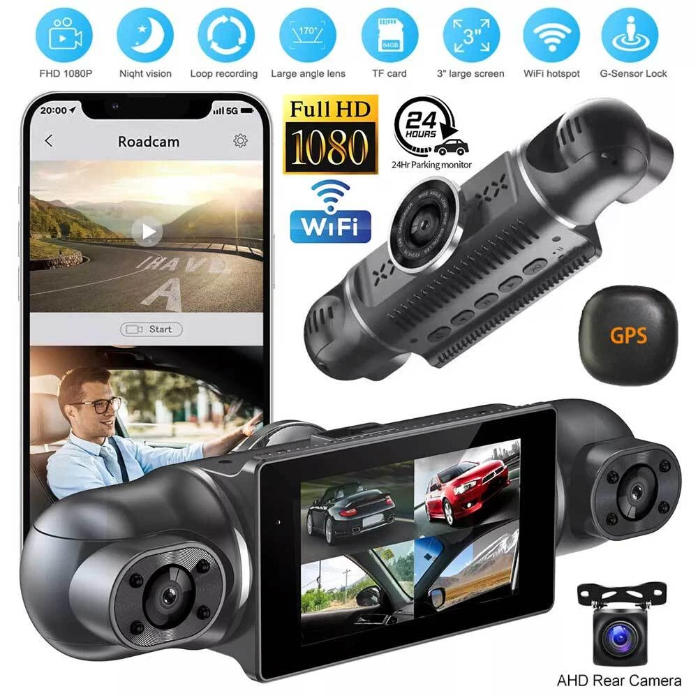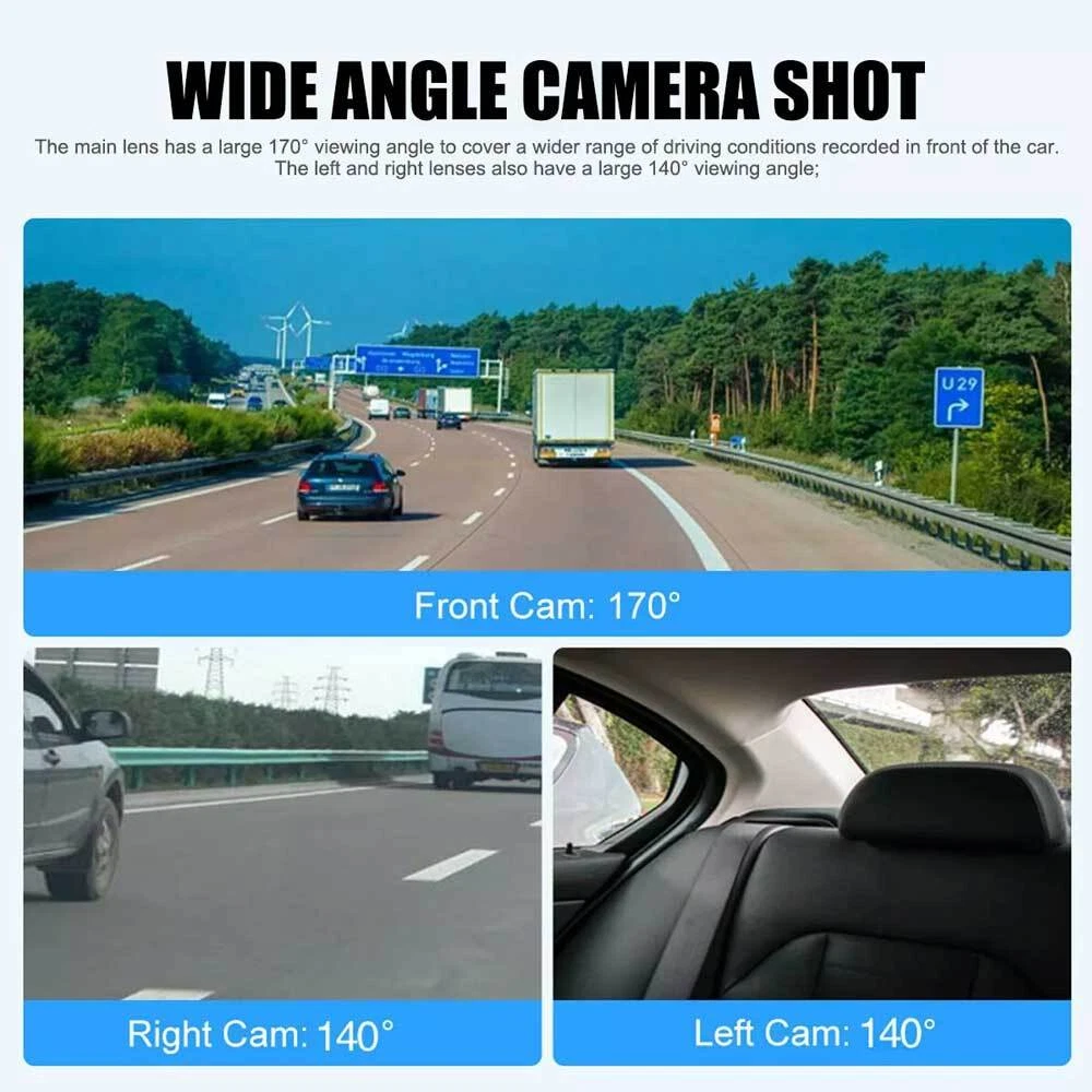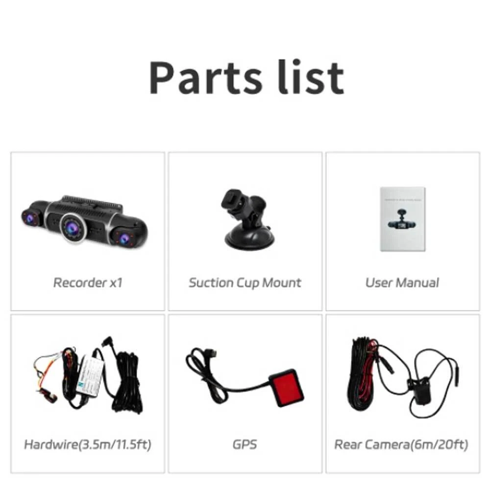 TF card: includes 64GB TF card Power interface: 5V 2.5A Photo Format: JPG Screen Size: 3 in Color: Black Max External Memory: Max 64 GB, Class 10 or Above (Not Included) Loop Recording: 1min/3min/5min/off Screen Display: LCD Type: Dash Camera Mic: Support G-sensor: Built in Screen/Monitor Type: Front & Cabin & Rear camera Features: Auto On/Off, date and time, Display Screen, Dual Lens, DVR, Full HD, G-sensor (motion detection) Video Format: MP4 Camera Connection Type: Wireless Frames Per Second: 30 fps Manufacturer Part Number: Does Not Apply View angle: 170° APP: Roadcam (For IOS, Android) Display Size: 3" Dash Cam UPC: Does not apply Video Code: H.264, MP4 Wifi: Support gtin13: Does not apply Photo Resolution: 20MP Brand: Unbranded