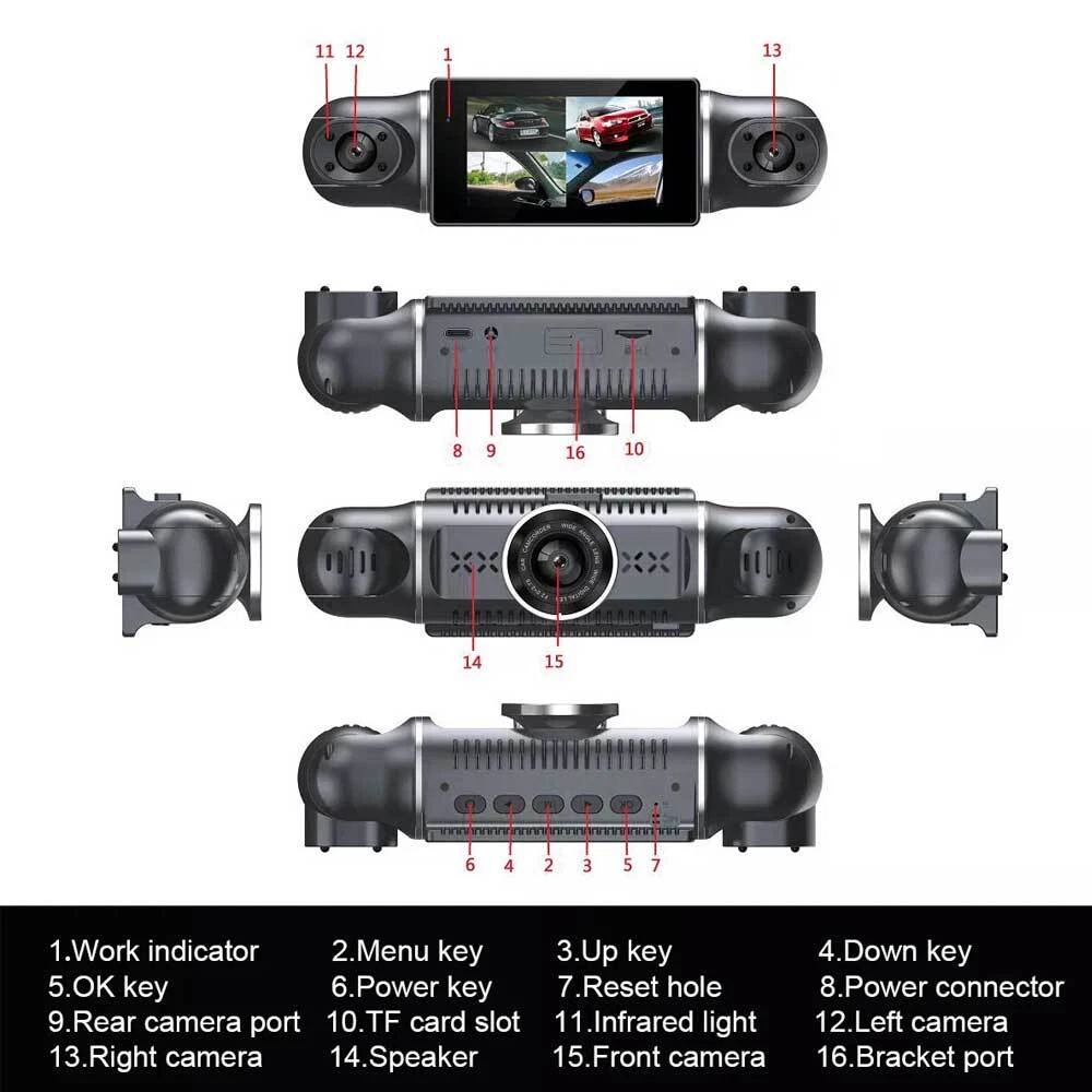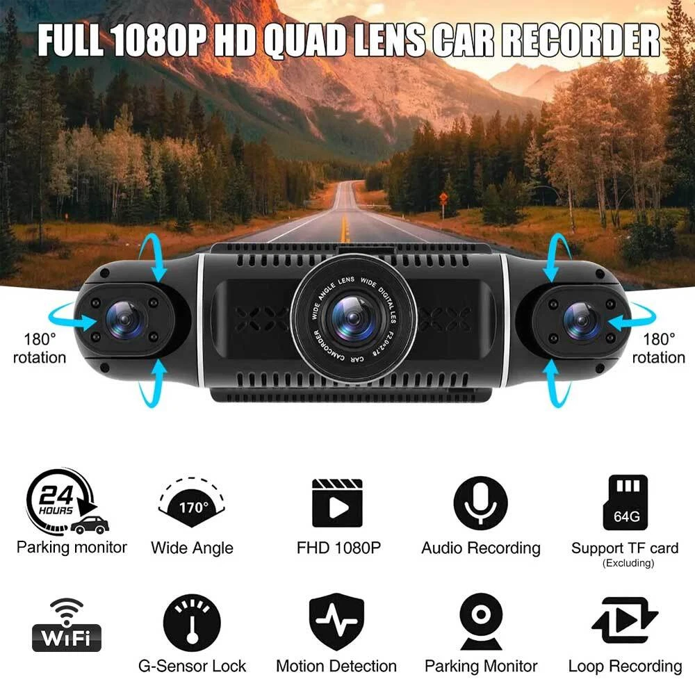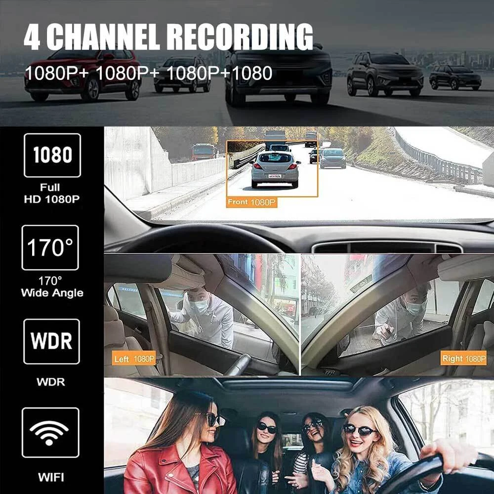 4-Channel Car DVR Dash Cam Video Recorder G-Sensor 1080P Front Rear Cameras 64GB