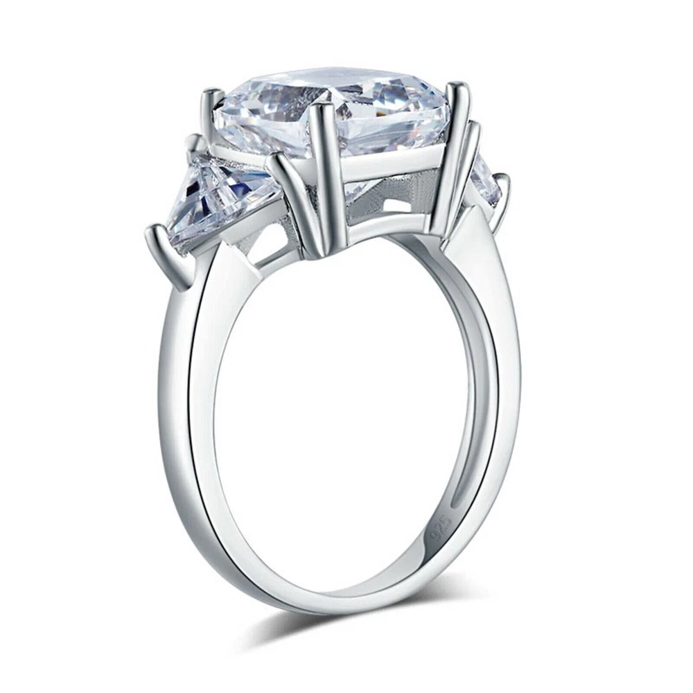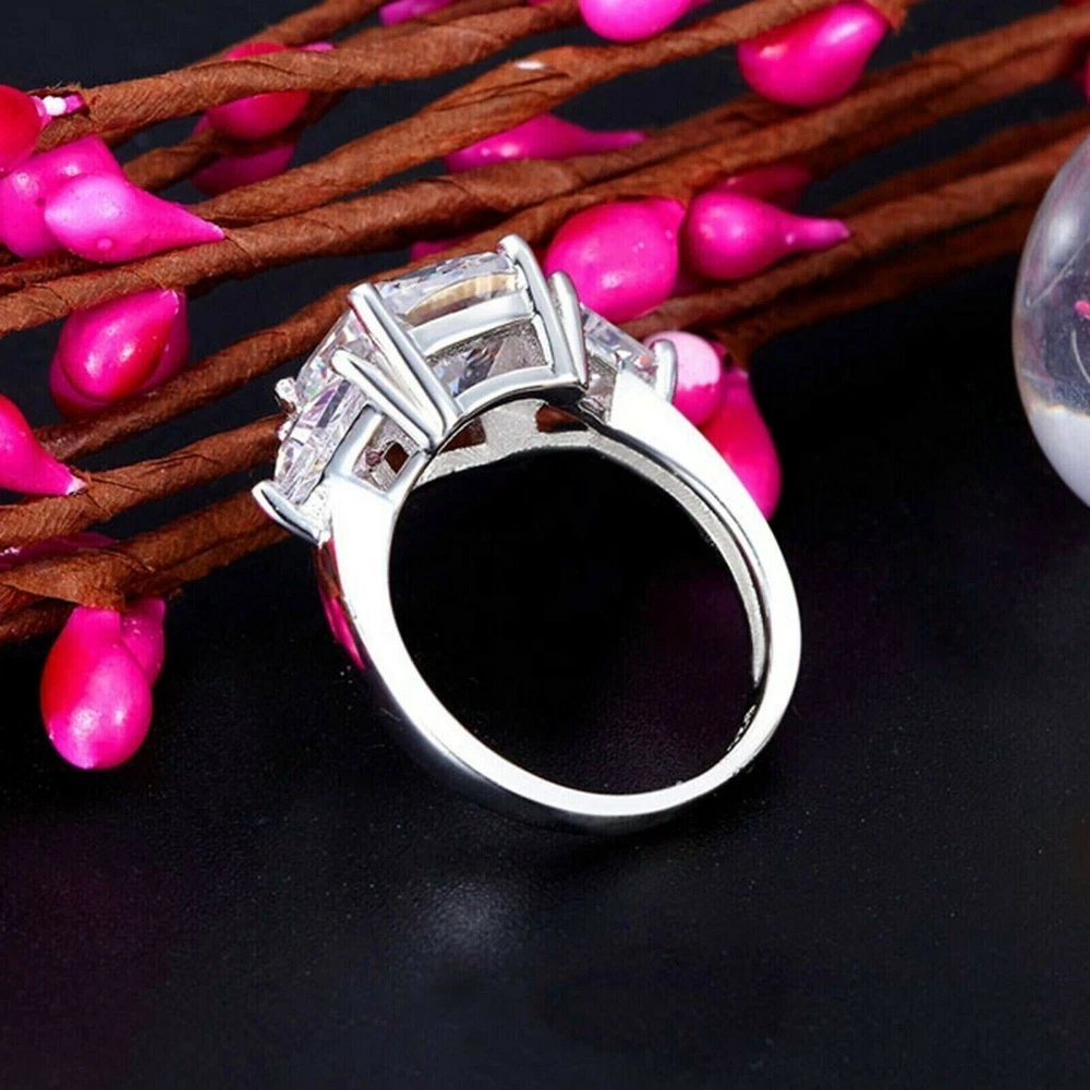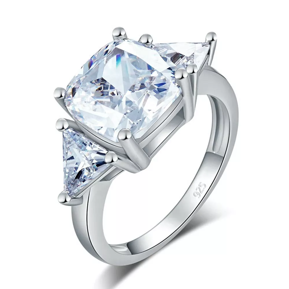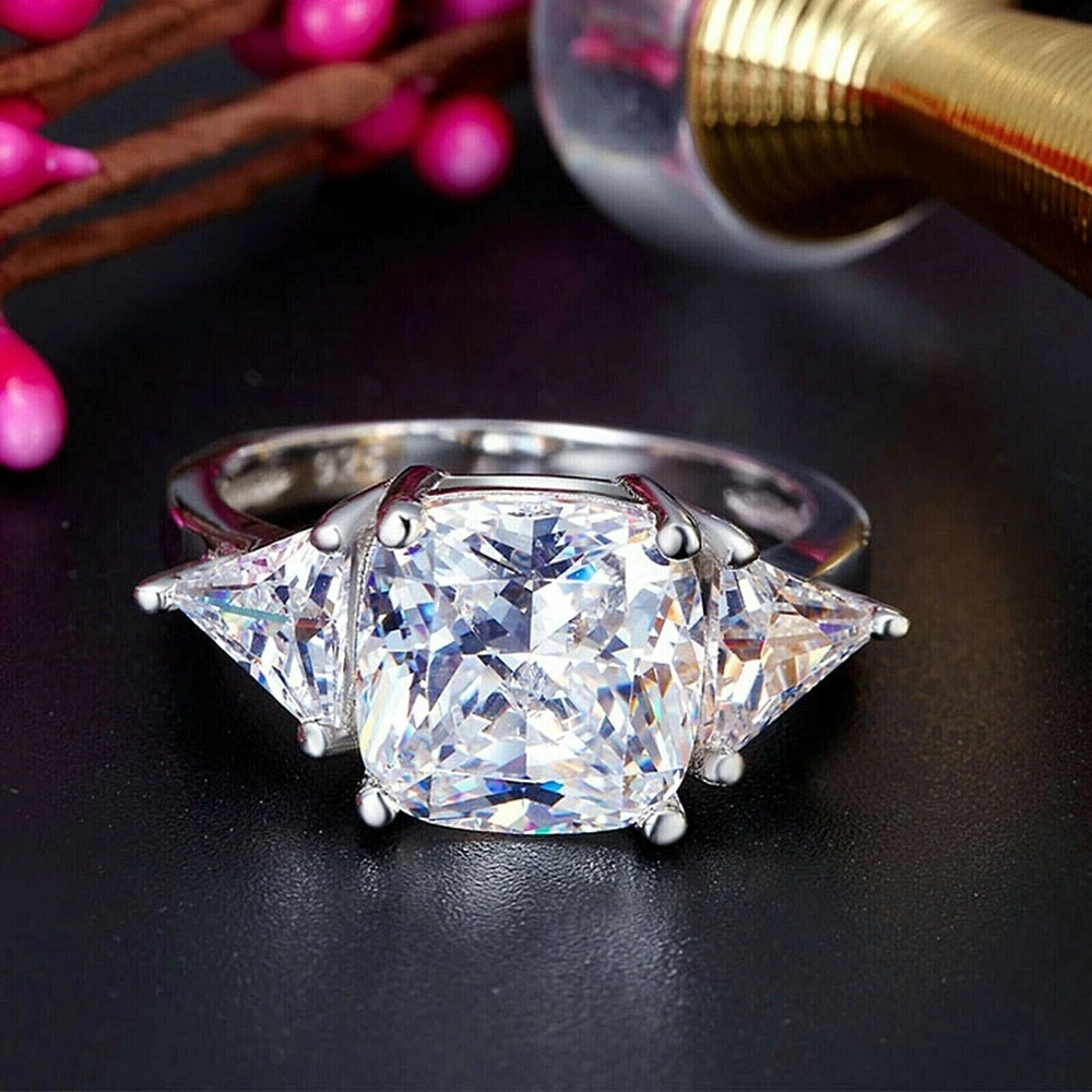 4Ct Cushion Cut Simulated Diamond Three Stone Wedding Ring 14K White Gold Plated