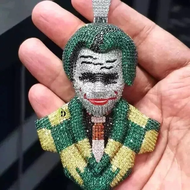 Galaxy_Jewels 4Ct Men's Real Moissanite Joker Face Pendant 14K White Gold Plated Silver ! Buy With Confidence From A Trusted Seller!!! !!! We are here to help you!!! Special care : The White / Yellow / Rose / Black Gold Plating on this item can be effected by many elements. We advise removing this ring when being exposed to any type of substance or chemical. This includes, but not limited to: perfume, hairspray, water, lotions, cleaning products, etc. PAYMENT POLICY 1. We accept payment via Payoneer only. 2. You can also use a credit card for payment by using Payoneer as a guest. 3. Payment is required within 3 days after buying. SHIPPING POLICY 1. We ship worldwide. 2. Handling time is 5 business days after receiving clear payment and ring size confirmation. (Business days excludes Saturdays / Sundays and Public Holidays. 3. Delivery time will be 5-10 working days (which may extend during peak season time). 4. Kindly provide complete address and contact number for hassle free shipping. EXPEDITED SHIPPING Expedited shipping with online tracking and delivery confirmation within 3-5 working days can be availed on request. RETURN POLICY 1 . We accept returns only if there is any manufacturing defect or in transit damage. 2. Refund amount is based on product's price you have purchased for. 3. Please remember to contact us before sending any item back. 4. For incomplete or wrong address we are not liable for any return. 5. If the buyer wants to return the item for his/her own personal reasons ( without any valid reason of item received in damage condition or unless it is defective ) the return shipping charges will be born by buyer. BUYER'S FEEDBACK 1. Your feedback is very important to us. 2. Do remember to give us 5 stars rating if you are satisfied with our product and service. 3. If you have any queries related to the product or service you can expect a reply within 12-48 hours of inquiry. 4. Do contact us before leaving a negative or neutral feedback to get a 100% solution for the dissatisfaction caused to you. CONTACT US Feel Free to contact us for any queries about the product through " Ask Seller a Question " THANK YOU VISIT AGAIN.