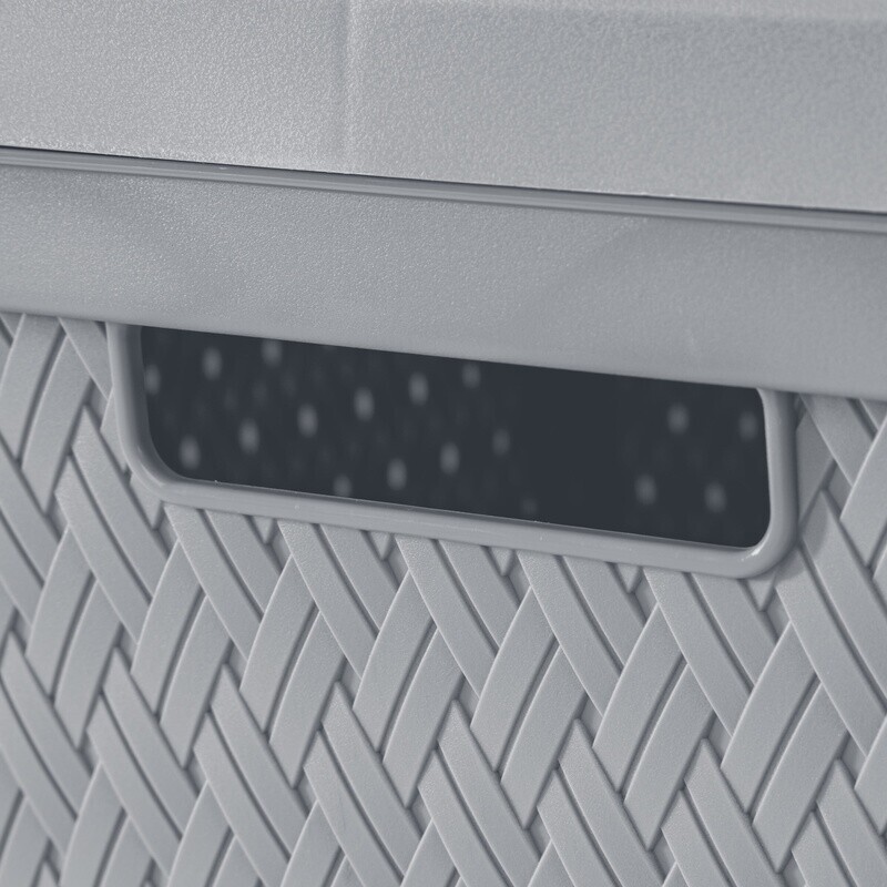 gtin13: Does not apply UPC: Does not apply Features: BPA Free, Carrying Handles, Phthalate free Item Depth: 15.62 in MPN: Does not apply Item Height: 33.25 in Number in Pack: 1 Capacity: 32 gal Type: Storage Box Brand: Unbranded Color: Cement Style: Modern Pattern: Cross Weave Mounting: Free Standing Material: Plastic Number of Items in Set: One-Piece Number of Compartments: 4 Shape: Rectangle Item Length: 15.62 in Item Weight: 12.65 lb Item Width: 21.00 in Model: Does not apply