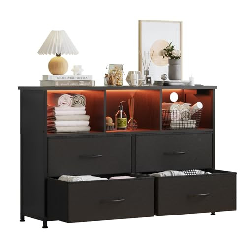 Return Policy Fast Delivery Trusted seller 4-Drawers Dresser with 3 Open Storage Shelves, Fabric Dressers Drawers for Bedroom, Hallway, Nursery, Closets, Steel Frame, Wood Top, Easy Pull Handle (Black) Product Description [ Dimension ] 39"W x 11.8"D x 31.5"H; Dimension of drawers: 17.9"L x 11.8"D x 8.6"H; Dimension of shelves: 12.8"W x 11.8"D x 8.6"H [ 3 Open Storage Shelves Design ] The difference between the Drawer Dresser and other products is that the drawers dresser with 3 open storage shelves design, which can storage items that are frequently used or other things [ Large Storage Space ] 4-drawers dresser that is including 4 large deep drawers and 3 open storage shelves, which can meet your storage needed; All the drawers with handle, which is easy to pull-out the drawers, very convenient [ Sturdy and Durable ] The drawers with strong steel frame, high-grade fabric and waterproof wood top, with foot pad to make sure the dresser drawers stable; the dresser drawer can be use for years indoor; The wooden top is great for your handbag, caps, keys, umbrella, earphone, keeping them in your reach; Can also place plants, vase and cosmetic storage boxes [ Keep Room Tidy ] The storage dresser take full advantage of vertical space, when your messy clothes now to go, stack up and put it into the dresser drawers - wver clutter, tidy soon; Give you a comfortable environment and bright mood Shipping Returns Payment Shipping Shipping is FREE to all addresses other than APO/PO boxes in the lower 48 states. All our stock ships from US-based warehouses. Shipped via USPS or UPS (depending on location and package weight) Unless stated otherwise, all orders will ship within 24-72 hours of your payment being processed. Check our feedback to see the great reviews of FAST shipping we offer. Returns Seller does not accept returns Payment We currently accept payment via eBay managed payments only. Once payment is cleared, we will dispatch your shipment within 1-3 business days. Please refer to the "Shipping" tab for more information regarding shipping speed to your destination.