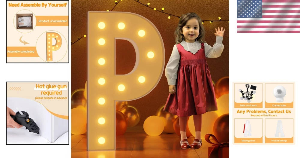 4FT Eye-Catching Marquee Letter P with Light String - Effortless Assembly ‹ › ‹ › ‹ › ‹ › ‹ › ‹ › ‹ › ‹ › 4FT Eye-Catching Marquee Letter P with Light String Transform your event into a mesmerizing ambiance with our stunning ! Designed to be the focal point of any celebration, this marquee letter embodies elegance and fun. Key Features: Effortless Assembly: Crafted from lightweight foam board, our marquee letter is easy to assemble with our user-friendly splicing mode. Simply follow the numbered instructions, secure the bottom plate, and reinforce with a hot glue gun — completion is just moments away! Equipped with Light String: Each marquee letter comes with a matching light string, ensuring compatibility and simplifying setup. Say goodbye to the hassle of mismatched lights! Ideal for Any Party Scene: At 4 feet tall, our marquee light letter is a fantastic addition to birthday parties, weddings, baby showers, and more. It effortlessly creates the perfect atmosphere for your chosen event. Unique and Eye-catching: Make a statement with the large, illuminated design of our marquee letter, guaranteed to impress guests and add a distinctive flair to your party décor. High-Quality Customer Service: We prioritize your satisfaction, offering responsive after-sales service to address any inquiries within just 8 hours. Why Choose Our ? Are you ready to elevate your next event with a touch of glamour and creativity? Our 4FT Eye-Catching Marquee Letter P is not just a decorative piece; it's a memorable experience for you and your guests. Its impressive height and radiant lighting create an unforgettable backdrop, while the effortless assembly process makes it easy to bring this vision to life. Celebrate in style — secure your today and let the festivities shine bright! Shipping Free & Fast Shipping - We offer free shipping to most of the USA with a normal delivery time of 3-7 days. However, due to the current situation, additional delivery time (up to 3 weeks) may be required for some items. Alternative Carriers - We may use alternative carriers (e.g. USPS, FedEx, UPS, etc.) to ensure your package arrives safely and on time. Due to the use of multiple carriers, we are unable to provide a tracking number automatically. Handling Time - Orders are processed and shipped within 1-2 business days of receiving cleared payment. Shipping Restrictions - Shipping to Alaska, Hawaii, Puerto Rico, Guam, and other US territories may incur shipping charges or delivery restrictions. Please contact us before ordering, or your order can be refunded/cancelled. State Restrictions - There may be restrictions based on your state of purchase. For example, certain items may not be shipped to California due to state regulations. Contact for Tracking Updates - If you require tracking updates or have any concerns about the delivery of your order, please feel free to contact us, and we will be happy to assist you. Return 30-Day Hassle-Free Returns - We want you to be completely satisfied with your purchase. If you are not, you can return the item within 30 days of receiving it for a full refund or exchange. Easy Return Process - To start a return, simply contact us and we will provide you with a prepaid return shipping label and detailed instructions. Restocking Fee - There are no restocking fees for returns. However, the buyer is responsible for return shipping costs if the return is not due to a seller's error. Refund Processing Time - Refunds will be processed within 5 business days of receiving the returned item in its original condition. Payment We accept all major credit cards, PayPal, and Apple Pay for your convenience. Your payment information is secure and encrypted to ensure a safe and seamless transaction. Please complete your payment within 3 days of purchase to avoid any delays in shipping. Feedback Your feedback is extremely important to us. We strive to provide the best products and customer service possible. If you are satisfied with your purchase, please take a moment to leave us a positive review. If you have any concerns or issues with your order, please contact us before leaving negative feedback. We are committed to resolving any problems and ensuring your satisfaction. Contact Us If you have any questions or concerns, please feel free to reach out to our customer support team. You can contact us through the eBay messaging system. We are available Monday to Friday, 9:00 am to 5:00 pm EST, and we will do our best to respond to your inquiry within 24 hours. Buy it now and enjoy a pleasant shopping experience! UPC: Not Set Unit Quantity: 4 ft Material: Foam,Rubber Theme: Alphabet Room: Any Room,Indoor Features: Hanging,Illuminated,LED Mounting: Free Standing,Hanging Department: Kids,Teens,Adults Character: Not Set Care Instructions: Clean with Damp Cloth,Easy Care Type: Light Up Letters Brand: Unbranded Style: Modern Subject: Lettering Shape: Letter Pattern: Not Set Finish: Glossy Color: White Size: Large MPN: Not Set Character Family: Not Set Country/Region of Manufacture: Not Set Orientation: Vertical Item Height: Not Set Item Width: Not Set Item Length: Not Set Battery Type: Rechargeable Alkaline Model: Not Set Item Weight: 2.27 lb Unit Type: lb Personalize: Not Set Vintage: Not Set Handmade: Not Set Additional Parts Required: Not Set Engraved: Not Set Customized: Not Set