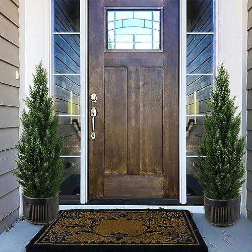 Return Policy Fast Delivery Trusted seller 4FT Artificial Topiary Tree Beautiful Realistic Faux Cedar Pines Christmas Trees UV Rated Fake Shrubs for Front Porch Faux Plants Indoor and Outdoor Decor (2 Pack) Product Description Realistic Artificial Topiary Trees - A fabulous set of 4 upgraded quality faux trees. Perfectly modeled after lovely cedar and pine trees that grow wild in many parts of the US and Canada. These look like the real thing, but never require planting, water, fertilizer, or trimming. Simply set them out and enjoy. No need to place plastic bags over your cedars in winter like the neighbors. Extra Tall 4 Feet - These measure a tall 48" from bottom to top with a lush green appearance that always pleases. Trees are compactly packed in a thicker box for safe shipping. Set them out and allow a day or two for the branches to expand to their natural full look. Perfect for front yard, in planter boxes, along a walkway or driveway, or set indoors for a year round Christmas tree to add life and natural energy to any room. Durable 7" Pot - We go the extra step of making our pots larger, much thicker, and far more durable. Pots won't arrive cracked like those sold elsew. These heavier pots are stable and won't tip like others. They are ideal for placing inside your fancy stone or wood planter. UV Resistant for Years of Enjoyment - Made of top quality plastic to last and look good for 3-5 years of impressive decoration depending on your local climate. You can set them and forget them with no gardening or green thumb required. Great Gift Idea - Makes a fun gift for anyone who wants to decorate their yard with easy natural looking faux trees and greenery. We use a thicker, higher quality pot and ship in a well packed heavy duty box. If your product arrives damaged, please contact us immediately for a no-cost resolution. Many people are buying several 2-packs of trees to fully decorate their yard. They are selling fast after being spotlighted by professional landscapers as a great value. Shipping Returns Payment Shipping Shipping is FREE to all addresses other than APO/PO boxes in the lower 48 states. All our stock ships from US-based warehouses. Shipped via USPS or UPS (depending on location and package weight) Unless stated otherwise, all orders will ship within 24-72 hours of your payment being processed. Check our feedback to see the great reviews of FAST shipping we offer. Returns Seller does not accept returns Payment We currently accept payment via eBay managed payments only. Once payment is cleared, we will dispatch your shipment within 1-3 business days. Please refer to the "Shipping" tab for more information regarding shipping speed to your destination.