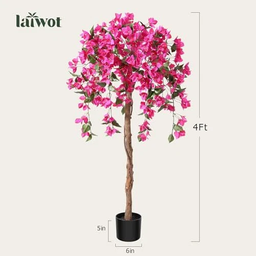 This lifelike 4FT faux bougainvillea tree is stunning! The pink flowers and wooden trunk look so natural—perfect for indoor or outdoor spaces. Easy to reshape, it instantly brightens any room. Lightweight yet sturdy, and the seller delivers fast. Absolutely love it—great quality for the price!