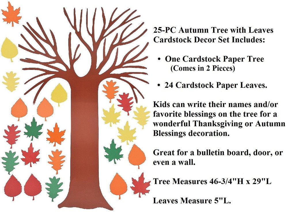 Large 4-Ft Cardstock Tree of Thanks w/ Write-On Fall Leaves Wall Decor Kit #133 Large 4-Ft Cardstock Tree of Thanks w/ Write-On Fall Leaves Wall Decor Kit #133 Click images to enlarge Description Large 4-Ft Cardstock Tree of Thanks w/ Write-On Fall Leaves Wall Decor Kit. Looking for a creative autumn activity for your whole group of kids? With 24 leaves for kids to put what they're thankful for on the tree, this bulletin board display makes a fun-filled DIY project they can enjoy all autumn long. Perfect for a door or wall, too. Details: Set of 25 Pieces 1 Tree Frame 24 Leaf Accents Tree Measures 46-3/4"Long x 29"High Each Leaf Measures 5"Long Made of Cardstock Note: Write Kids' Names or "Thanks For" Info on Leaves for a Personalized Touch ~Buy more than one item at the same time from our eBay store and save in shipping costs!~ (If buying different items, just put them all in your cart before paying, to get the combined shipping discount!) Shipping We use UPS SurePost, UPS, USPS and FedEx SmartPost to deliver our products to your home, depending on which method is more efficient for your order. We use suppliers for some of our orders and our suppliers will choose the service that is used for these orders. PLEASE MAKE SURE YOUR ADDRESS CAN BE VERIFIED BY USPS. Please allow 7-10 days for the item to reach your home. We cannot be responsible for items shipped to incorrect or incomplete addresses, which may result in the cancellation of your order. YES, we do combine shipping! The highest shipping cost item ships at regular price, and each additional item ships at $2.00 more in additional shipping charges. If you are buying several different items from our store, put them all into your cart before paying to get the combined shipping discount. Terms of Sale Unless otherwise noted, we accept returns up to 30 Days after your purchase, through the eBay Returns System. Please use eBay to contact us if there is any problems or issues with your order. In some cases, we order the item purchased from one of our suppliers, and it is shipped directly from our supplier to the customer. There are times when an item unexpectedly becomes unavailable from our supplier. We do our best to check on all of the items availability several timea a day. If an item is unexpectedly unavailable, we will issue a refund immediately. Contact Us Please use the message center in eBay to contact us. We check our message box in eBay several times a day. If you have any questions or concerns with your order, please feel free to contact us. We care very much about our customers being 100% happy with their purchases. We would very much appreciate you letting us resolve any issues you may have with your order by contacting us first, before taking any other unnecessary actions. Get images that make Supersized seem small. Showcase your items with Auctiva's Listing Templates! THE simple solution for eBay sellers.