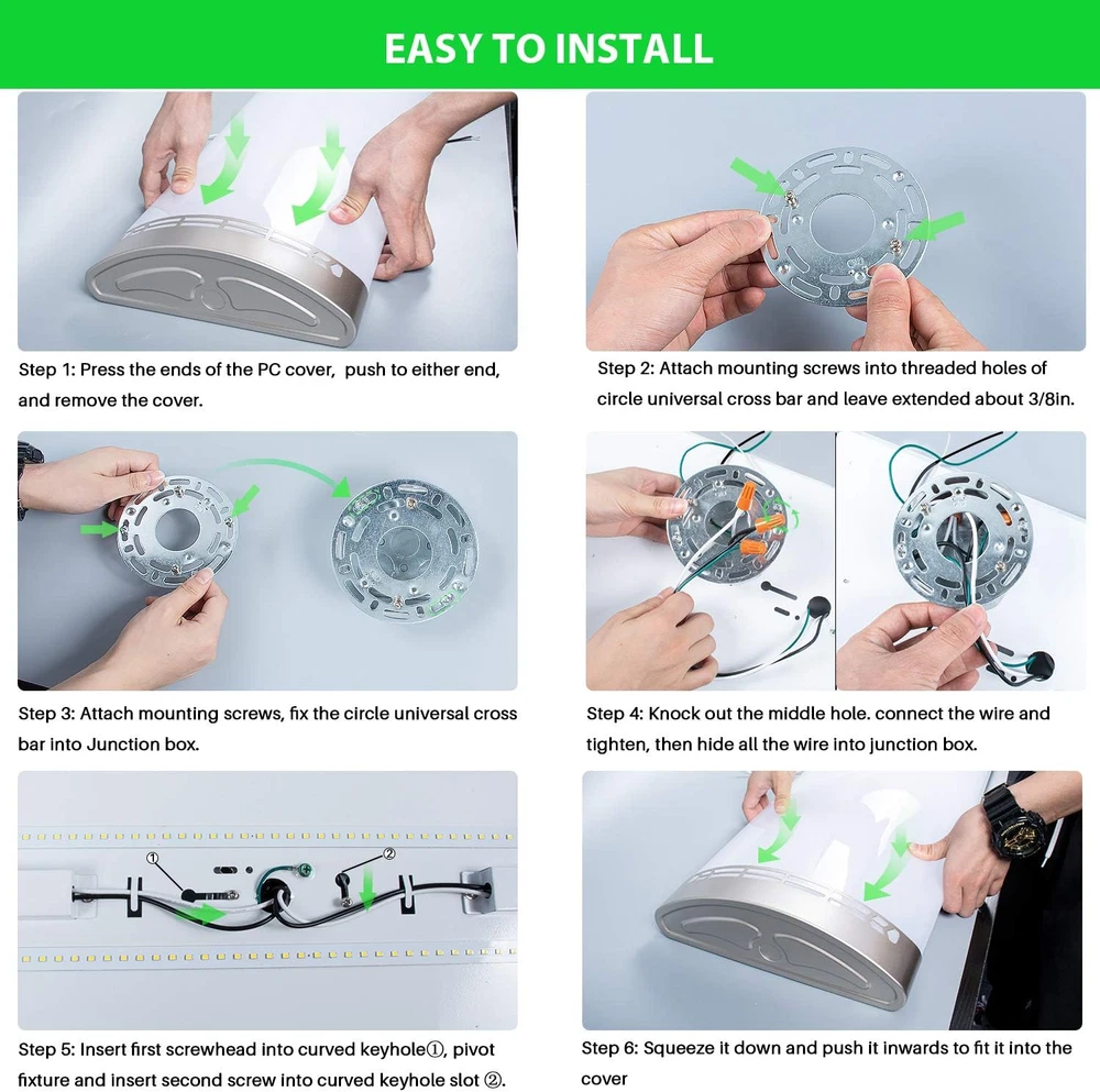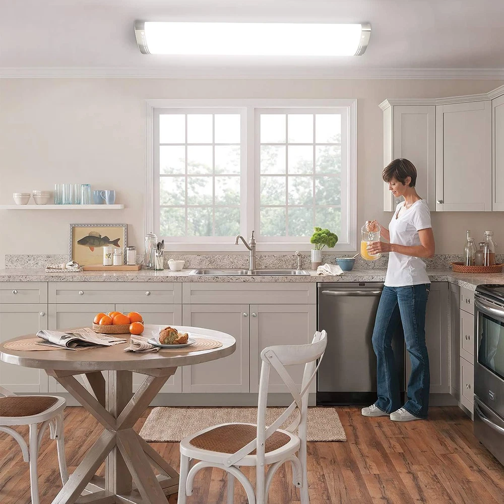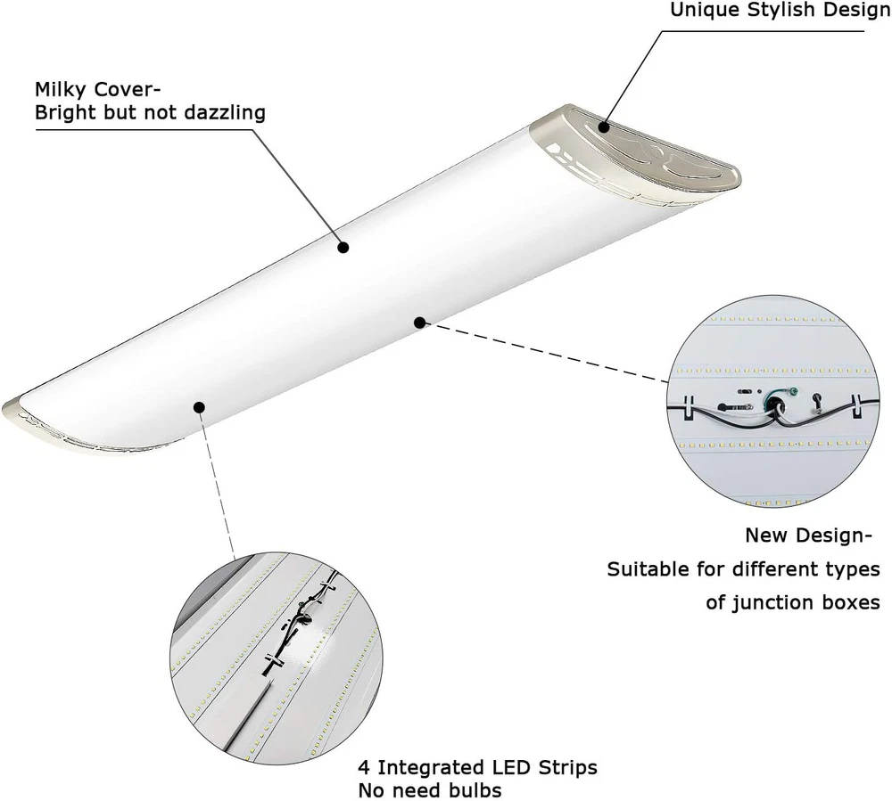 Store New Arrivals Add to Favorite View Feedback Contact 4Ft LED Light Fixtures Dimmable 80W 8800Lm Linear Flush Mount Lights, 4 Foot LED Ceiling Light 4000K Neutral White, Equivalent 250W Fluorescent for Kitchen, Craft Room - 1 Pack Description Item model number SUVELAM Light Source Type LED Style Art Deco Number of Items 1 Power Source Corded Electric Number of Light Sources 4 Control Method App Batteries Included? No Lighting Method LED Mounting Type Flush Mount Controller Type Push Button Unit Count 1.0 Count Room Type Storage Room, Laundry Room, Garage, Kitchen, Basement, Home Office, Hallway Assembly Required Yes Installation Type Flush Mount Product Dimensions 48"L x 10"W x 3.3"H Material Metal Efficiency High Specific Uses For Product Laundry Room, Kitchen, Living Room Included Components 4 high quality integrated LED strips Indoor/Outdoor Usage Indoor Brightness 8800.00 Light Color Neutral White Batteries Required? No Item Weight 8.23 pounds Light fixture form Close to Ceiling Special Features Super Bright, Instant On, Dimmable Special Feature Super Bright, Instant On, Dimmable Part Number 1 Shade Color White Color Temperature 4000 Kelvin Color 4000K Wattage 80 watts Bulb Base GU10 Shape Linear Voltage 120 Volts Plug Format A- US style Recommended Uses For Product Kitchen, Laundry Room, Living Room, Closet, Basement, Garage, Home, Shop, Offices, Craft Room, Hallways, Apartment, Workshops Shade Material PMMA Fixture Type Non Removable Switch Type Push Button COST-EFFECTIVE CHOICE- TychoLite 4ft LED kitchen light fixture 80W outputs 8800 lumens making it the perfect for comparable fluorescent tube light fixtures, 250W fluorescent equivalent. Up to 75% more efficient than conventional lighting equivalents. Energy-efficient and lower heat. Saving your electricity bill! UNIQUE ELEGANT DESIGN- Has decorative end caps to match other decorations in your room. Featured with a curved milky-white diffuser, 48 inches led light fixture provides uniform illumination, resulting in a light source without glare, dazzle or spot dot, protect your eyes. DIMMABLE- 3 levels of brightness you can choose by wall switch: 100%, 50% and 25%. No need an extra dimmer. It can be used for general room lighting or as a functional work area lights. Ideal for kitchen, laundry room, living room, closet, basement, garage, home, shop, offices, craft room, hallways or apartment and workshops. EASY AND SAFE INSTALLATION- ETL listed. Lightweight construction for easy installation, manual and hardware included. There are four led strips include in each light fixture, maintenance free with no bulbs to replace. Note: Shut off the power before installing. RELIABLE BRAND- We will always stand behind our products with good quality items. If you have any question or suggestion about our 4ft led light, you can to get a satisfied solution from our professional technical department whatever in product or shipping issue. Light up your place with Tycholite LED Lighting. Product Description TychoLite 4 Ft LED Flush Mount Hardwired Ceiling Light Fixture 4 high quality integrated LED strips included, lifespan up to 23 years when on everyday for 6 hours per day, no need to replace bulbs ever, drastically reducing time wasted changing those hard to install tube light bulbs. Cost effective for fluorescent lights, energy saving up to 75%! SPECIFICATIONS OF 4FT LED KITCHEN CEILING LIGHT Wattage 80 Watt Lumens 8800 Lumens Luminous Flux 110LM/W Color Temperature 4000K Neutral White Beam Angle > 120° Color Rendering Index (CRI) RA> 85 Voltage 120V AC Application Kitchen, Attic, Basement, Home etc. Features of TychoLite 4ft led flush mount kitchen ceiling lights Modern and effective design- Adopted advanced LED technology, delivering up to 8800 lumens in the 4 foot length while drawing only 80 watts of power. Super bright but low consumption. Dimmable- No need extra dimmer. 3 levels of brightness you can choose by wall switch: 100%, 50% and 25%. Durable- Constructed with a durable steel housing body and LED rating of at least 50,000 hours, designed for many years of reliable operation. Reduced glare translucent diffusers- Gives off a uniform soft diffused light. Feature eye protection, super bright but not dazzling. Easy to install- Installation is quick and simple when mounting into standard ceiling junction boxes. Widely Application It provides general illumination to bring bright and evenly distributed light into any room or application. Perfect for kitchens, laundry room, offices and corridors, shop, closets and utility work areas. What’s in box? 4ft Led Kitchen Light Fixture(LED strips inside, no need extra bulbs); Mounting Hardware; Install Instructions ABOUT US We offer the best prices around on high quality products. Our E-store includes media such as books, movies, music and games while offering electronics, toys, sporting apparel, clothing, tools, general home, garden items and more. SHIPPING We are always working hard to ensure your package arrives as soon as possible. Please understand that some factors like weather, high postal traffic, and the performance of shipping companies are outside of our control. We offer free shipping to the lower 48 states and ship within 2 business days of payment, usually sooner. We do not accept P.O. Boxes. Please provide a physical address. For shipping outside of the continental USA, we only use eBay's Global Shipping Program.The item is shipped to KY and then sent to the rest of the world. International customers are responsible for all duties and taxes. Continue to check out in order to calculate costs for shipping the item to your country. Messages regarding eBay's Global Shipping Program MUST be directed at eBay EXCLUSIVELY. RETURNS We offer a 30-Day Return Policy on items which you are not completely satisfied with. You have the option for a full-refund or an exchange of the item. No returns are available on items shipped outside of the USA. PAYMENT We accept PayPal. CONTACT US This page 