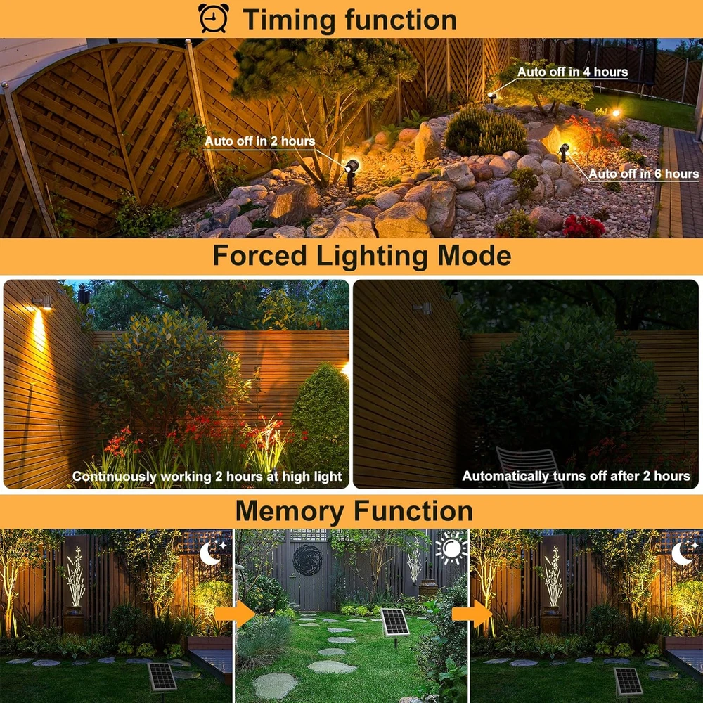 Store New Arrivals Add to Favorite View Feedback Contact 4-In-1 Solar Spotlights Outdoor, 4W/6V Solar Powered LED Landscape Lights, 3 Colors with 3 Brightness, Dusk to Dawn IP66 Waterproof Landscape Spotlights for Garden Yard Driveway Path Description Item model number SL-SP04 Light Source Type LED Style Modern Number of Items 1 Power Source Solar Powered Number of Light Sources 1 Country of Origin China Theme Modern Lighting Method Adjustable Controller Type Remote Control Unit Count 1 Count Room Type Outdoor Switch Type Push Button Product Dimensions 8.86 x 7.64 x 3.86 inches; 3.13 Pounds Material Acrylonitrile Butadiene Styrene Required Assembly Yes Shape cylinder Model Number SL-SP04 Installation Type wall mount Model Name solar landscape spotlights Additional Features IP66 Waterproof solar lights outdoor, dusk to dawn solar spotlights, 2/4/6 hours timing and memory function, garden decoration with energy saving, solar powered landscape lights with remote Specific Uses For Product Outdoor use only Fixture Type Non Removable Brightness 2700K, 4000K, 6500K Kelvin Material Type Acrylonitrile Butadiene Styrene Light Color 2700K/4000K/6500K Water Resistance Level Waterproof Light fixture form Spotlight Item Dimensions L x W x H 8.86"L x 7.64"W x 3.86"H Shade Color White Mounting Type Wall Mount Color 2700K-4000K-6500K Wattage 4 watts Indoor Outdoor Usage Outdoor Batteries 1 Lithium Polymer batteries required. (included) Voltage 6 Volts Shade Material Acrylonitrile Butadiene Styrene Included Components remote control, spikes, screw and user manual, solar spotlights with solar panel Style Name Modern Light Fixture Form Spotlight Solar Powered & Long-lasting: Eco-friendly and cost-effective with solar charging and a working time of over 8-12 hours on a full charge Color Your World: Offers 2700K/4000K/6500K 3 colors with 3 levels of adjustable brightness and flash/smooth mixing modes for creating different moods Smart Automation: Built-in timer allows setting automatic shut-off after 2, 4, or 6 hours, and the memory function remembers your last settings Built to Last Outdoors: IP66 waterproof rating ensures year-round use, and the two mounting options (ground stake or wall mount) make installation a breeze Remote Control Convenience: Control everything from turning lights on/off and adjusting brightness to selecting colors from up to 12 meters Product Description Remote Control Longest remote control distance is 12M, which is more convenient for controlling outdoor lights. 2 Ways of Installation The solar panel and light can be installed in the ground or mounted on the wall with included screws. IP66 Waterproof IP66 Waterproof, it can withstand rainy and other bad weathers. Better to long term use. Please Attention Solar panels should be installed where they are not affected by other lights, or they will not work properly. ABOUT US We offer the best prices around on high quality products. Our E-store includes media such as books, movies, music and games while offering electronics, toys, sporting apparel, clothing, tools, general home, garden items and more. SHIPPING We are always working hard to ensure your package arrives as soon as possible. Please understand that some factors like weather, high postal traffic, and the performance of shipping companies are outside of our control. We offer free shipping to the lower 48 states and ship within 2 business days of payment, usually sooner. We do not accept P.O. Boxes. Please provide a physical address. For shipping outside of the continental USA, we only use eBay's Global Shipping Program.The item is shipped to KY and then sent to the rest of the world. International customers are responsible for all duties and taxes. Continue to check out in order to calculate costs for shipping the item to your country. Messages regarding eBay's Global Shipping Program MUST be directed at eBay EXCLUSIVELY. RETURNS We offer a 30-Day Return Policy on items which you are not completely satisfied with. You have the option for a full-refund or an exchange of the item. No returns are available on items shipped outside of the USA. PAYMENT We accept PayPal. CONTACT US This page content is yet to come Please ad us to your favorite seller and visit again later Thank You CUSTOMER SATISFACTION We try our very best to make sure every customer is completely satisfied. If there's a problem, message us! We're happy to help. WE ACCEPT Copyright © 2021 AutoDS. | All Rights Reserved