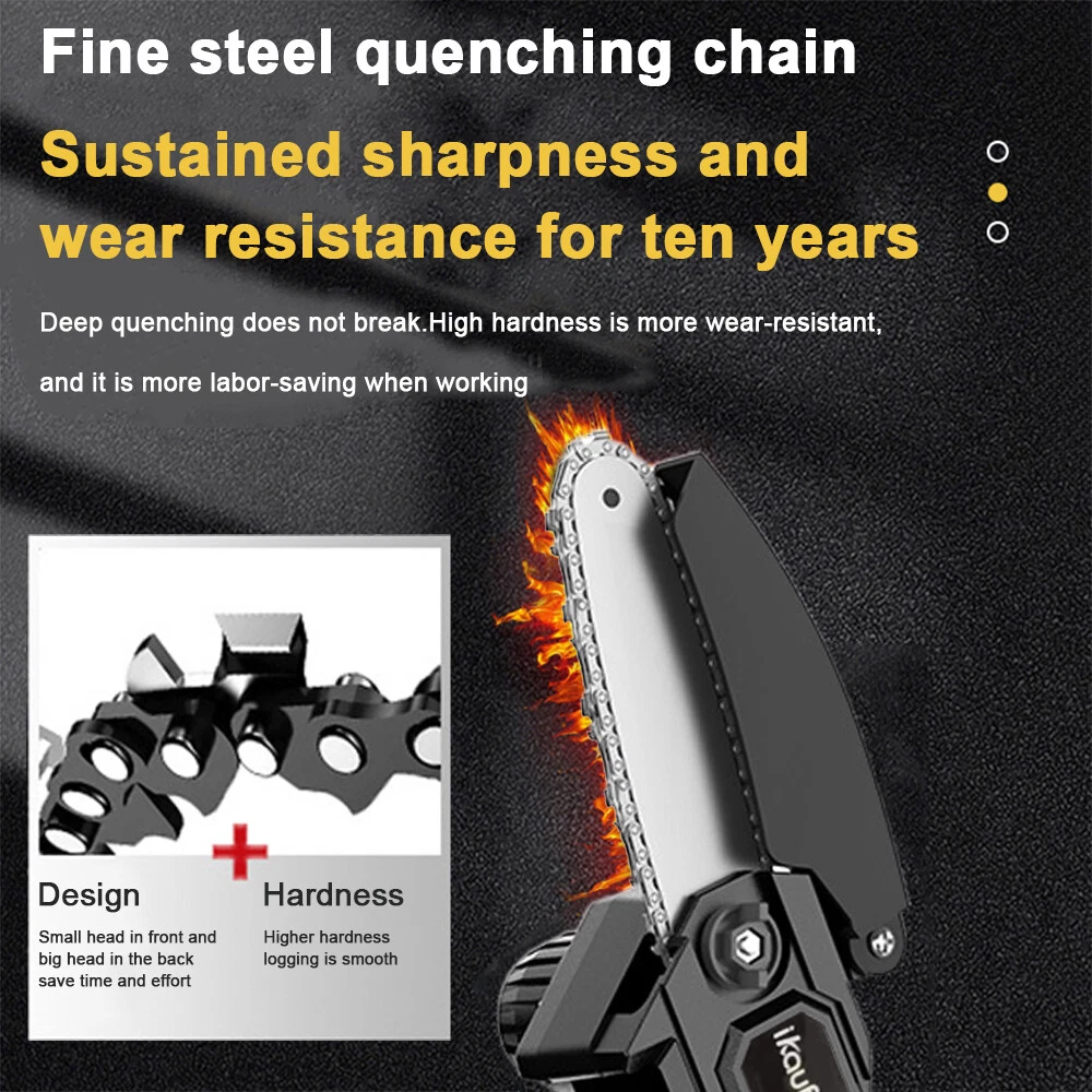 This mini chainsaw is a game-changer for quick garden tasks! Lightweight yet powerful, it cuts through branches effortlessly with its sharp carbon steel blade. The cordless design and one-handed operation make it super convenient, while the adjustable chain ensures smooth, precise trimming. Perfect for pruning and small wood cutting—so easy to use, even for beginners!