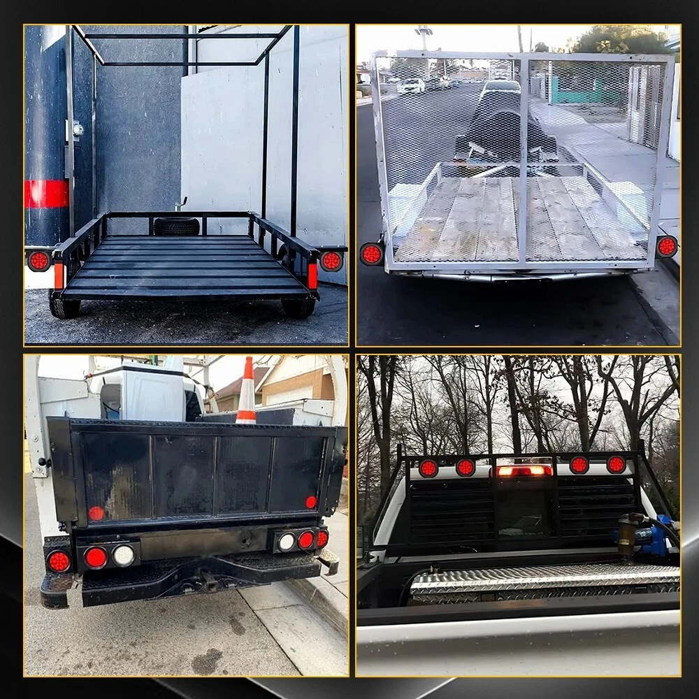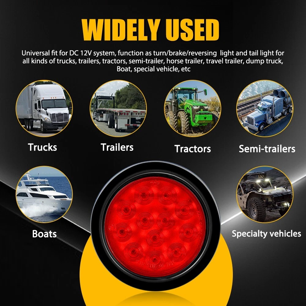 Specification: Light color: Red Shell diameter: 4 inches Material: ABS+PC+Rubber+Metal LED quantity: 12LED Voltage: 12v Waterproof grade: IP67 Service life: 50000h+ Features: *Upgraded LED: Each lamp consists of 3030 SMD LED chips with wider lighting angle and better heat dissipation. It is 3 times brighter than other products. *Waterproof: The tail light is highly silicon sealed with an IP67 waterproof rating, which works even under extreme conditions such as rain and snow. *Easy to install: Easy installation with direct replacement, other modifications are not required. *Unique design 4Inch Round Tail Lights w/ Mounting Bracket Red 2X Waterproof Universal Lights M Specification: Light color: Red Shell diameter: 4 inches Material: ABS+PC+Rubber+Metal LED quantity: 12LED Voltage: 12v Waterproof grade: IP67 Service life: 50000h+ Features: *Upgraded LED: Each lamp consists of 3030 SMD LED chips with wider lighting angle and better heat dissipation. It is 3 times brighter than other products. *Waterproof: The tail light is highly silicon sealed with an IP67 waterproof rating, which works even under extreme conditions such as rain and snow. *Easy to install: Easy installation with direct replacement, other modifications are not required. *Unique design The groove inside the ring has been upgarded, adding three bumps to make the connection between the ring and the taillight tightly.These help the tailights not to fall out and can be firmly fixed the seal ring installed on the mounting bracket.You don't need to worry about the loose lights or wires anymore! *Connection White wire connects to negative. Red wire connects to white light with high brightness Black wire connects to white light with low brightness *Functions It can be used as running lights, brake lights, taillights and so on .*Wide application: Universal Fits All vehicles with 12V Power Supply such as car, truck, trailer, Semi Trailer, Semi Trucks, boat, flatbed, bus, lorry, van, caravan, camper, RV Jeep etc. Note: Please check the detail information carefully before purchasing. Your satisfaction is our utmost concern, please feel free to contact us for any questions and concerns. Package Include: 4Inch Tail Lights w/ Mounting Bracket*2 ABOUT US 4Inch Round Tail Lights w/ Mounting Bracket Red 2X Waterproof Universal Lights M Specification: Light color: Red Shell diameter: 4 inches Material: ABS+PC+Rubber+Metal LED quantity: 12LED Voltage: 12v Waterproof grade: IP67 Service life: 50000h+ Features: *Upgraded LED: Each lamp consists of 3030 SMD LED chips with wider lighting angle and better heat dissipation. It is 3 times brighter than other products. *Waterproof: The tail light is highly silicon sealed with an IP67 waterproof rating, which works even under extreme conditions such as rain and snow. *Easy to install: Easy installation with direct replacement, other modifications are not required. *Unique design The groove inside the ring has been upgarded, adding three bumps to make the connection between the ring and the taillight tightly.These help the tailights not to fall out and can be firmly fixed the seal ring installed on the mounting bracket.You don't need to worry about the loose lights or wires anymore! *Connection White wire connects to negative. Red wire connects to white light with high brightness Black wire connects to white light with low brightness *Functions It can be used as running lights, brake lights, taillights and so on .*Wide application: Universal Fits All vehicles with 12V Power Supply such as car, truck, trailer, Semi Trailer, Semi Trucks, boat, flatbed, bus, lorry, van, caravan, camper, RV Jeep etc. Note: Please check the detail information carefully before purchasing. Your satisfaction is our utmost concern, please feel free to contact us for any questions and concerns. Package Include: 4Inch Tail Lights w/ Mounting Bracket*2 FAQ Shipping Returns Contact Us Payment Why swith to LED? LEDs not only give your vehicle a clean, modern look but, with proper use, will outlast any halogen bulb and HID bulb! Low energy draw, high lumen output, and instant on/off LED technology out shines stock bulbs in every way. Which bulbs are used in my vehicle? Check Sylvania automotive lamp replacemnt guide , you can select the year, make, and model of your vehicle, then select the application you want to replace or upgrade from stock. What does CAN Bus mean? CAN Bus means Controller Area Network Bus. This system monitors your vehicle and reports operating conditions. CAN Bus systems are commonly found in European vehicles such as BMW, Audi, Mercedes, Volkswagen, Porsche, and in many American vehicles. While most late model American vehicles have CAN Bus systems, it is always good to check with your vehicle dealer to see which system your vehicle has before purchasing electrical products. When do you need Warning Canceller? Some vehicles with cmplex internal computers(such as Audi,BMW,Jaguar,Mercedes,etc.) might report on-dash errors or flickering on the headlights. The warning canceller fixes the dashboard warning and flickering effect. Bulb Out Dashboard Error: On some vehicles, the dashboard will report as if you have a headlight bulb missing or burnt. It does not affect the headlights functioning, but the light on-dash will be on. The warning canceller fixes the issue. Flickering Issue: This happens when your vehicle does not recognize the new headlights installed. When turning the headlights on, the vehicle's computer does not understand the signal back from the headlights hence thinking they are still off. This triggers the headlight flickering effect. The warning canceller solves this issue. LED Advantages: Very low and efficient energy consumption than halogen bulbs & HID Bulbs Compared with HID bulbs, LED bulbs Light up instantly, no warm up period Low voltage protection, high precision constant current driver chip Longer lifespan than HID and halogen bulbs Light can be controlled easily in color and intensity Easy to
