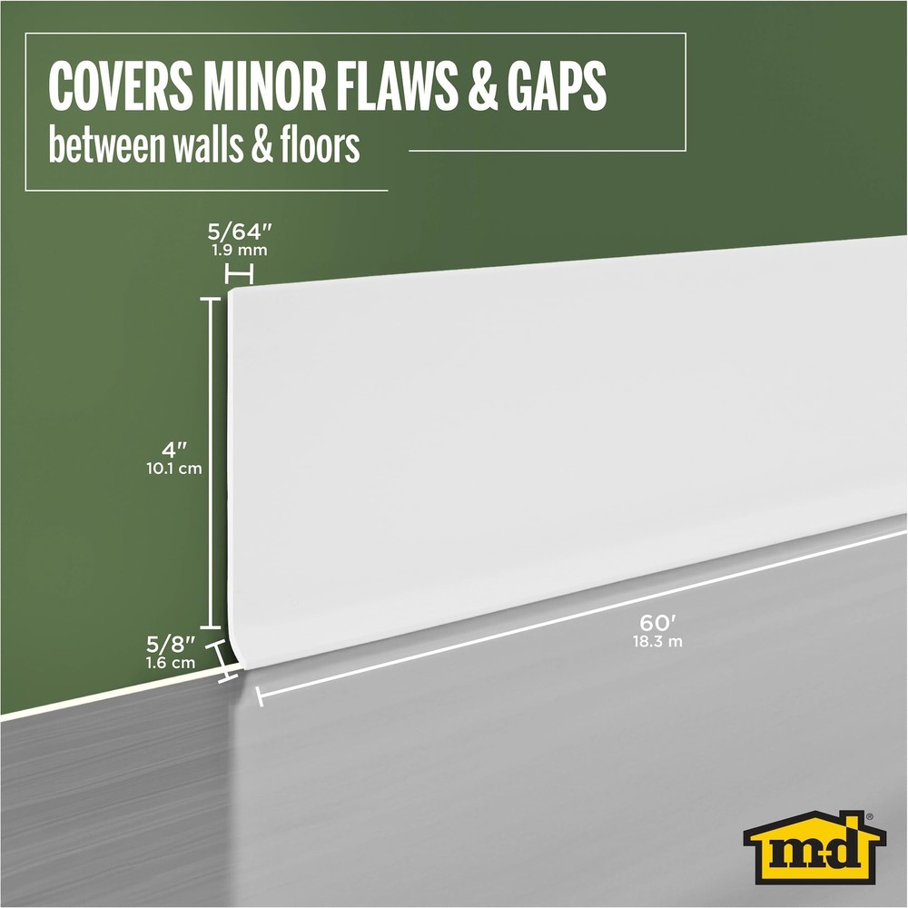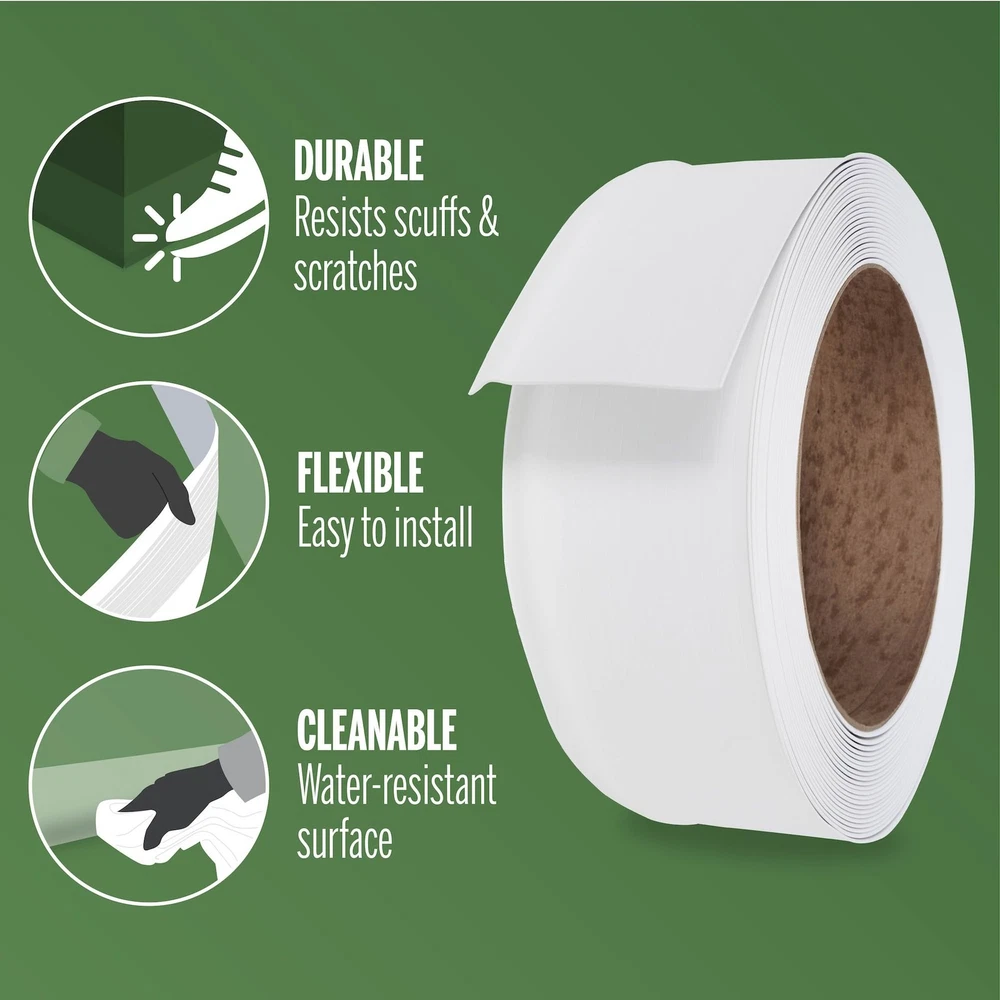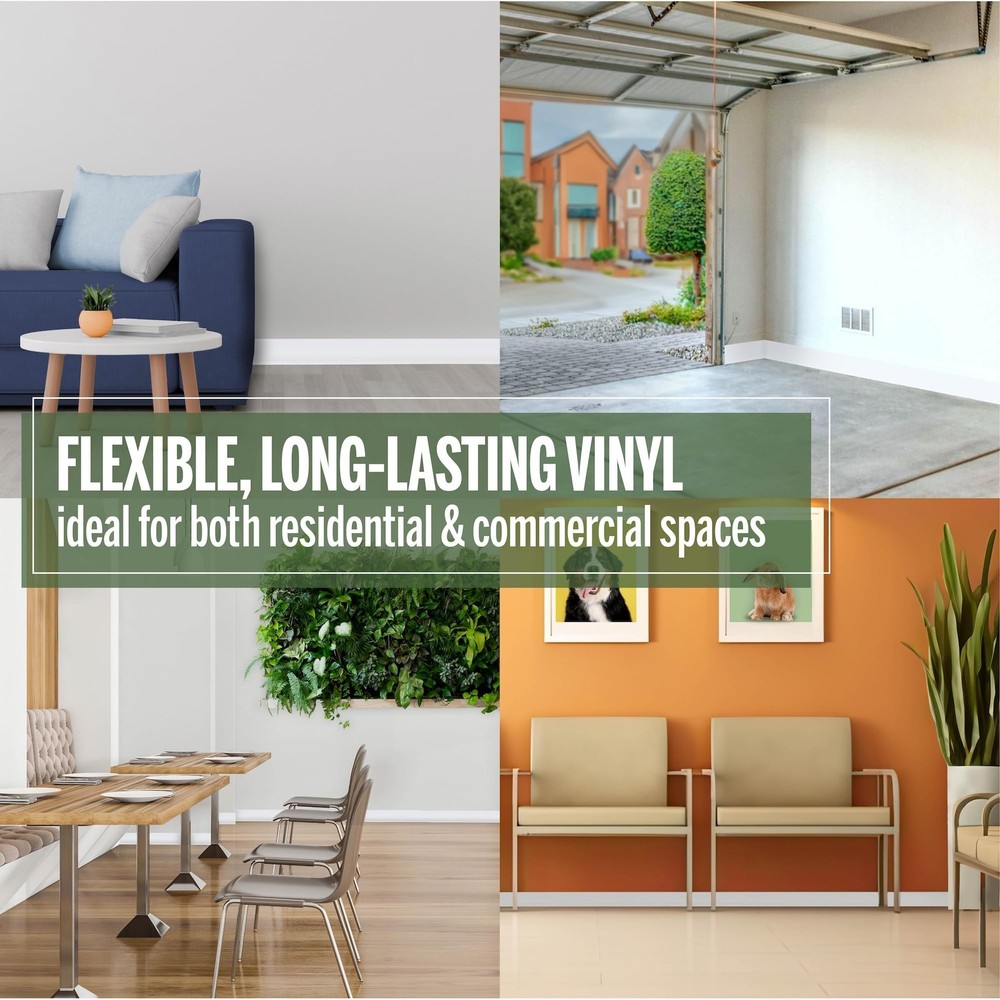 Elevate Your Space with a Polished Finish: Enhance the look of your walls and baseboards with the Dry Back Vinyl Wall Base. This cove base adds a touch of elegance to any room and is available in a range of finishes to complement any decor style. Premium Vinyl Trim Molding: Our vinyl trim molding is made from advanced soft vinyl, ensuring rubber-like durability and flexibility. It resists cracking and can be easily tailored to your needs. This waterproof material can be effortlessly cleaned with a damp cloth. Multi-Purpose Utility: Expertly designed to conceal gaps between uneven floors and walls, providing a polished and seamless appearance. This versatile solution enhances the aesthetic of any room, making it ideal for use in both home and office environments. Durable and easy to install, it ensures a professional finish that stands the test of time. Endurance Engineered: Our premium vinyl baseboard molding is designed for exceptional durability and resilience. Crafted from high-quality vinyl, it withstands daily wear and tear. Its smooth, durable surface resists scuffs and scrapes, ensuring long-lasting performance. Effortless Installation Process: Our ribbed dry back design makes installation a breeze, requiring only adhesive (sold separately). Simply clean the surface, measure the required length, cut to size, and apply the adhesive. This streamlined process saves time and offers convenience to users of all levels.