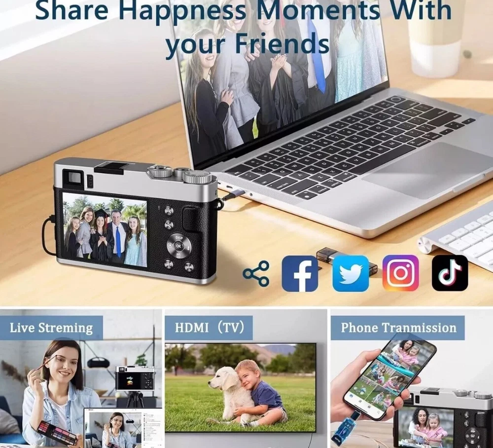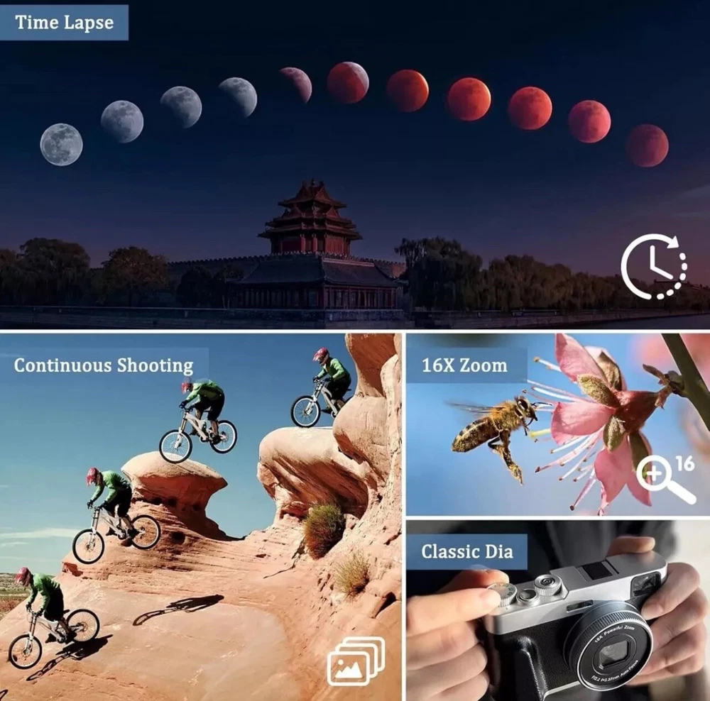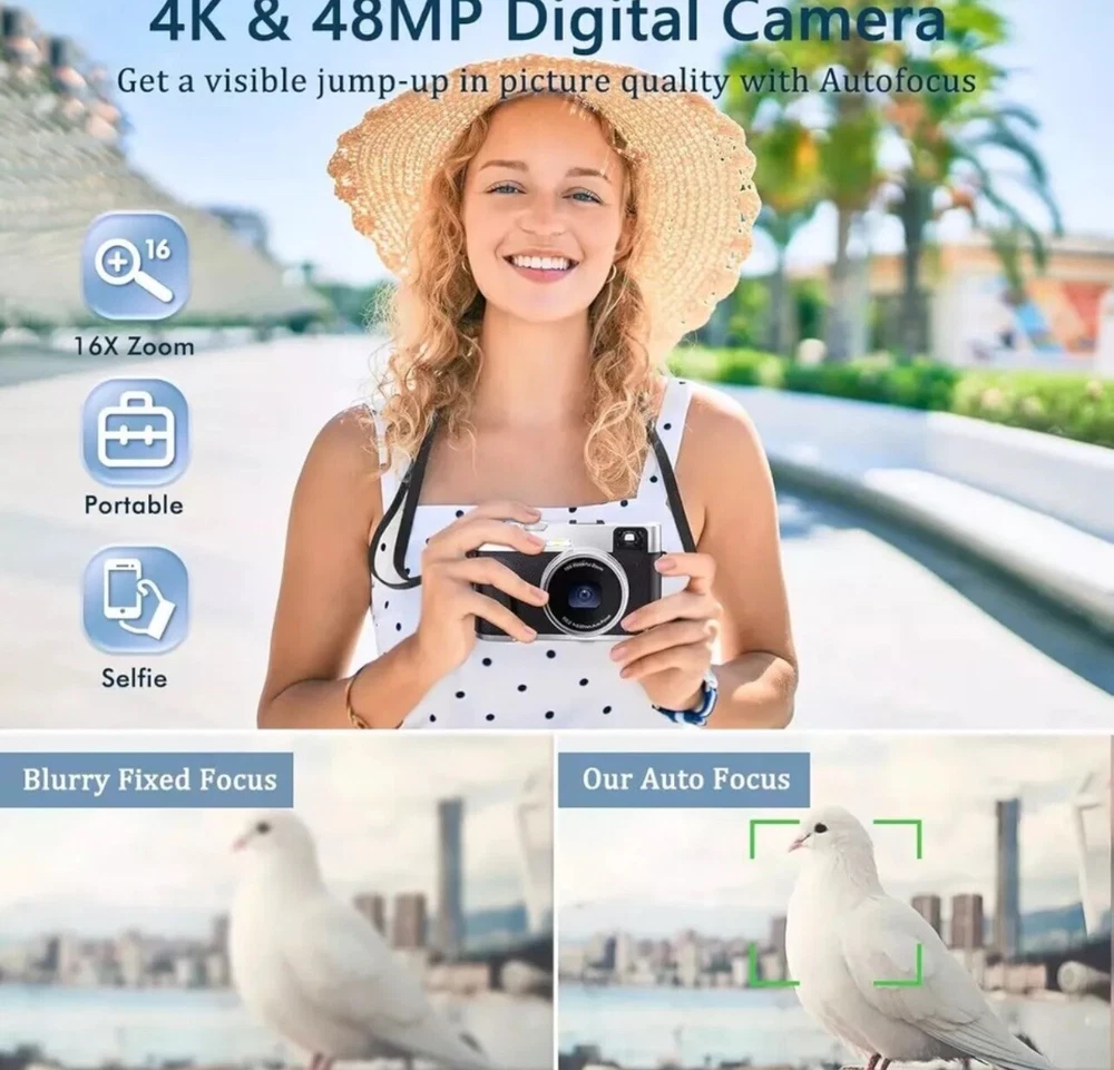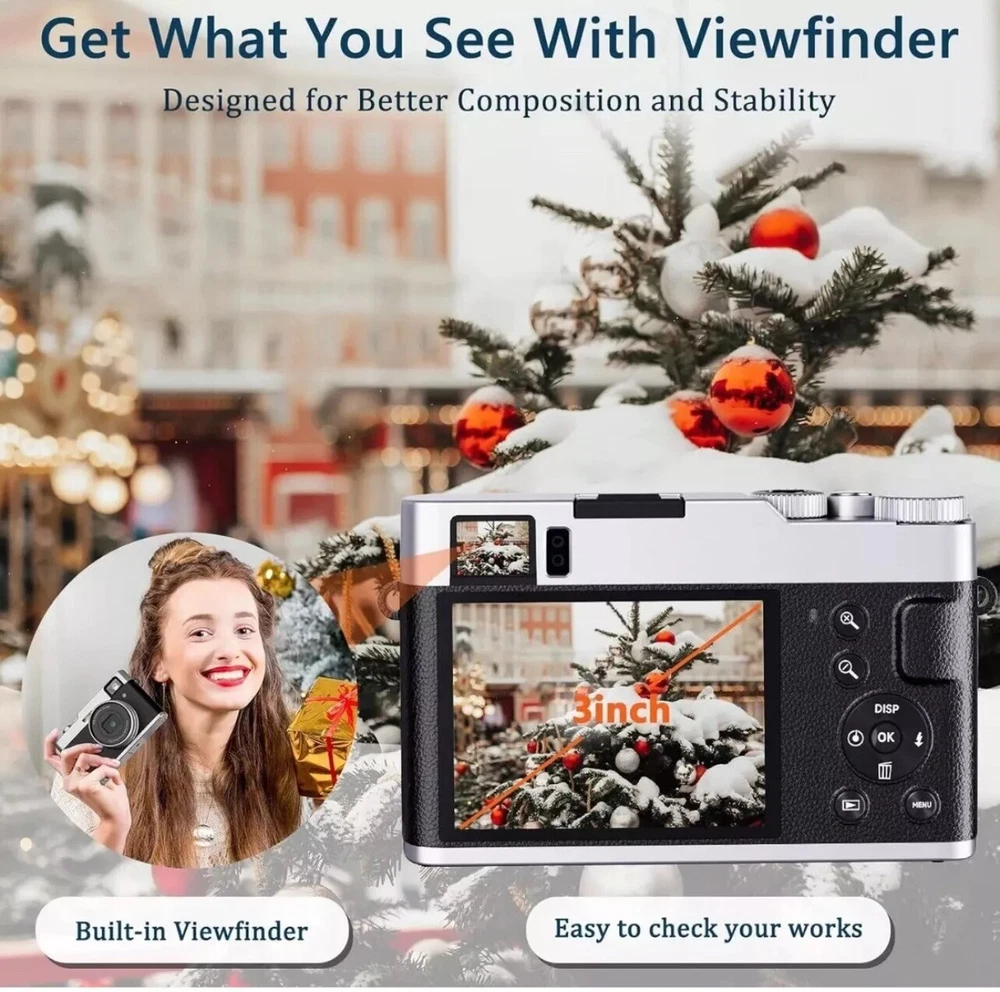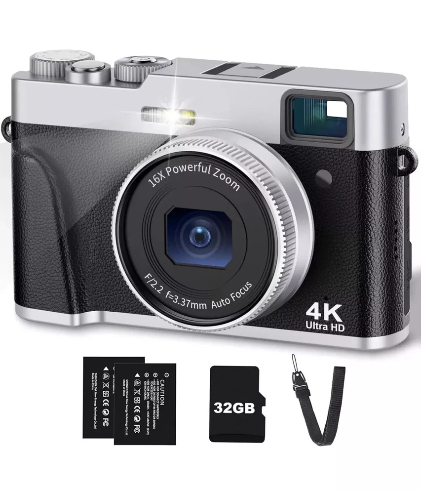 4K Digital Camera with Viewfinder & Flash, Autofocus 48MP Cameras for Photography Vlogging Compact Travel Camera for Adults Teens with Classic Dial, Time Lapse, Selfie, 16X Zoom, 32GB SD Card