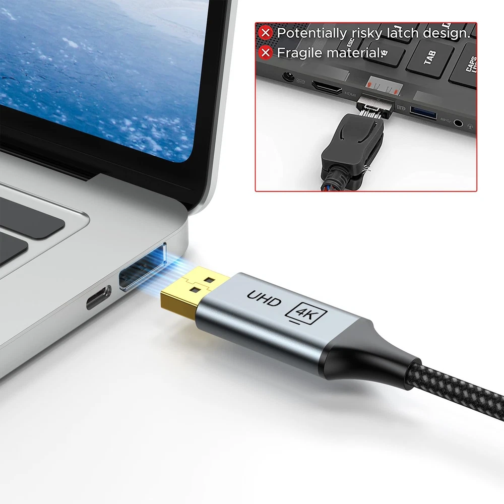 DisplayPort to HDMI 【4K Visual Feast】4K DisplayPort to HDMI Cable Supports 4K Video, Backward backward compatible with 2560 160060Hz and 1920 1080P120Hz , and HD 720P. Also supports HDR, Audio Return Channel (ARC), Dolby TrueHD 7.1 audio, 3D video. You can enjoy Ultra-high-definition audio-visual experience 【Immersive HD Video Streaming Experience】Delivers high-definition audio and video from your DP computer to HDMI, supporting extended or mirrored modes. Handles resolutions up to 4K30Hz, 2K60Hz, and 1080P120Hz for any 4K game and ultra HD video streaming. High refresh rate (2K 60Hz, 3D, HDR) let you enjoy the immersive family entertainment and gaming experience. This is a one-way cable for DP to HDMI, not work for HDMI to DP. 【Universal Compatibility】Perfect works with laptops (HP ProBook, Lenovo ThinkPad), desktops (HP, Dell, Lenovo), and graphics cards (AMD, NVIDIA). Note: This is a one-way cable for converting DisplayPort to HDMI and does not work with HDMI source devices 【No Flicker,No Black】4k dp to hdmi has 24K gold-plated connectors, 100% copper wire, triple tin shielded, with a new smart IC chip, so that the ensuring stable signal transmission and more durable. It reduces flickering, providing a comfortable gaming experience without motion blur, screen tearing, or flickering. 【Mini Size, Easy to USE】Twice Forming Die Casting and fabric braided nylon cable provides you with a heavy-duty Display Port to DisplayPort to HDMI adapter and effectively prevents cracking. Slim shell size frees you from the worry of getting in the way of nearby ports. 【】We should always provide the customer with good service after .